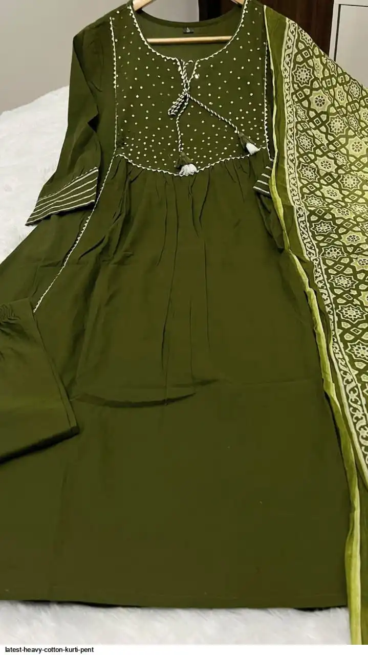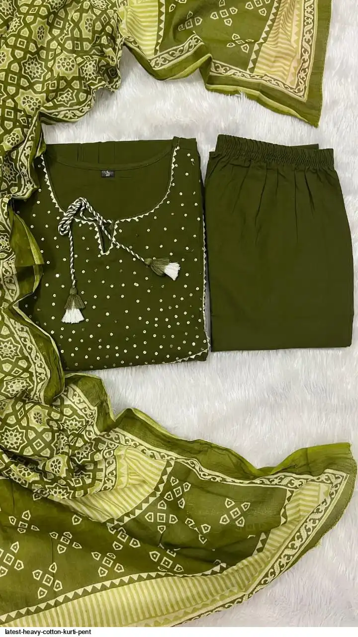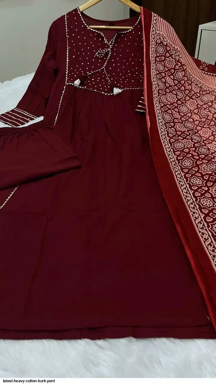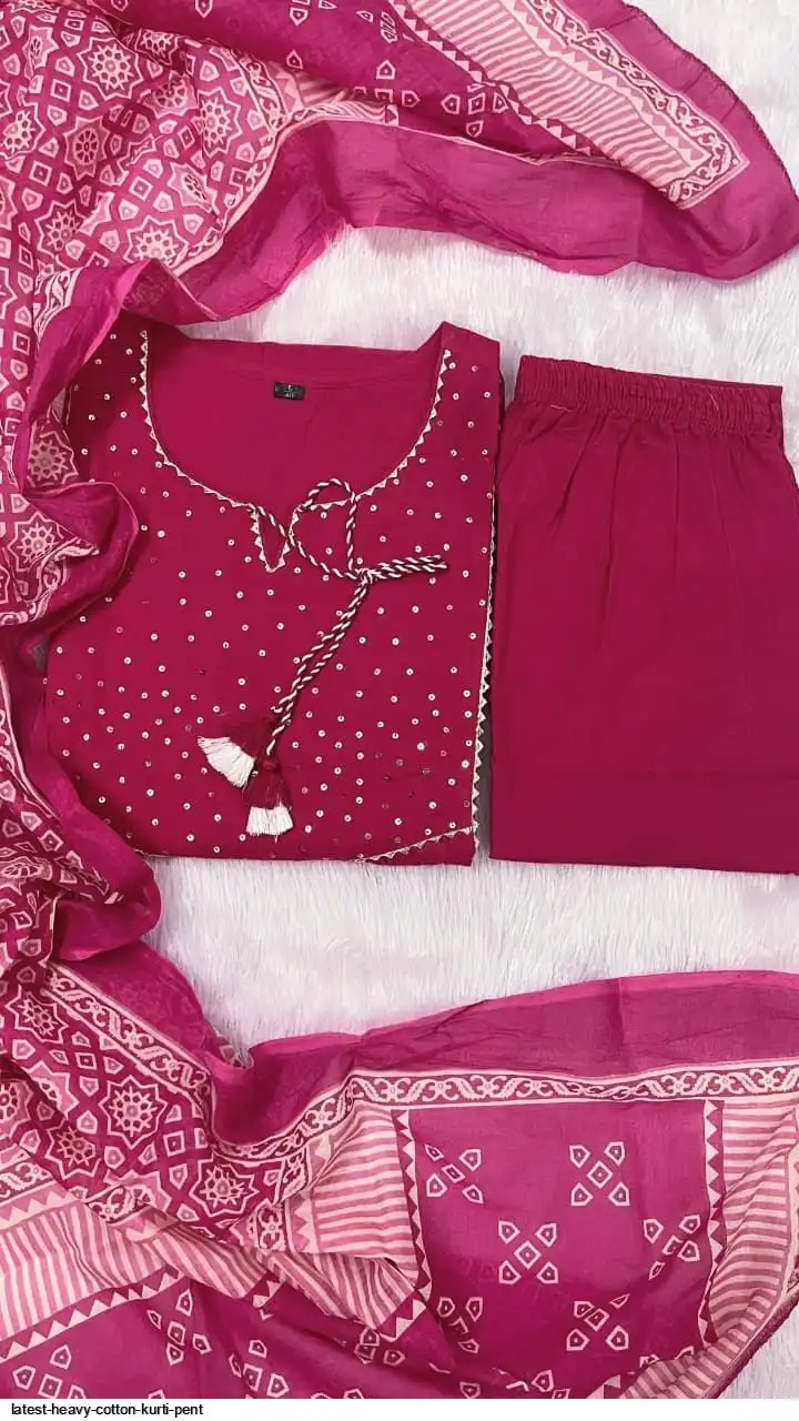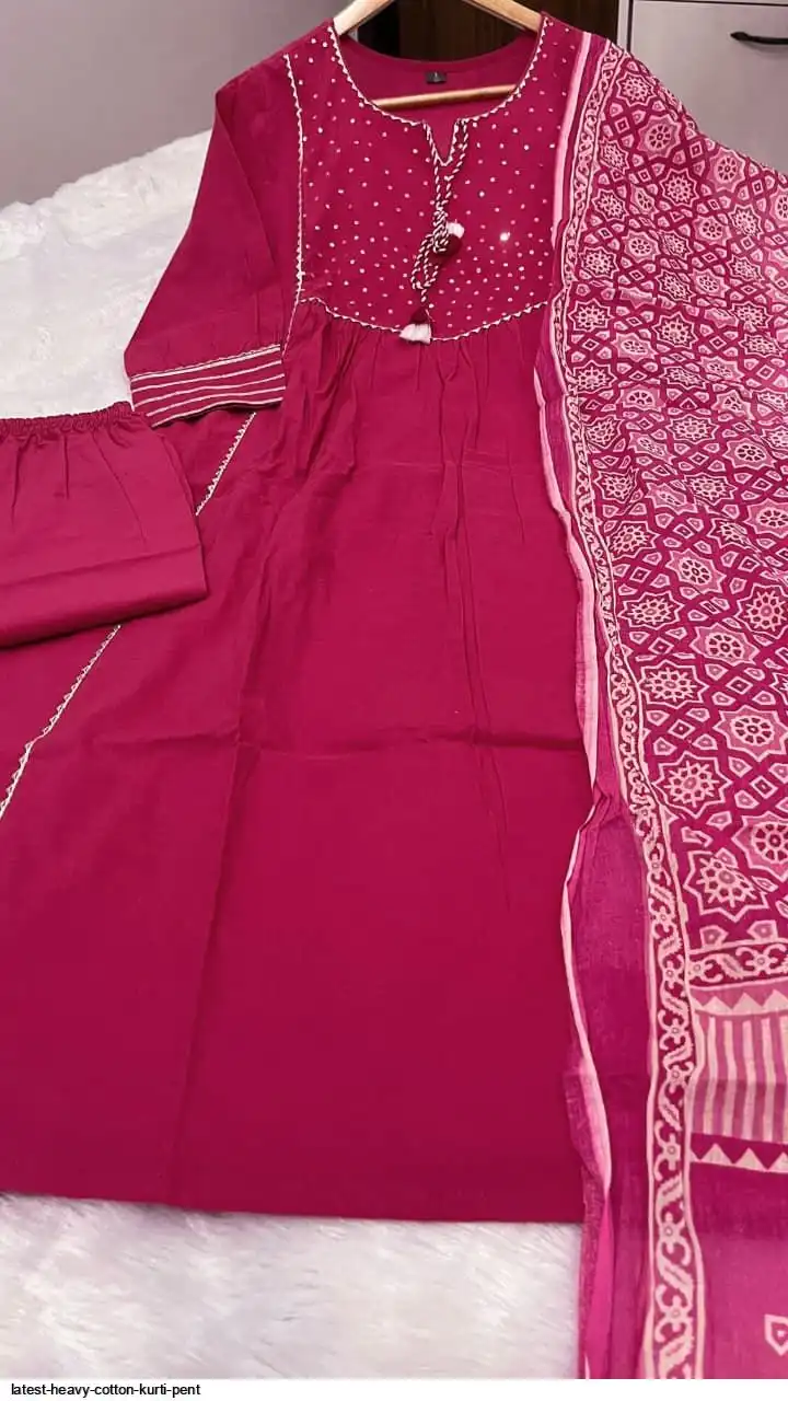 Pure fine Cotton fabric Kurti with Pant with cotton 100-100 Dupatta