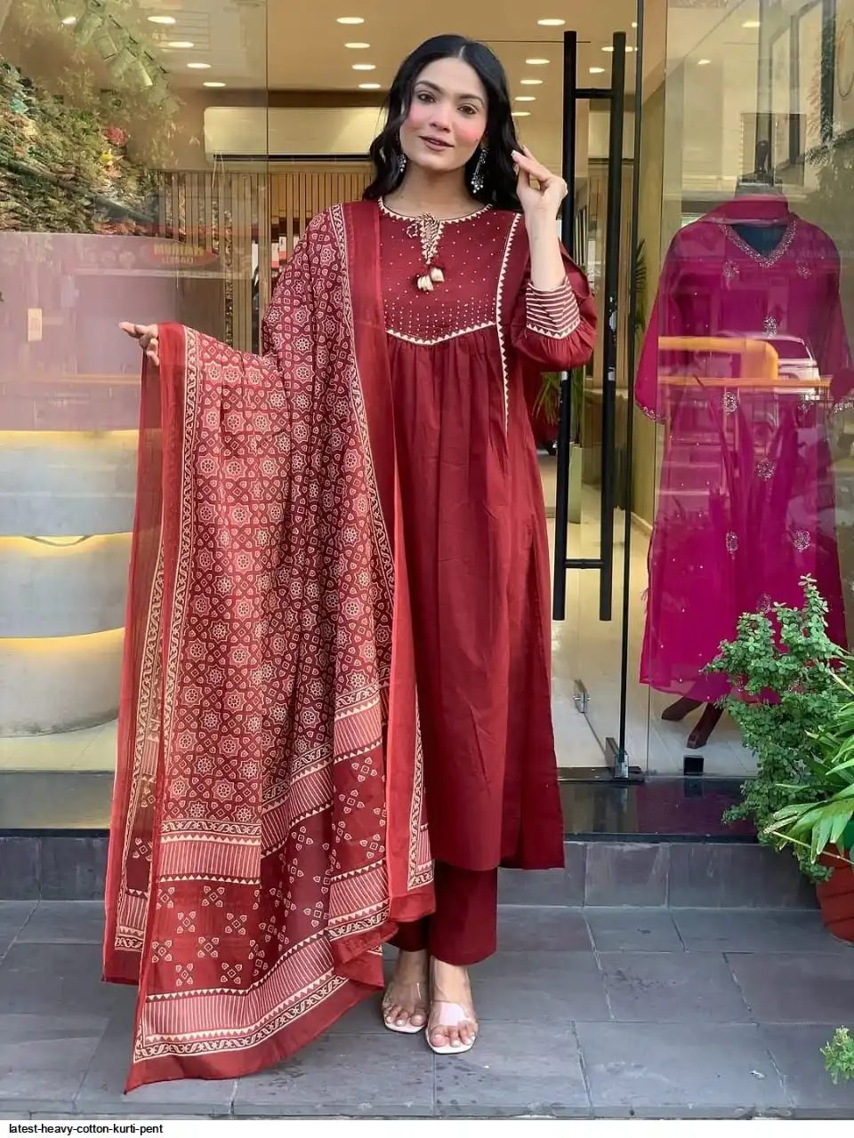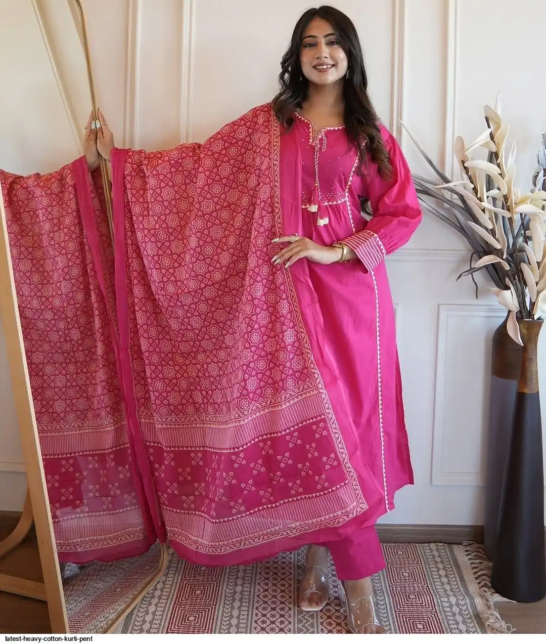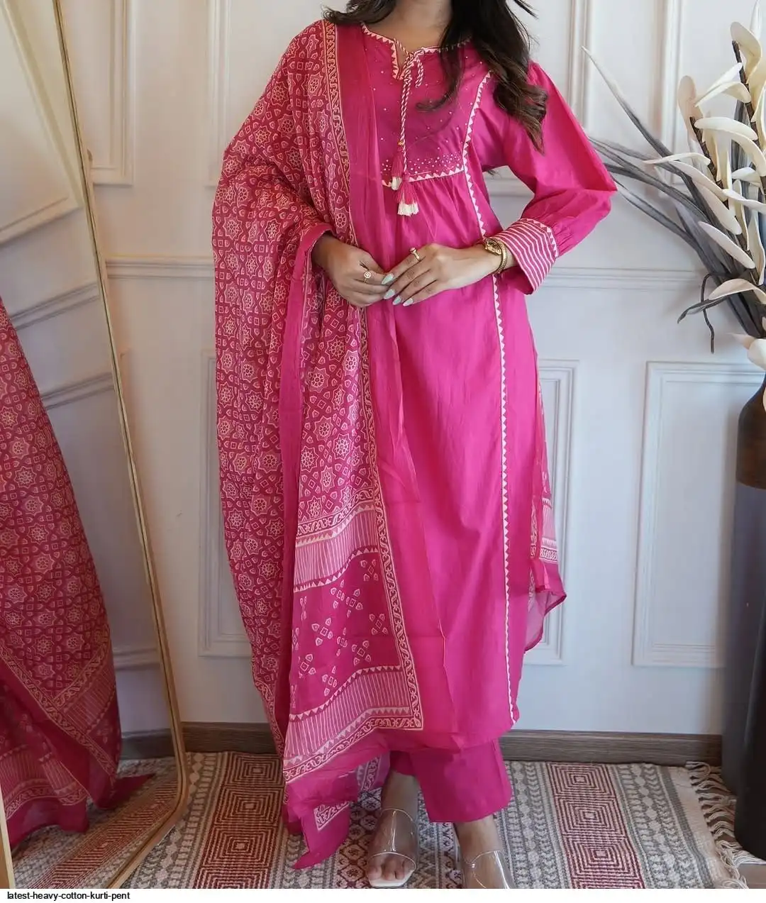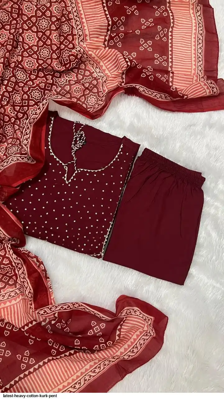 Pure fine Cotton fabric Kurti with Pant with cotton 100-100 Dupatta