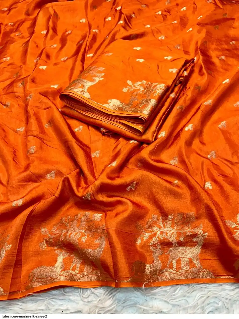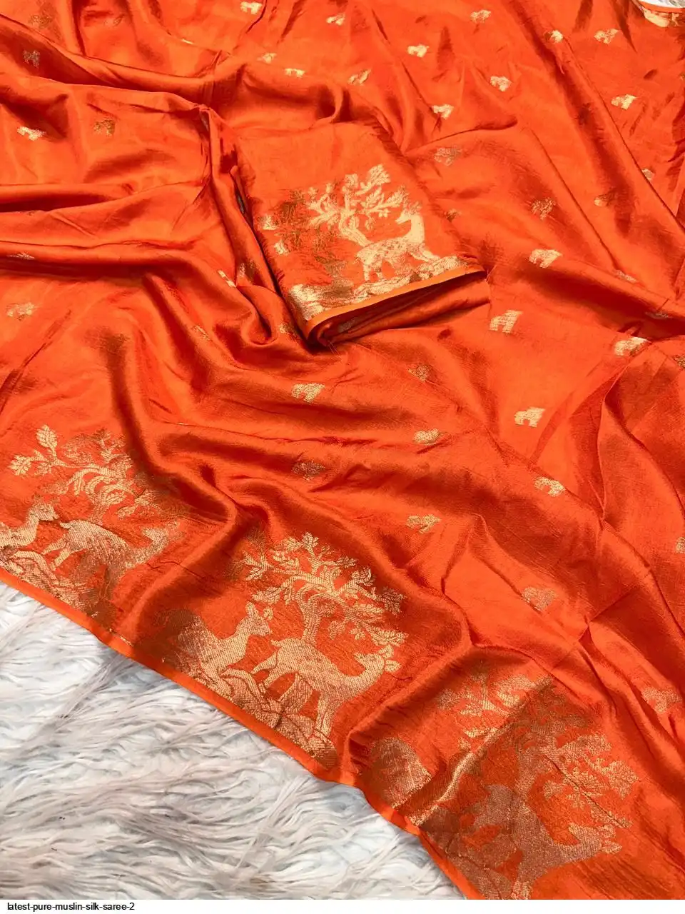 Pure Muslin Silk Saree With Running Blouse unstiched blouse