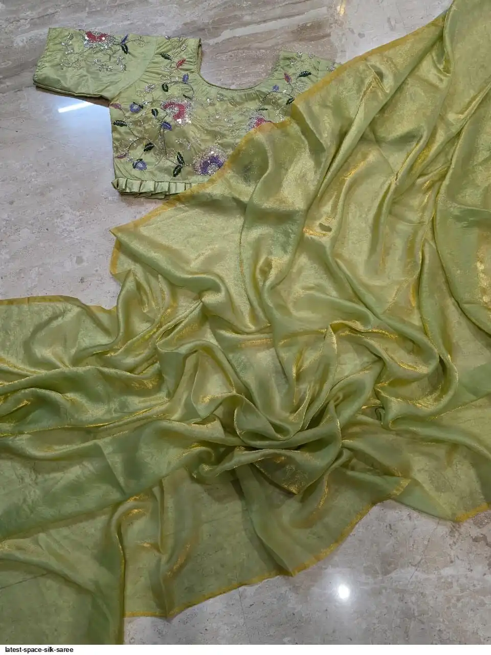 Space Silk Saree With Running Handwork Full Stiched Free Size Blouse