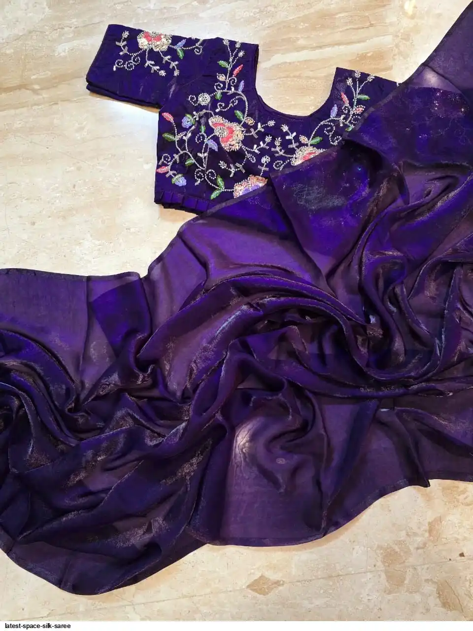 Space Silk Saree With Running Handwork Full Stiched Free Size Blouse