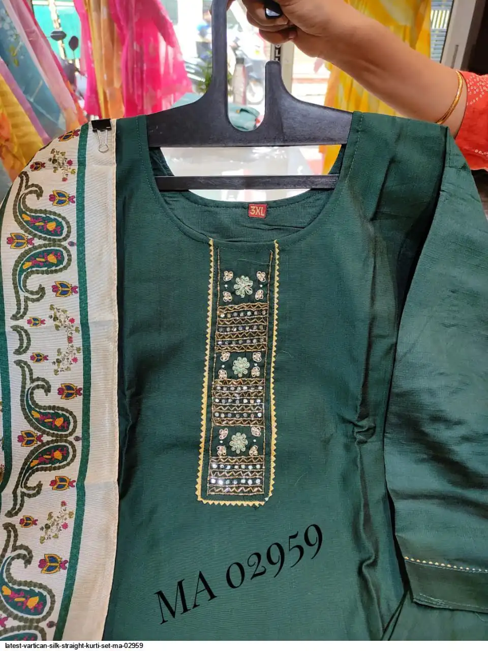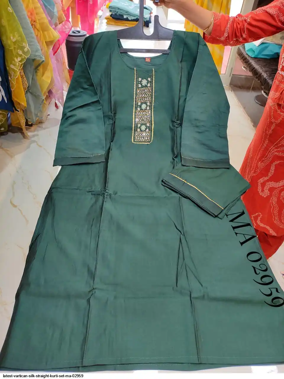 top - vartican silk beautiful straight kurti with moti zardoji and cutdana on yoke