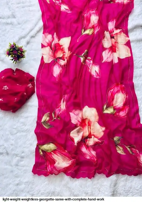 LIGHT WEIGHT WEIGHTLESS GEORGETTE SAREE WITH COMPLETE HAND WORK C