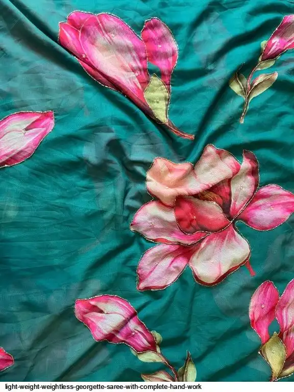LIGHT WEIGHT WEIGHTLESS GEORGETTE SAREE WITH COMPLETE HAND WORK E