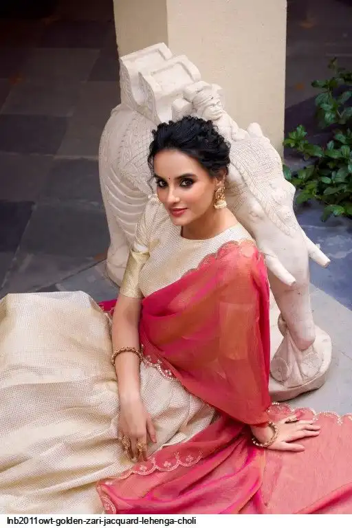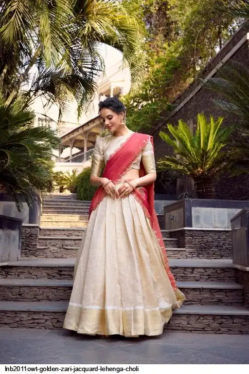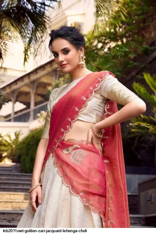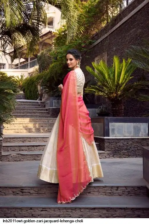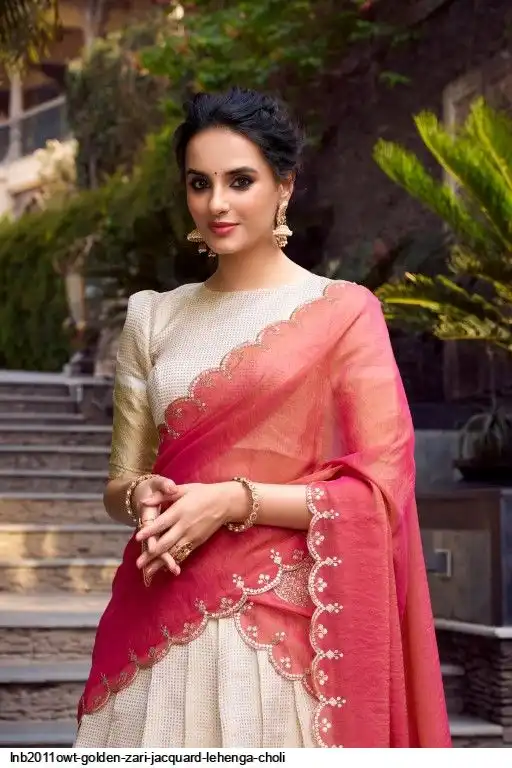 Elegant Golden Zari Weaving Work Lehenga with Zari Shimmer Dupatta 🪷