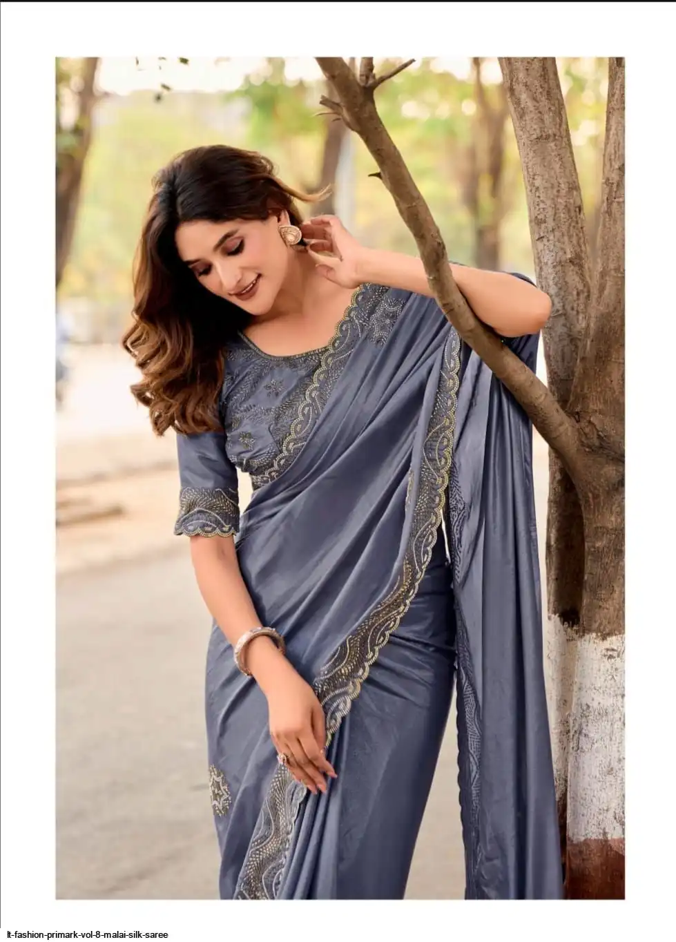 FABRIC - NC MALAI SILK WITH SWAROVKSI WORK
