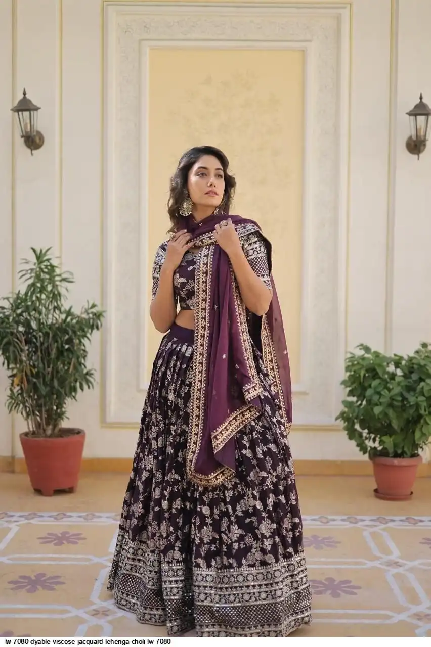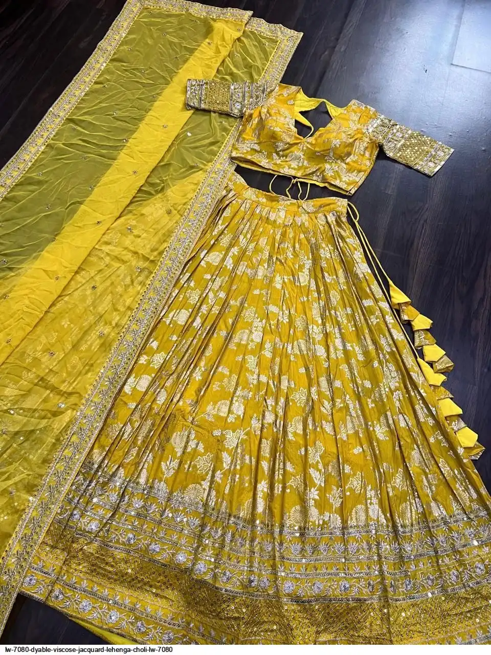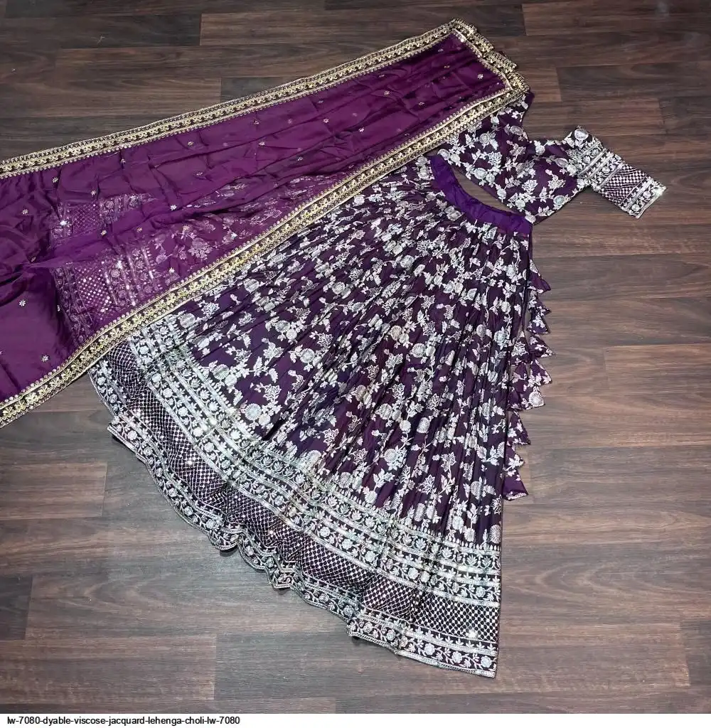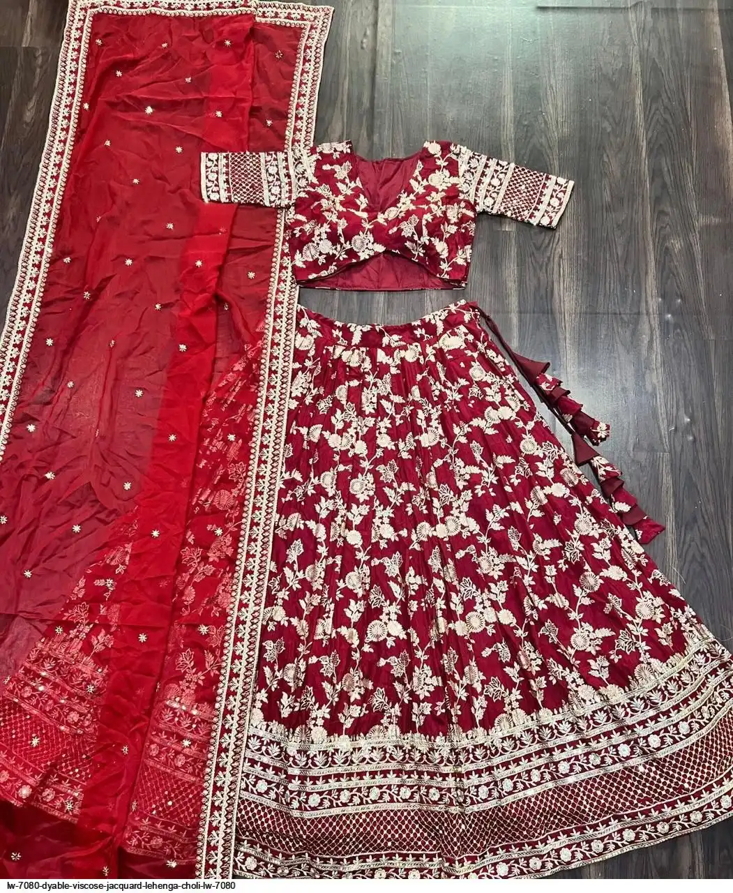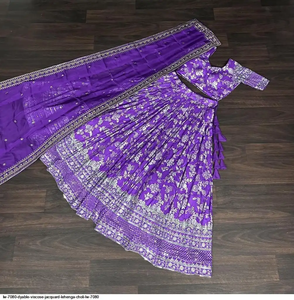 Designer Dyeable Pure Viscose Jacquard fabric Lehenga Choli & Dupatta Set