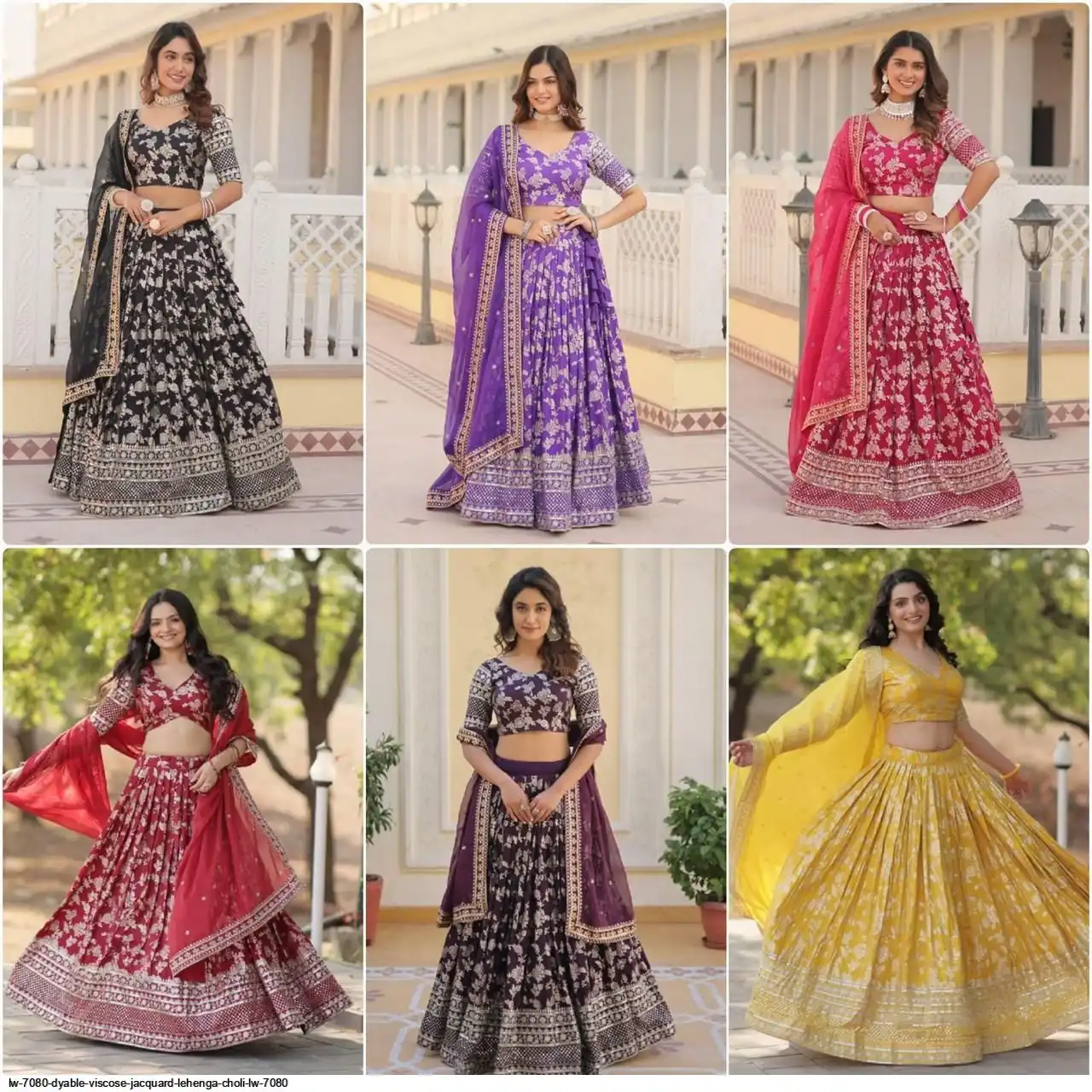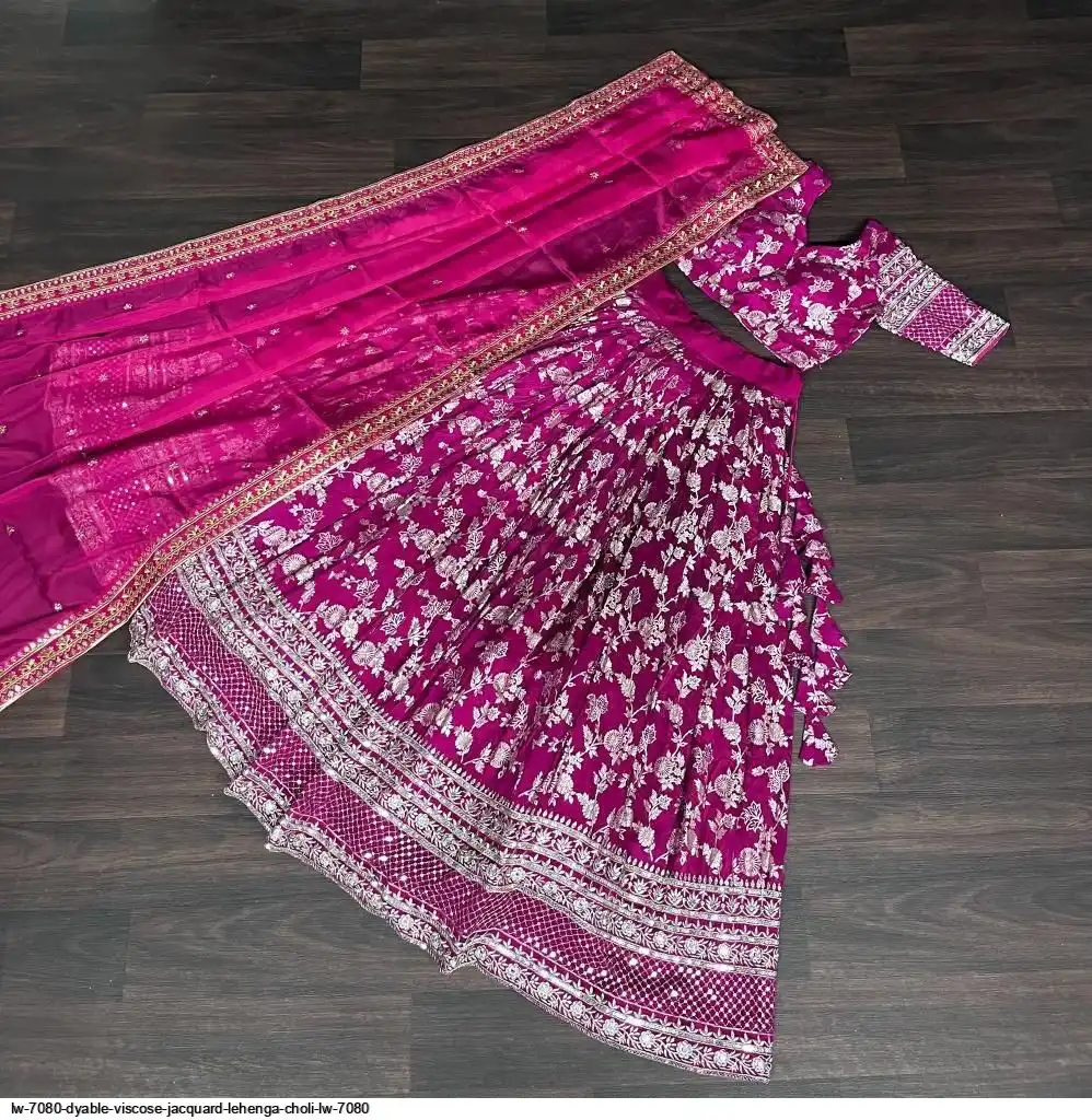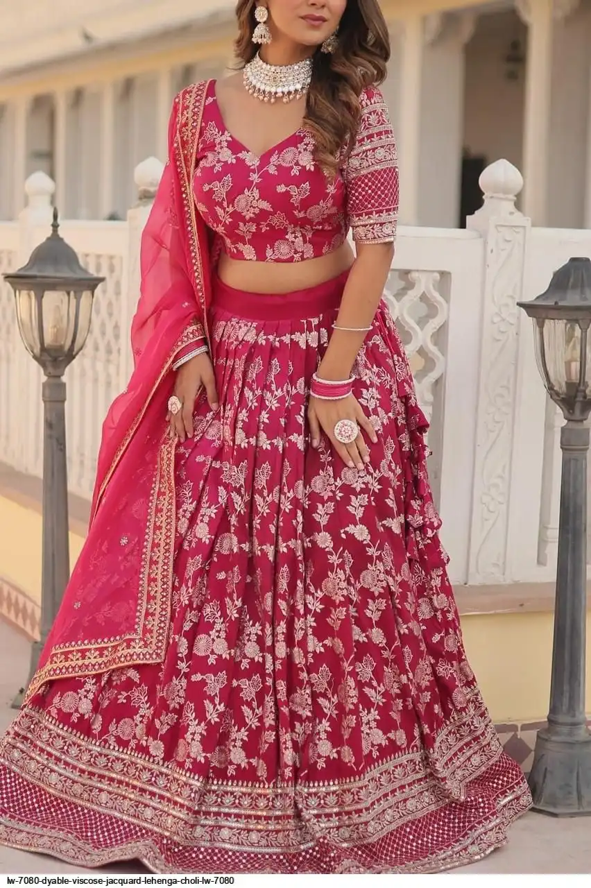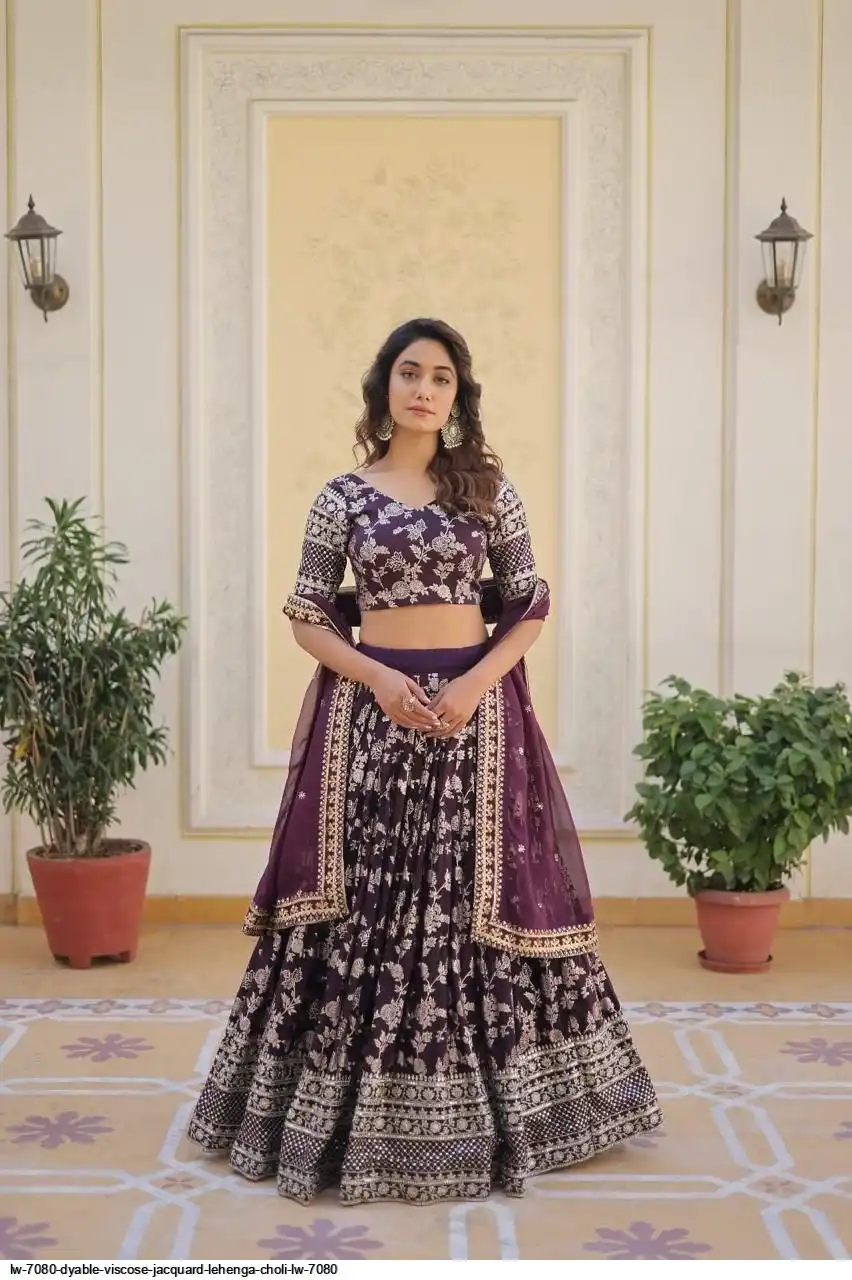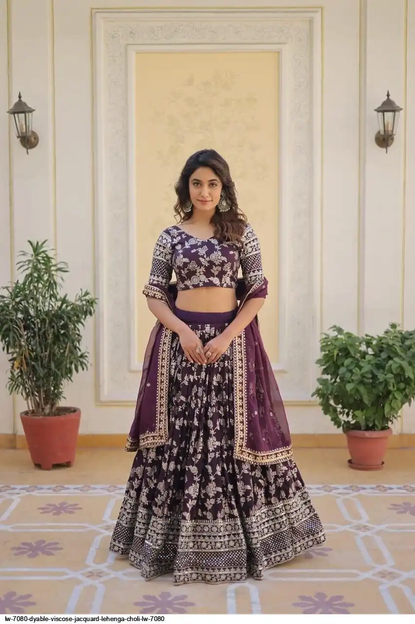 Designer Dyeable Pure Viscose Jacquard fabric Lehenga Choli & Dupatta Set