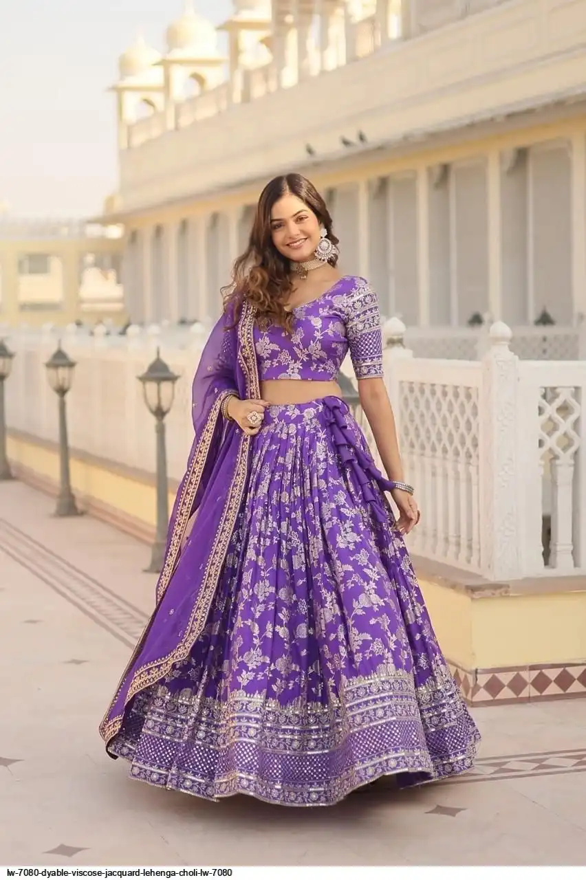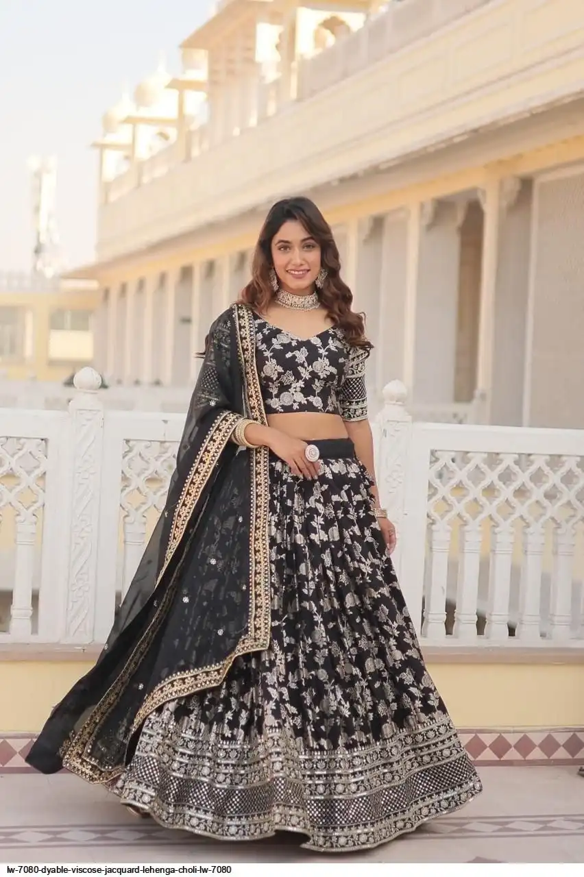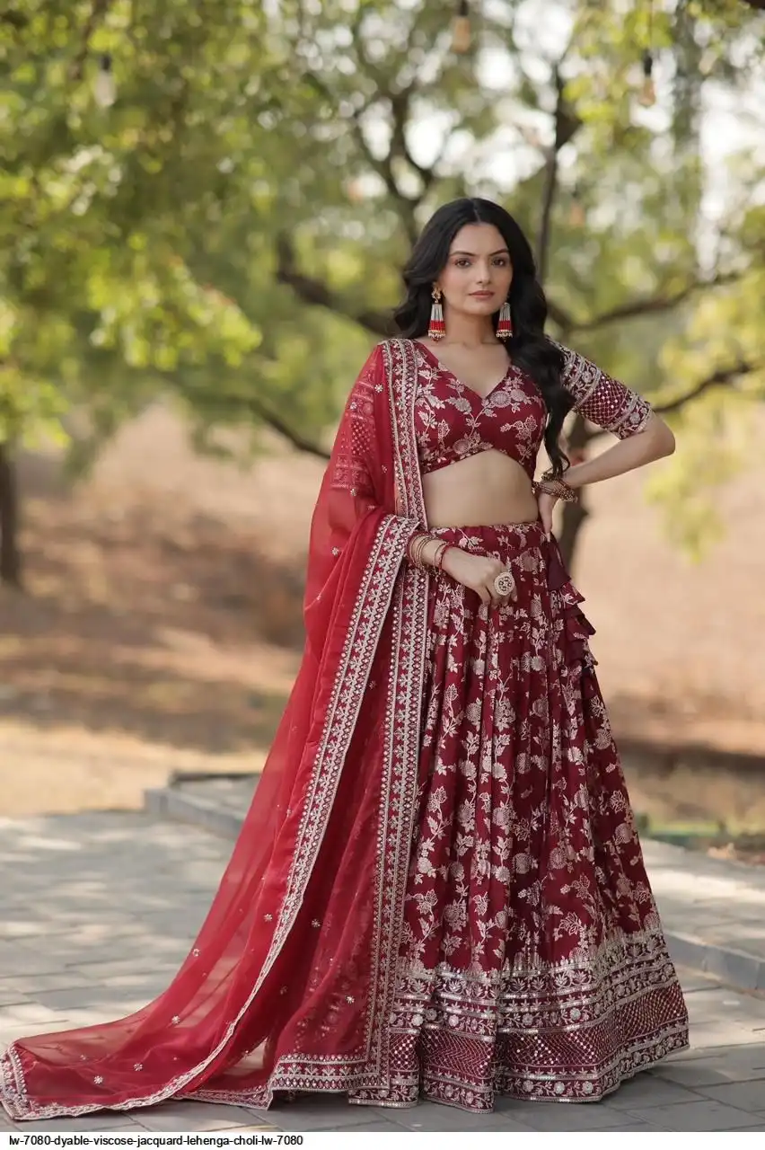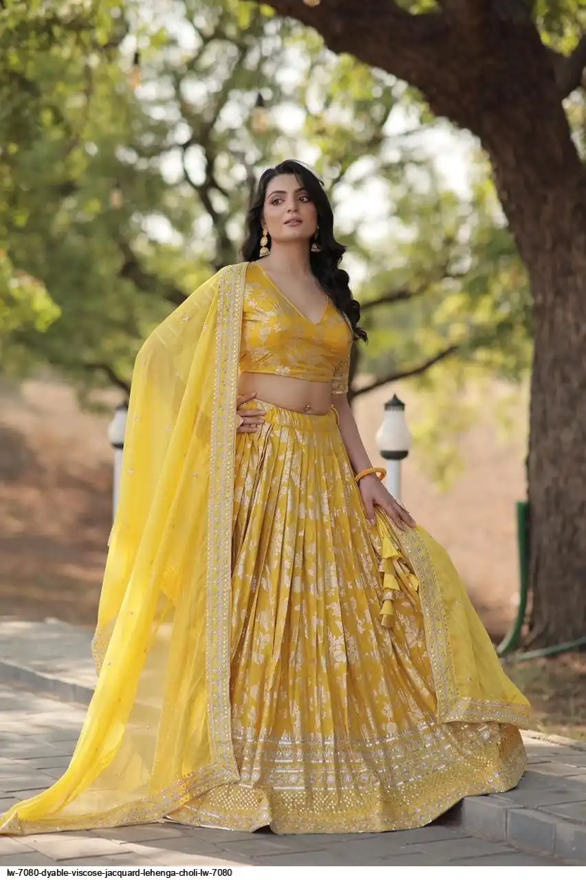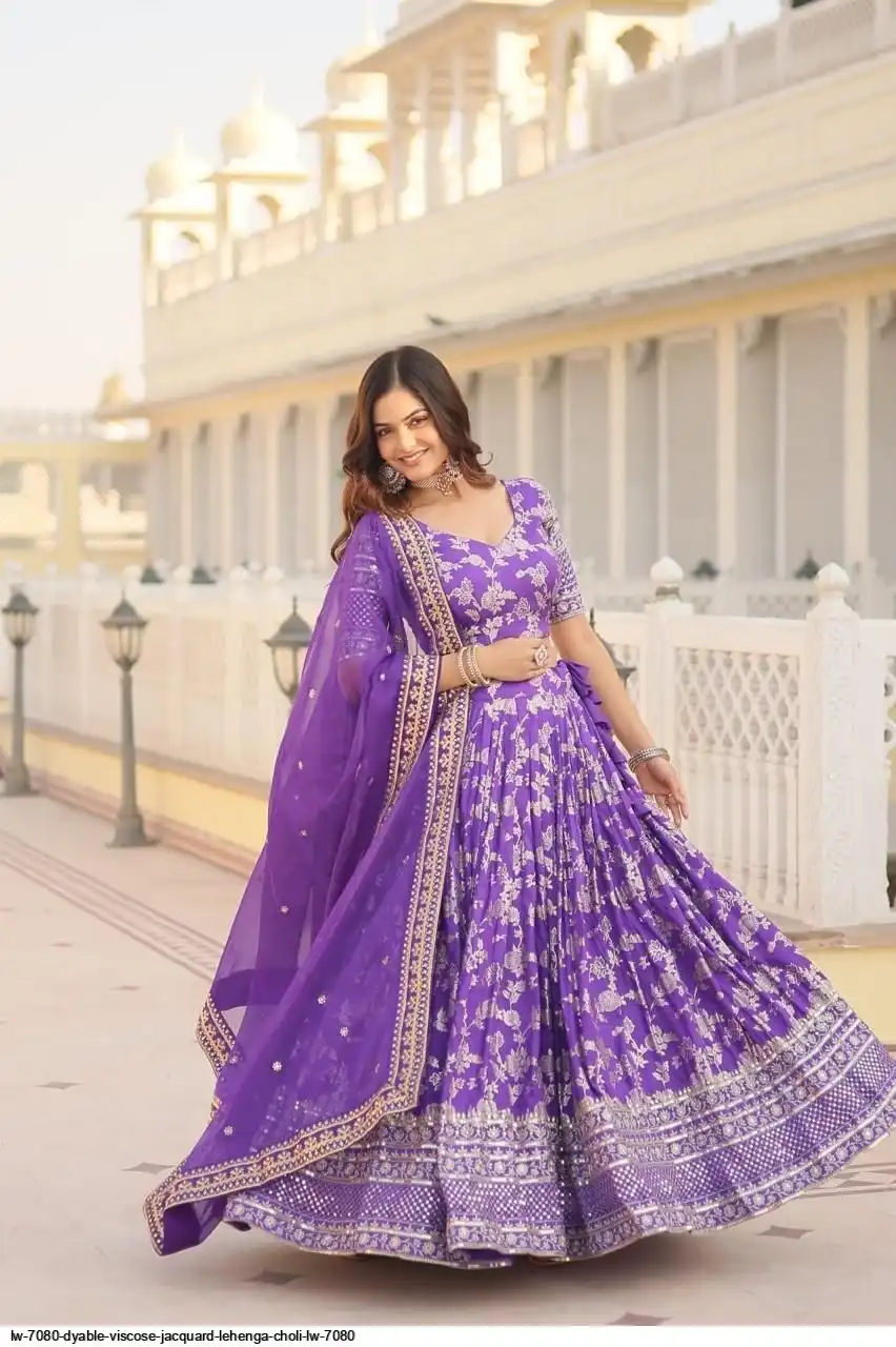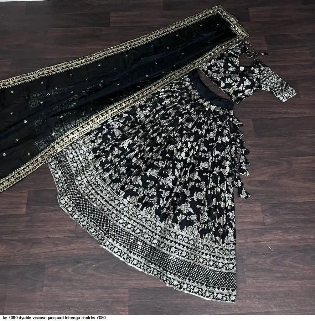 Designer Dyeable Pure Viscose Jacquard fabric Lehenga Choli & Dupatta Set
