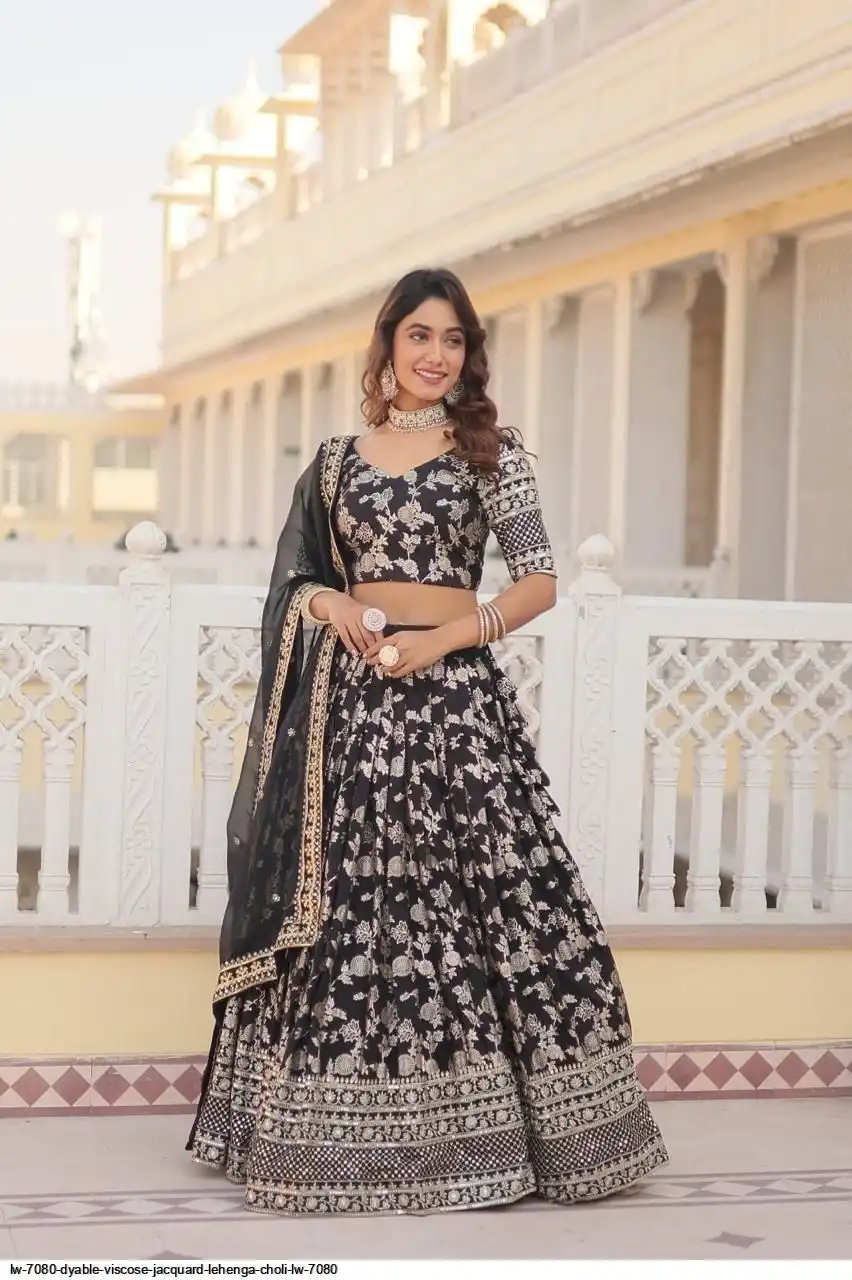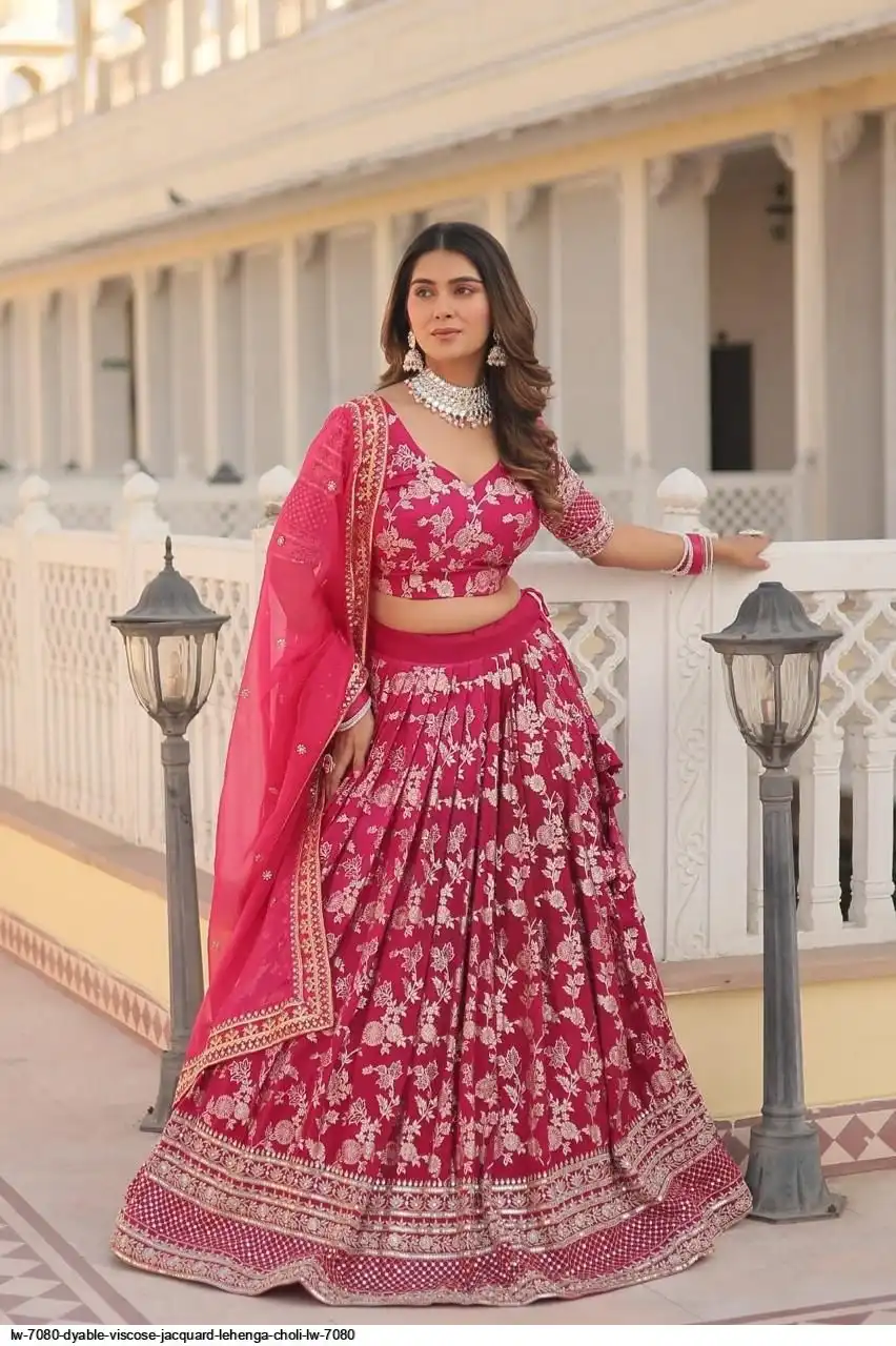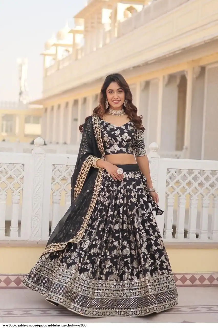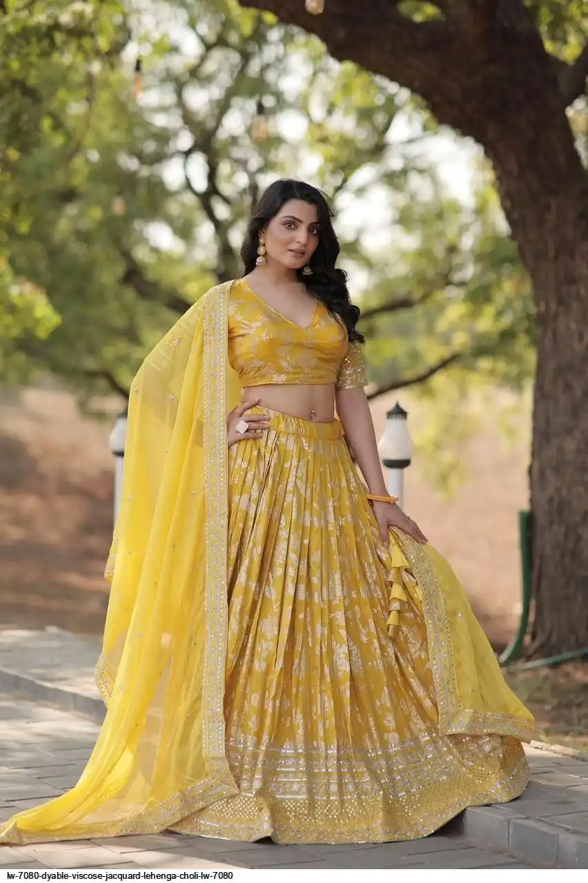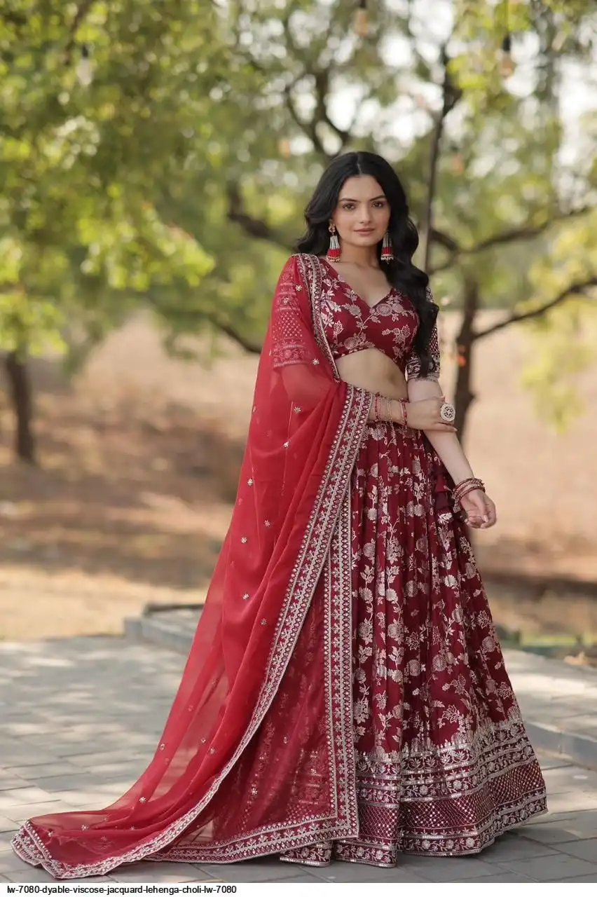 Designer Dyeable Pure Viscose Jacquard fabric Lehenga Choli & Dupatta Set