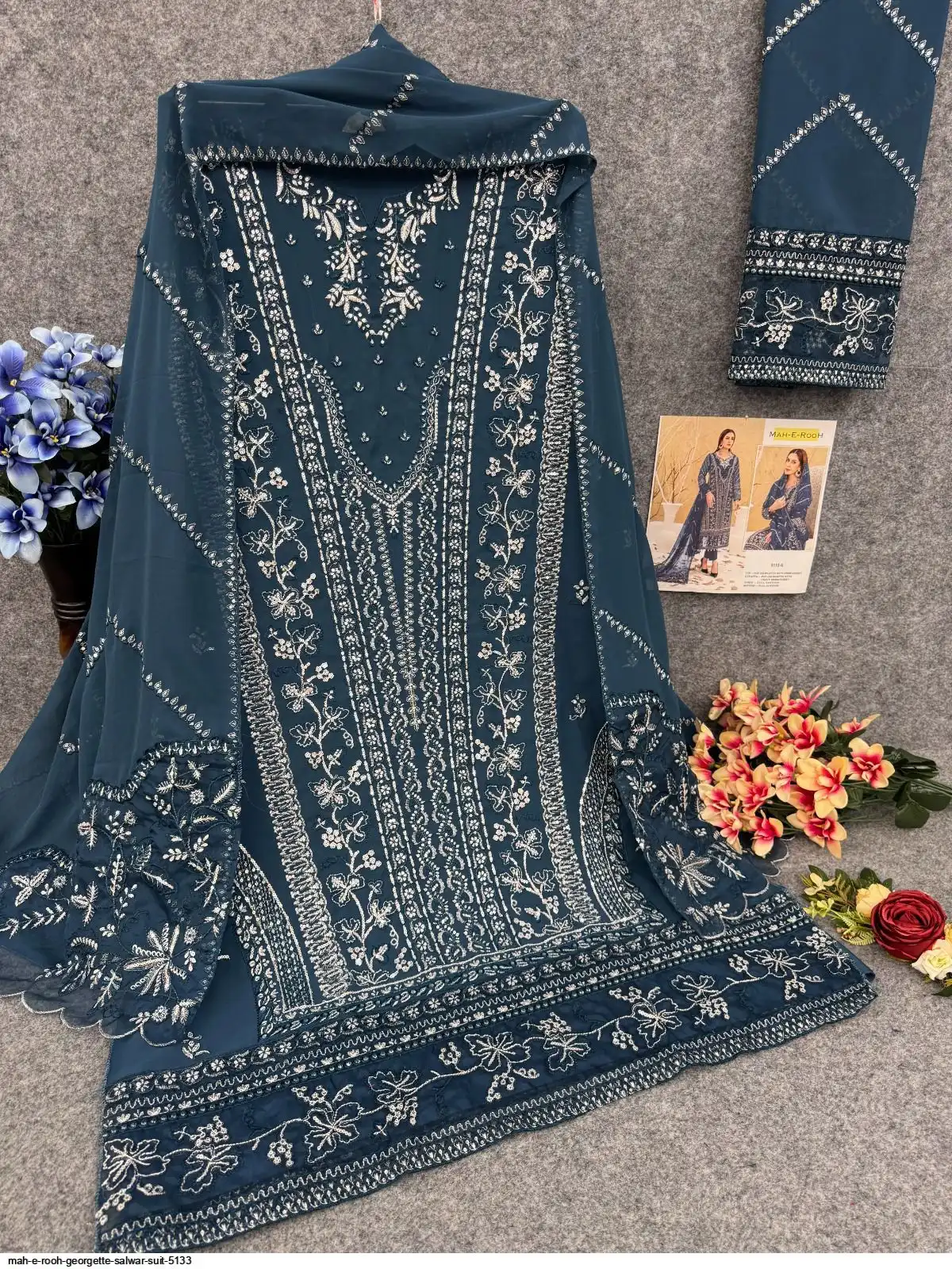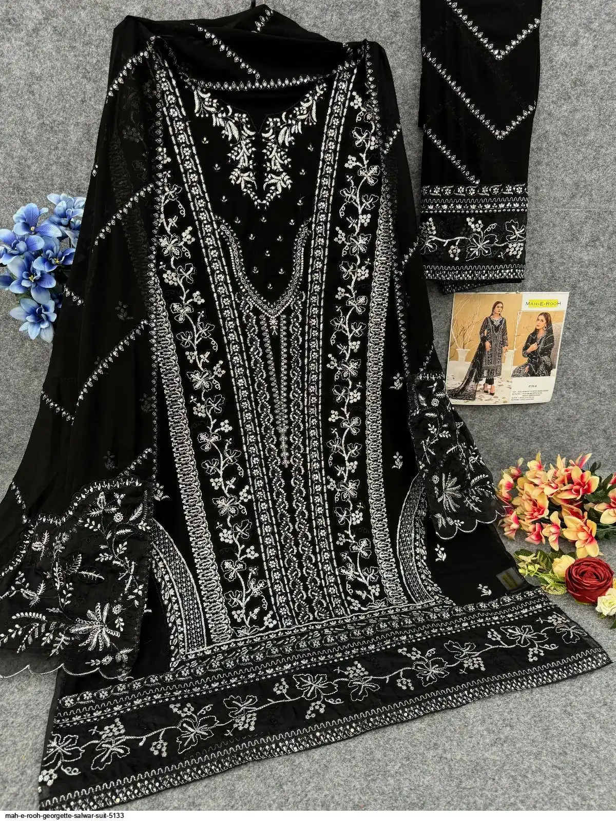 TOP :- Heavy Fox Georgette With Multi Thread Embroidery Stich + Jarkhan diamond