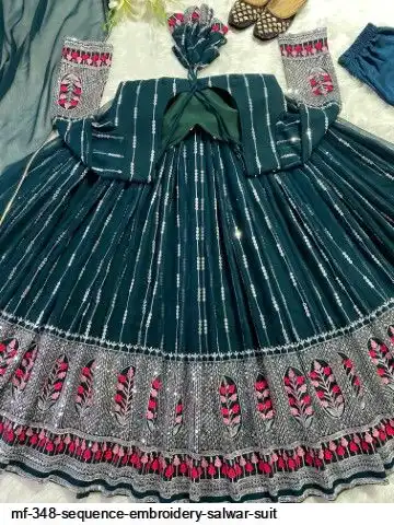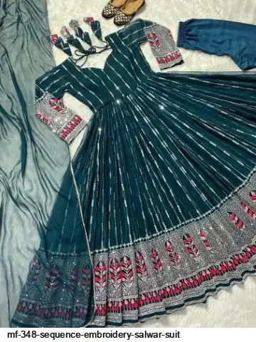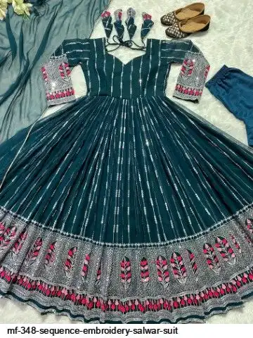 GOWN WORK :-_ SEQUENCE 5MM, MULTI NEEDLE WORK, WITH EMBROIDERY WORK WITH FULL SLEEVES_
