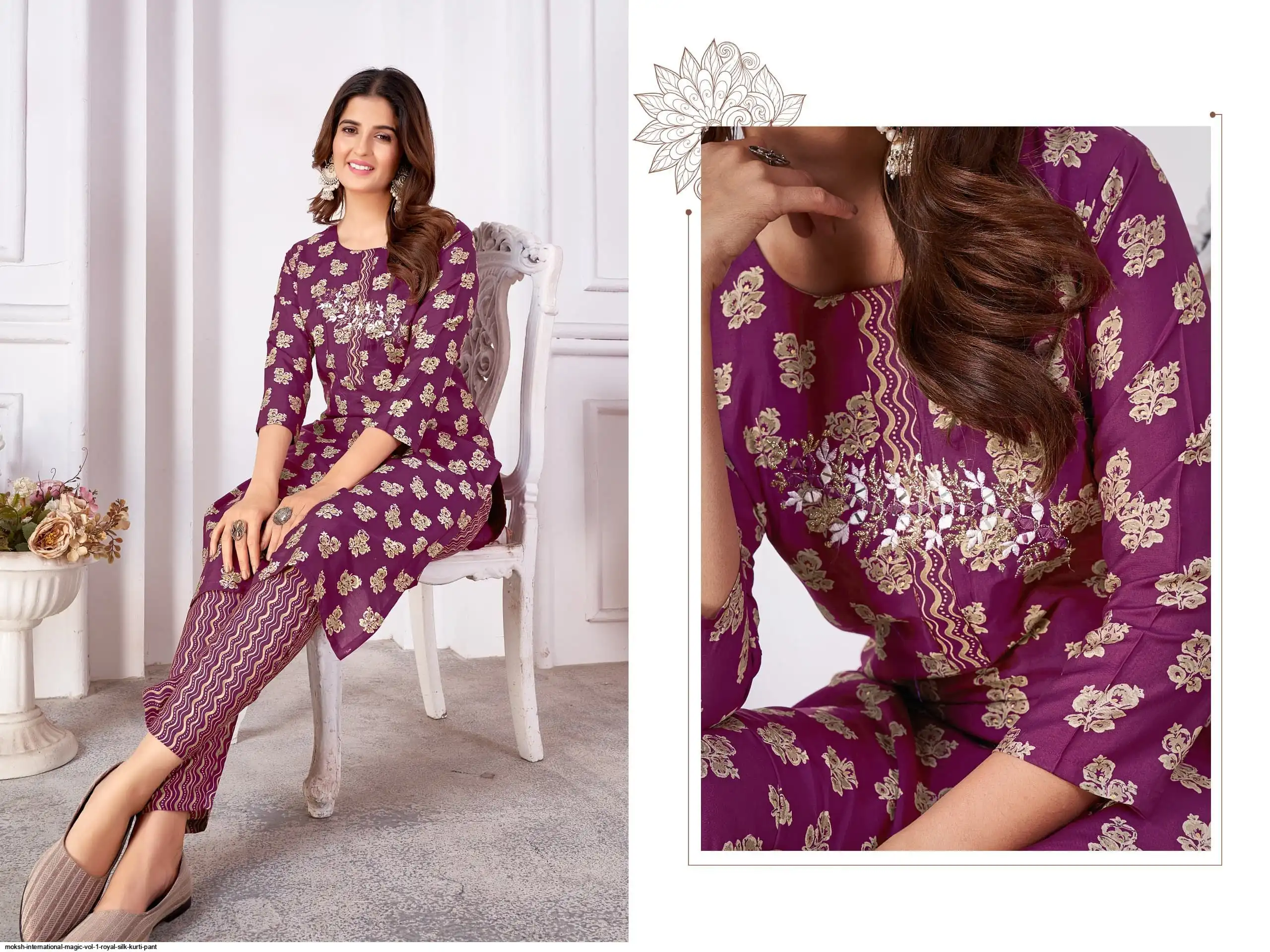 MOKSH INTERNATIONAL MAGIC VOL 1 ROYAL SILK KURTI PANT 8497