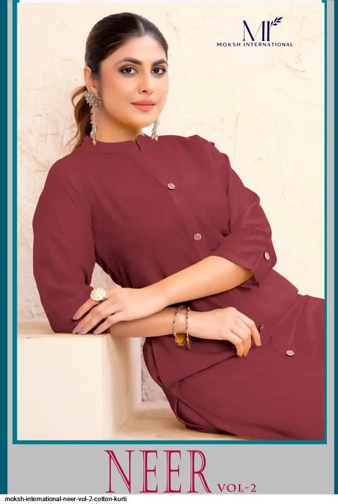 MOKSH INTERNATIONAL NEER VOL 2 COTTON KURTI MAROON