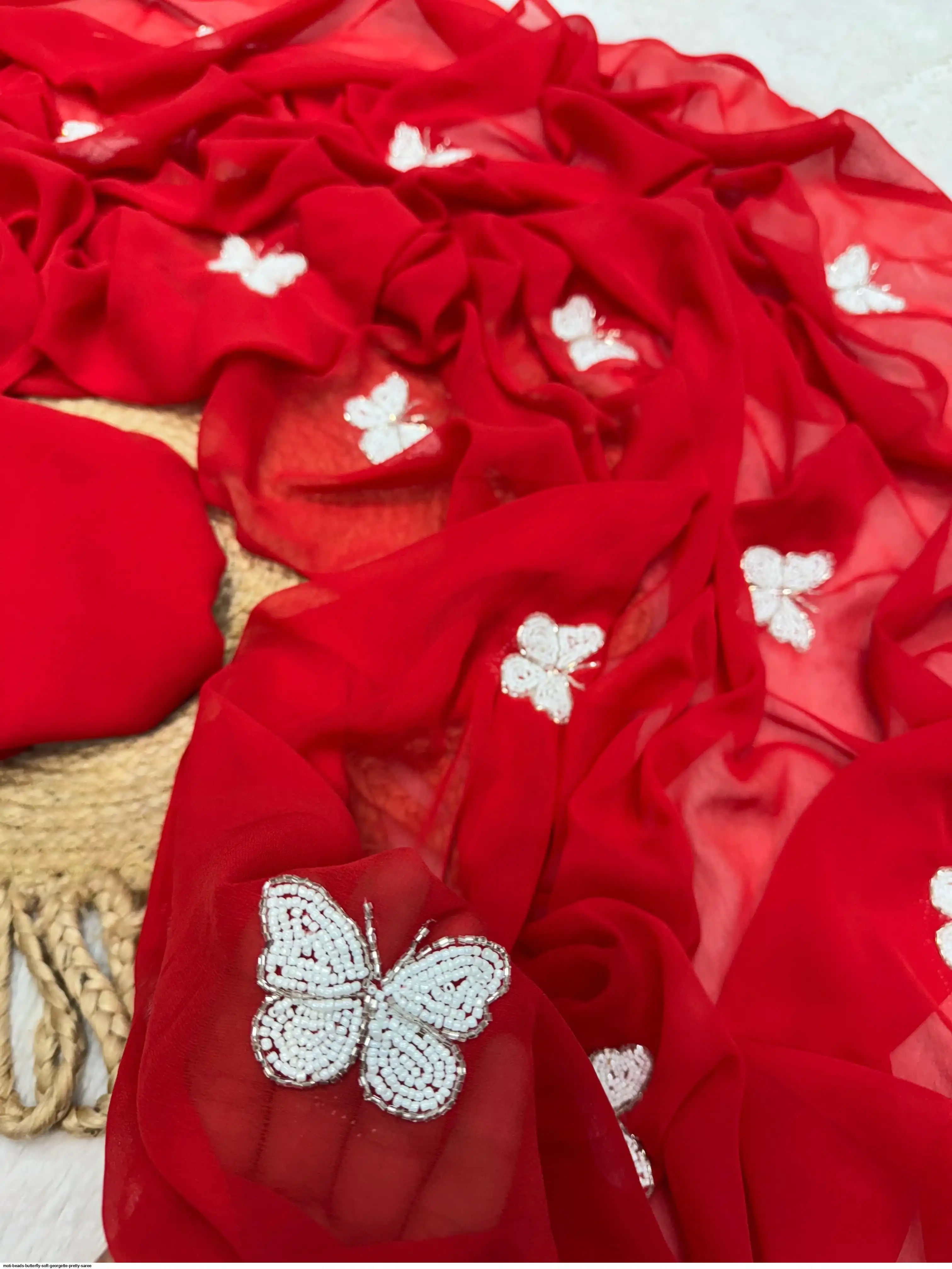 SUPER DUPER NOW IN TRENDS HANDWORK BEADS CUT DANA BUTTERFLY SAREE