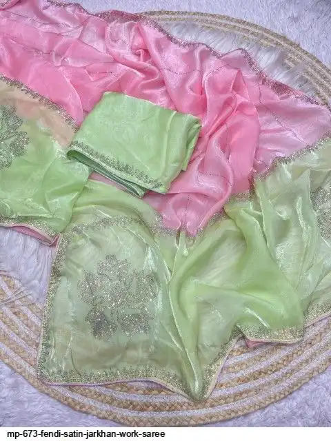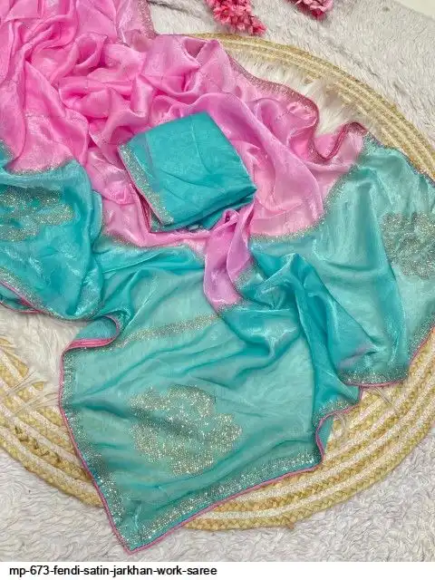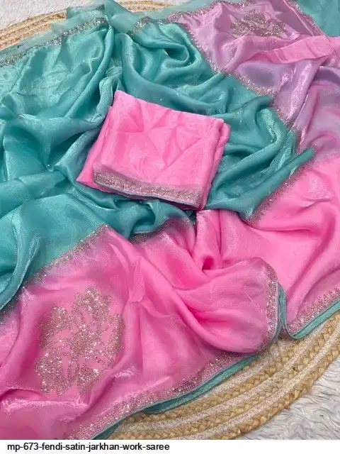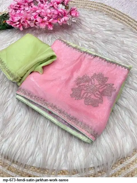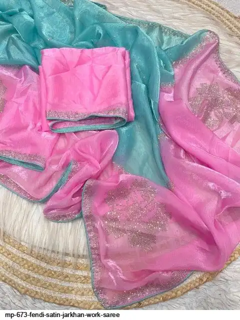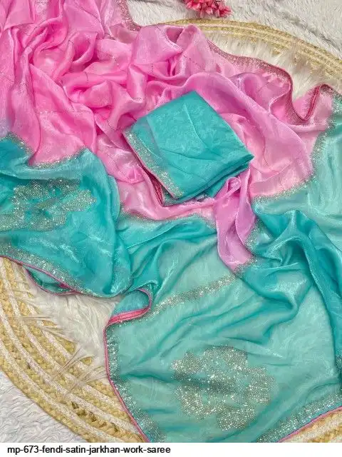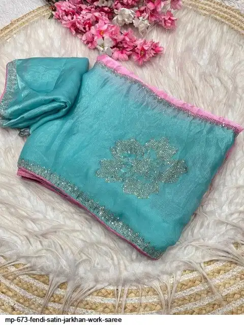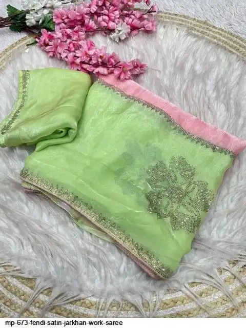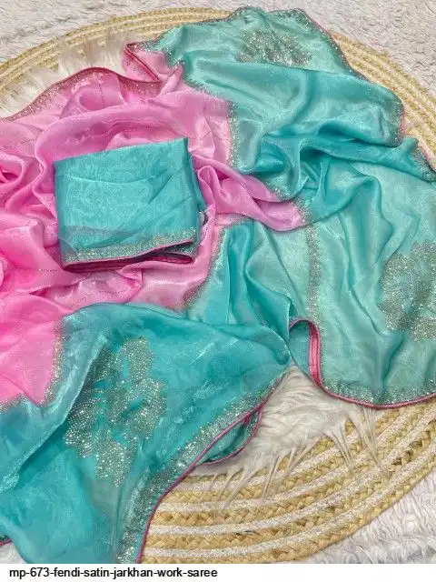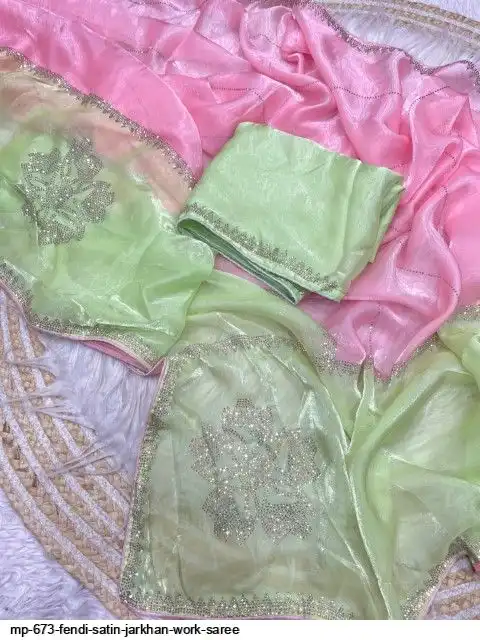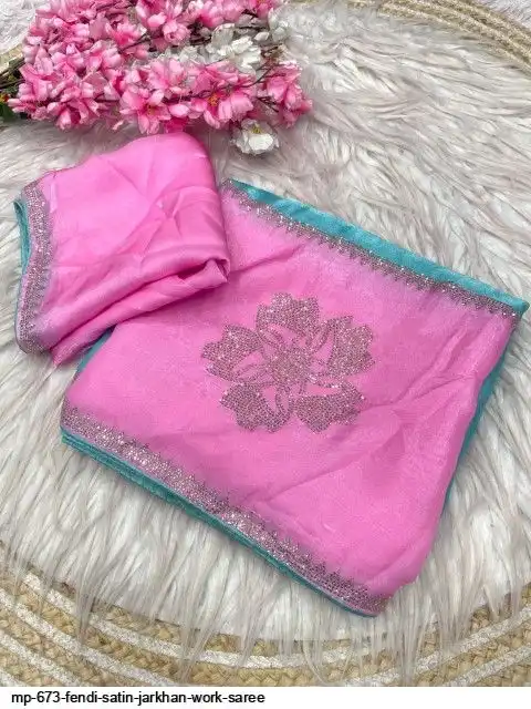 Fabric:- *Fandy Sattin digital print With Beautiful jarkhan Work &Siroski Work With contrast piping all over saree