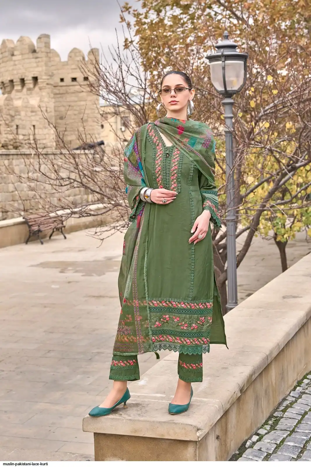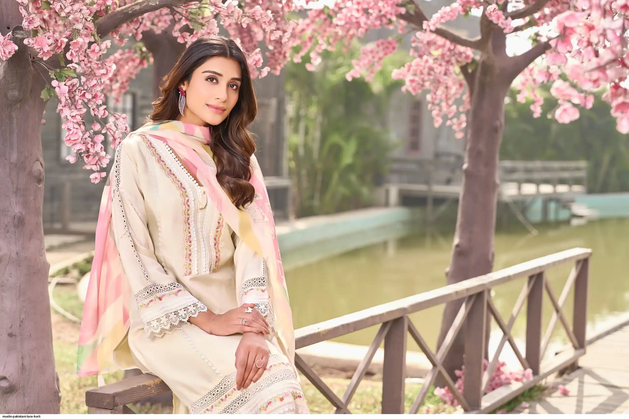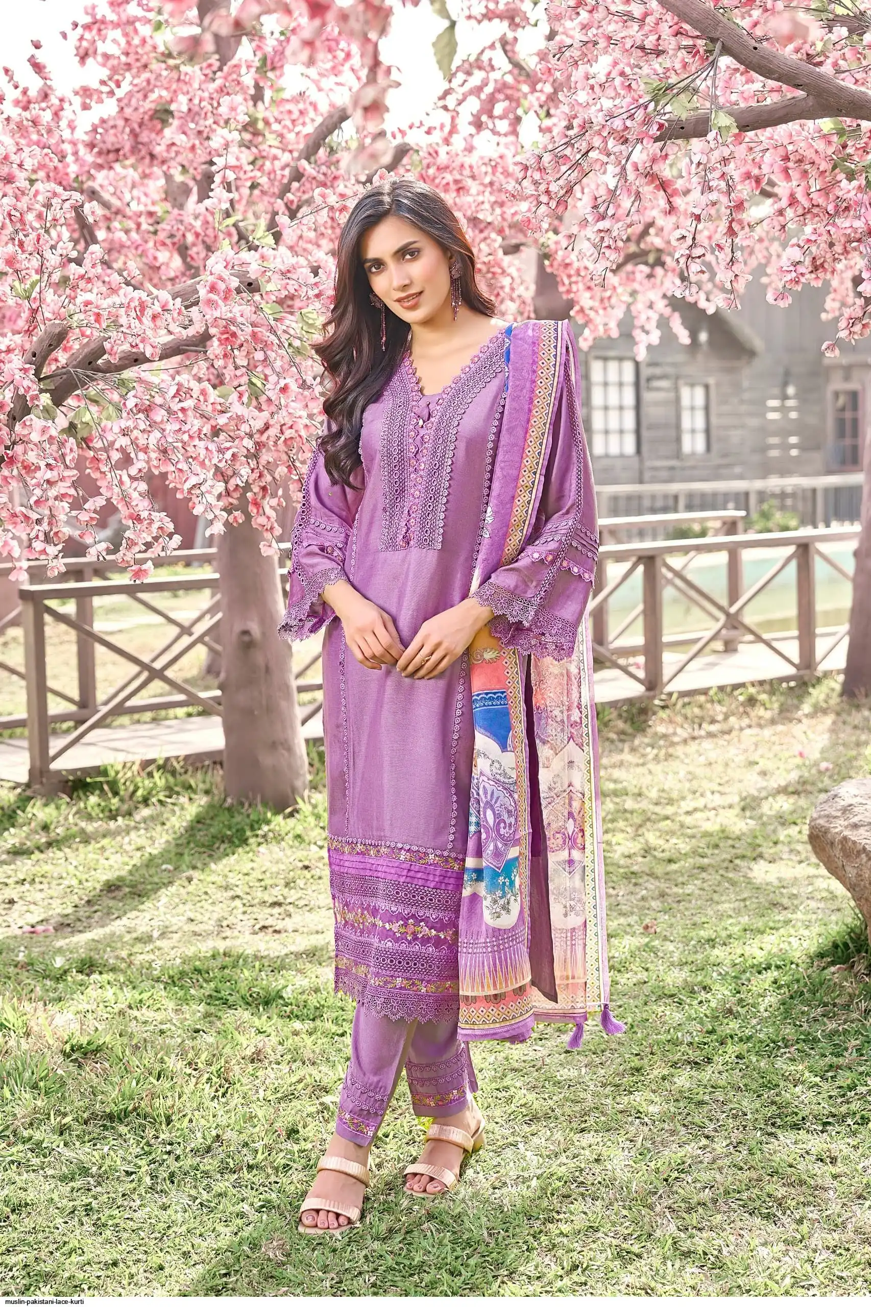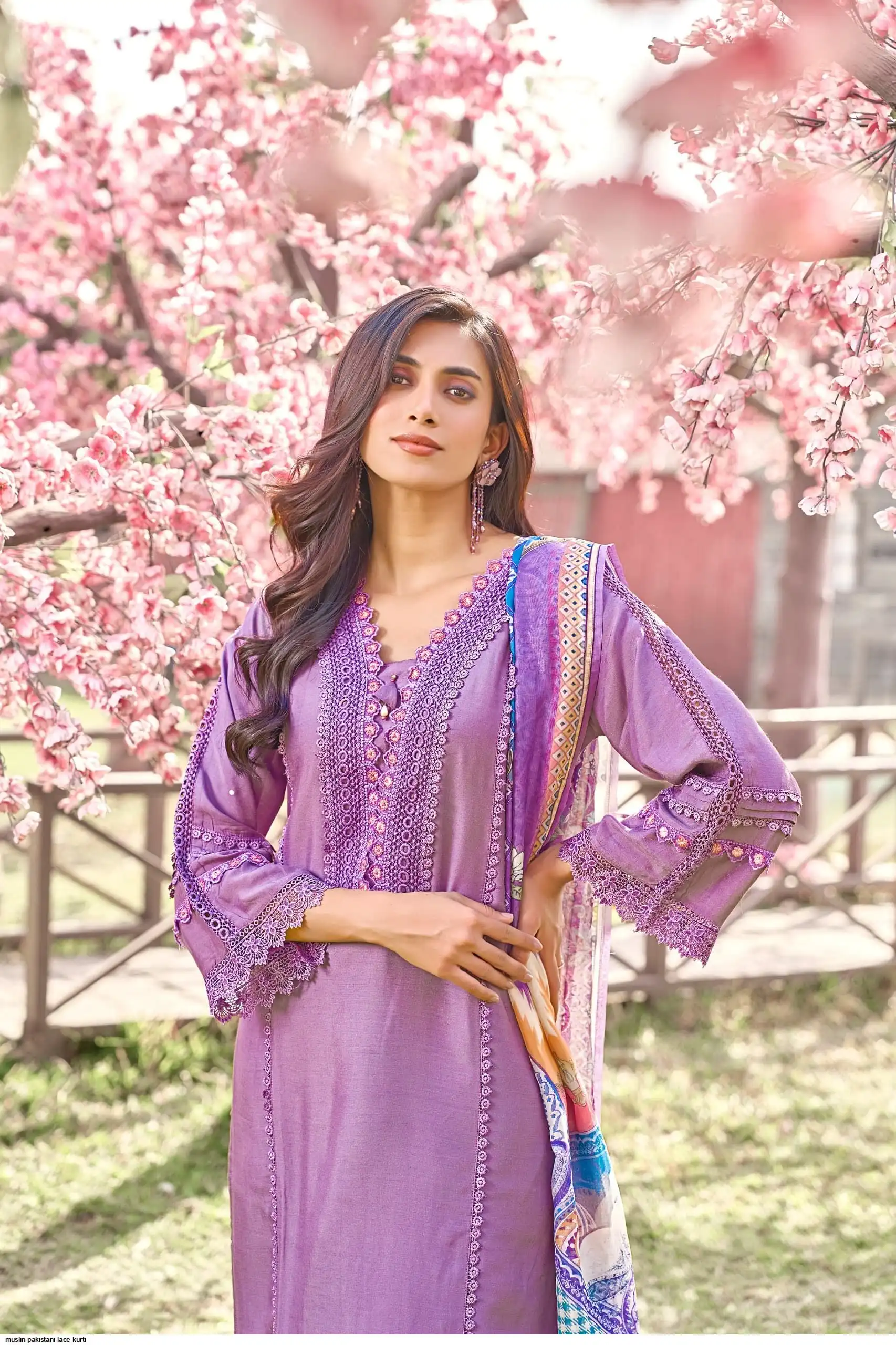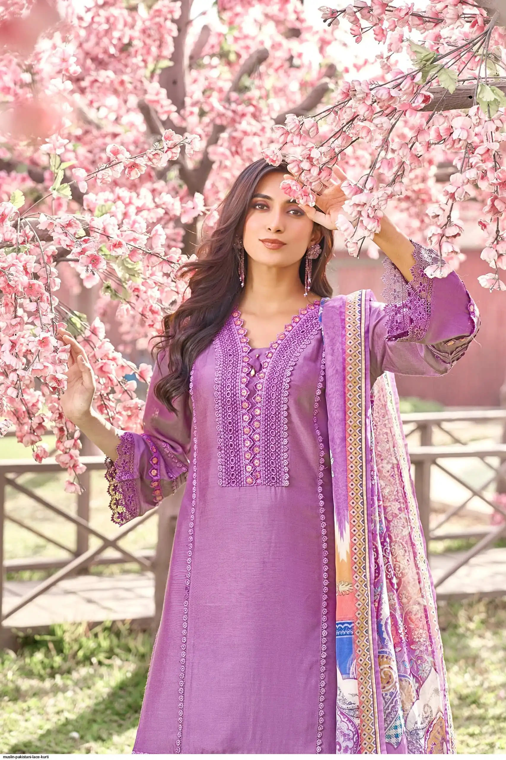 PURE MUSLIN PAKISTANI LACE KURTI SET