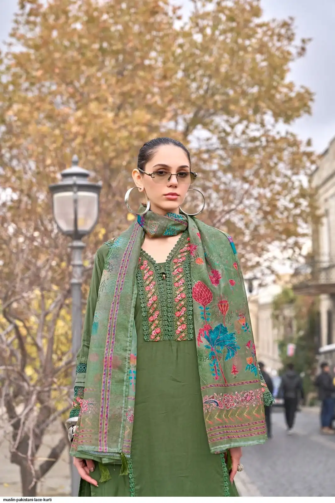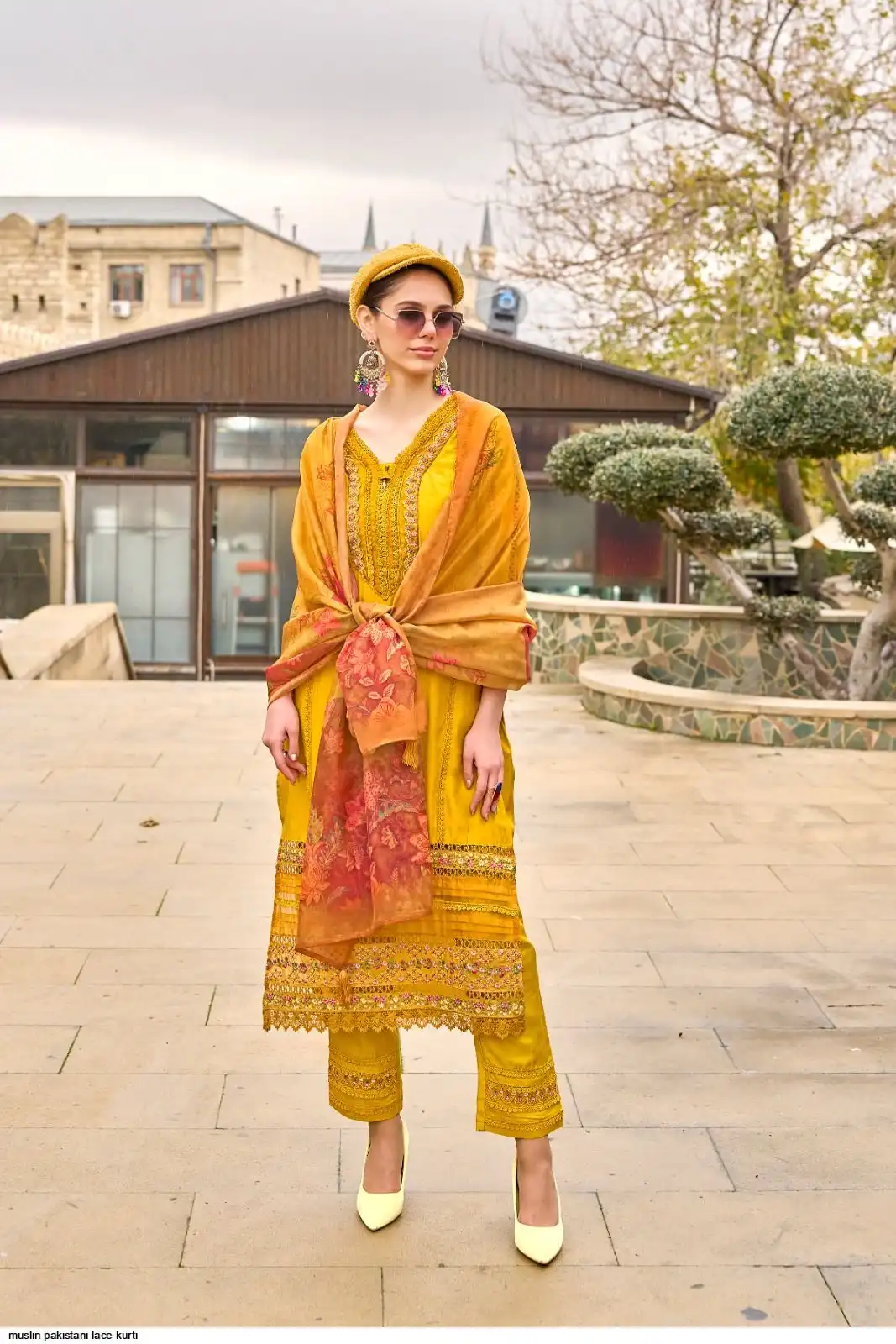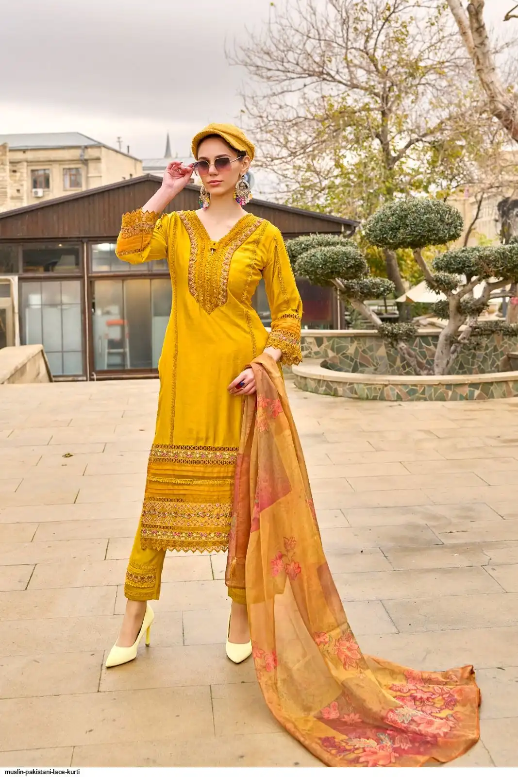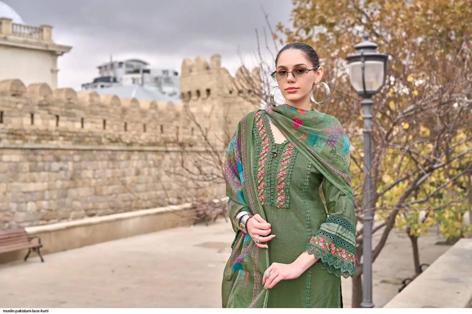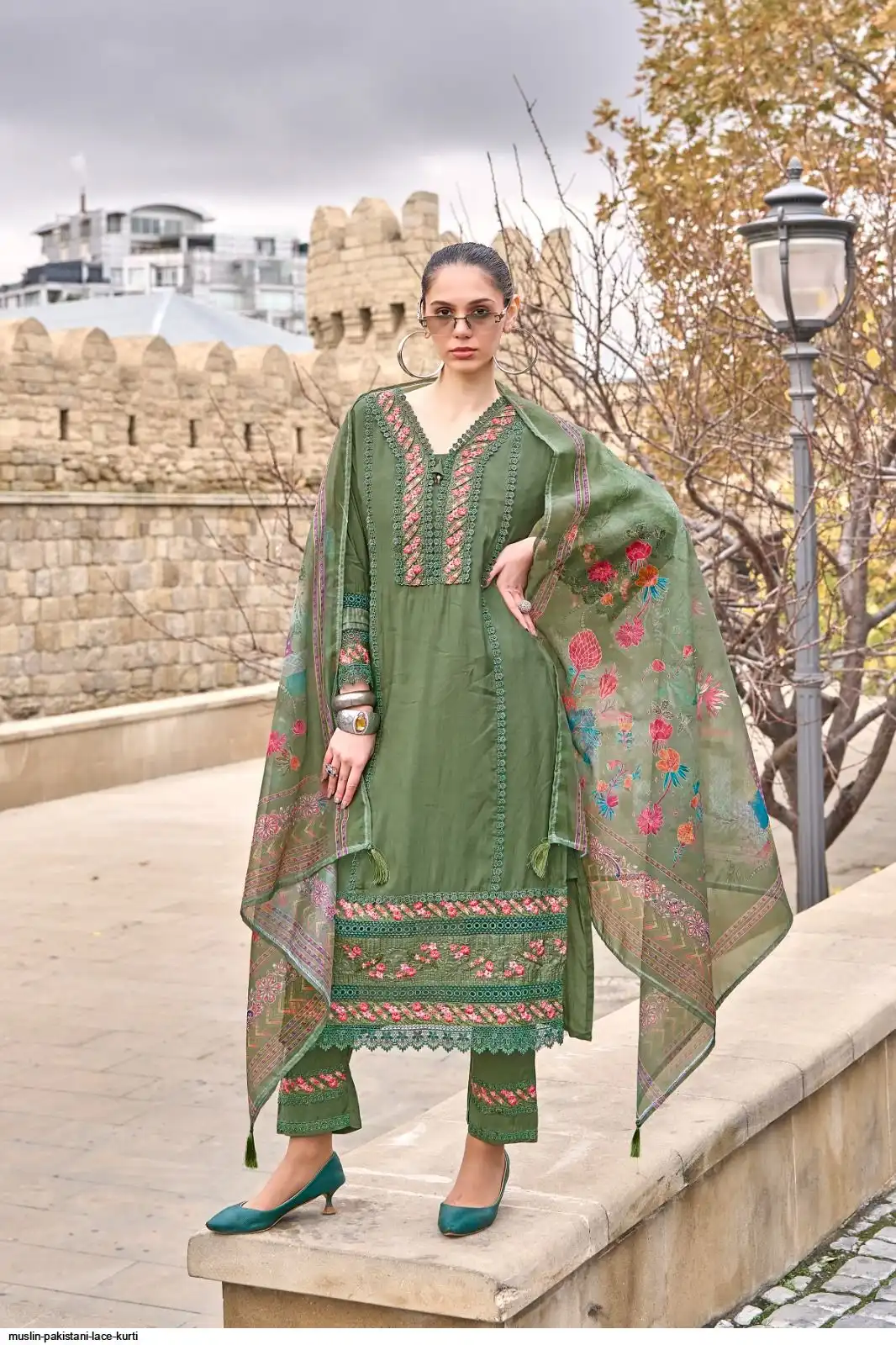 PURE MUSLIN PAKISTANI LACE KURTI SET