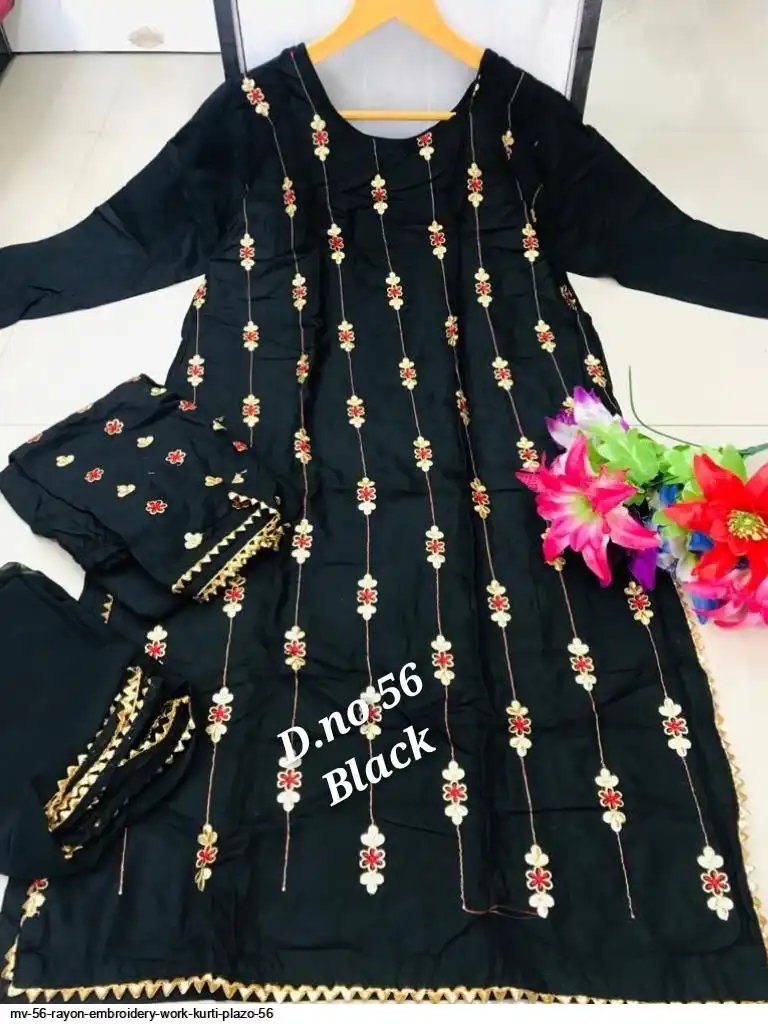 MV 56 RAYON EMBROIDERY WORK KURTI PLAZO 56 1