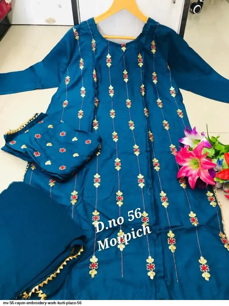 MV 56 RAYON EMBROIDERY WORK KURTI PLAZO 56 2