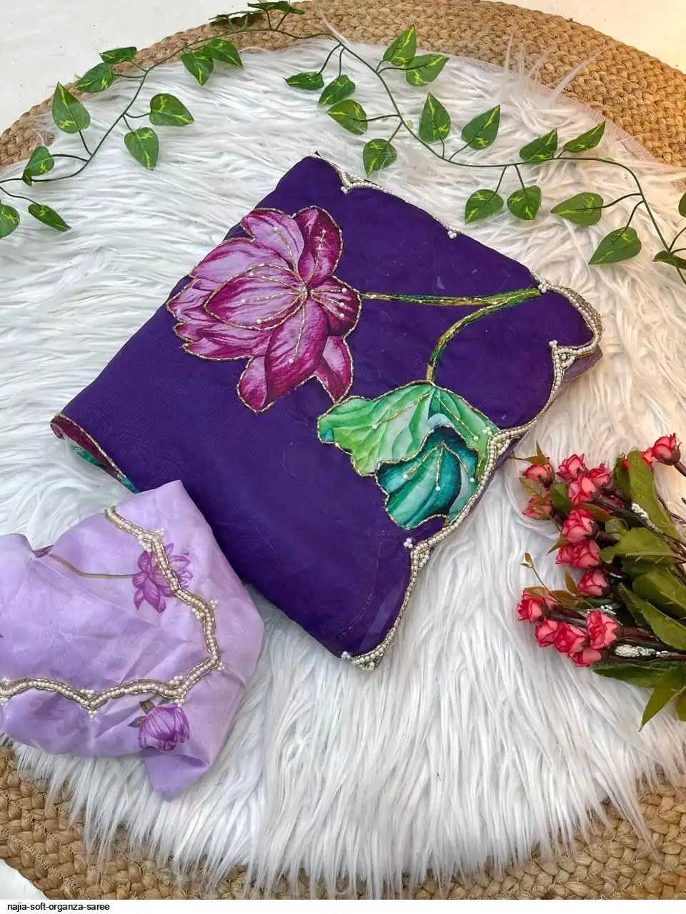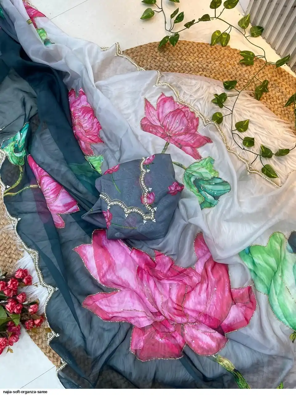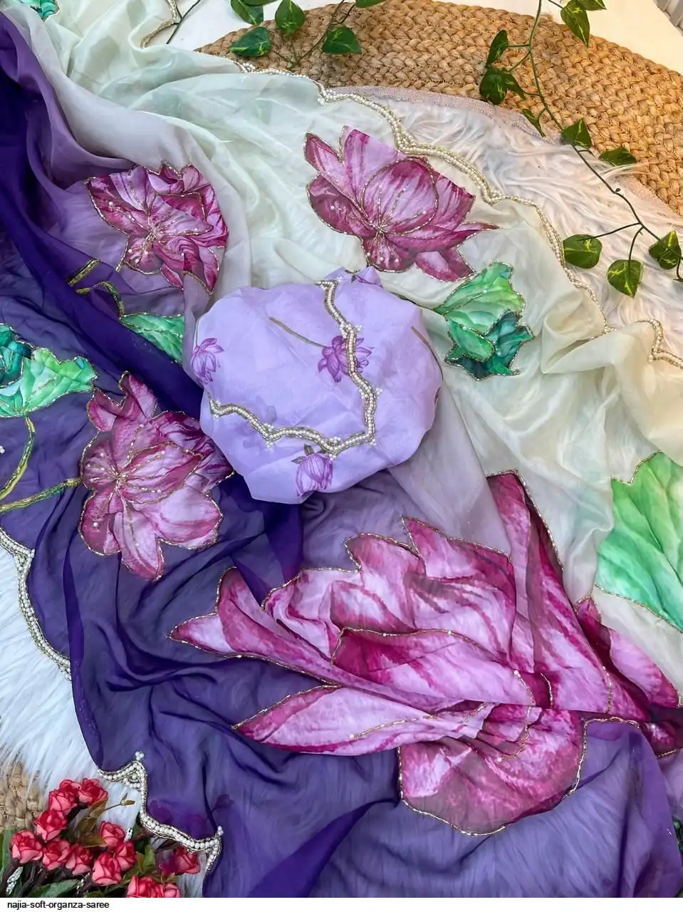 Blouse:- Paired with Soft Organza Fabric With Floral Print With Handwork