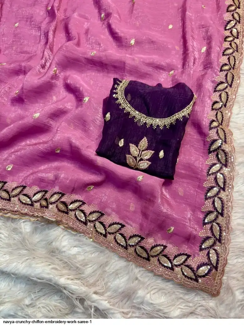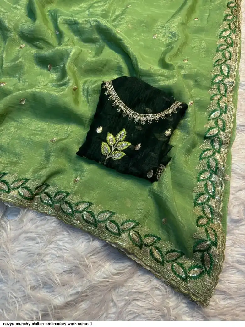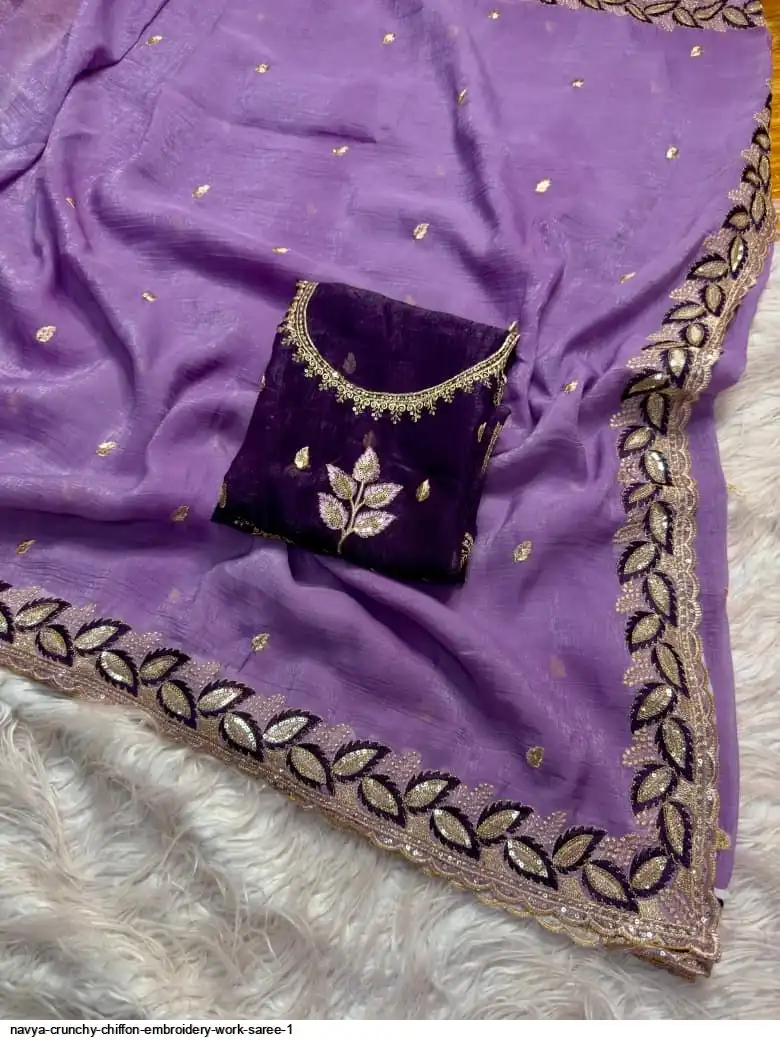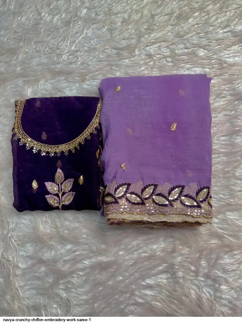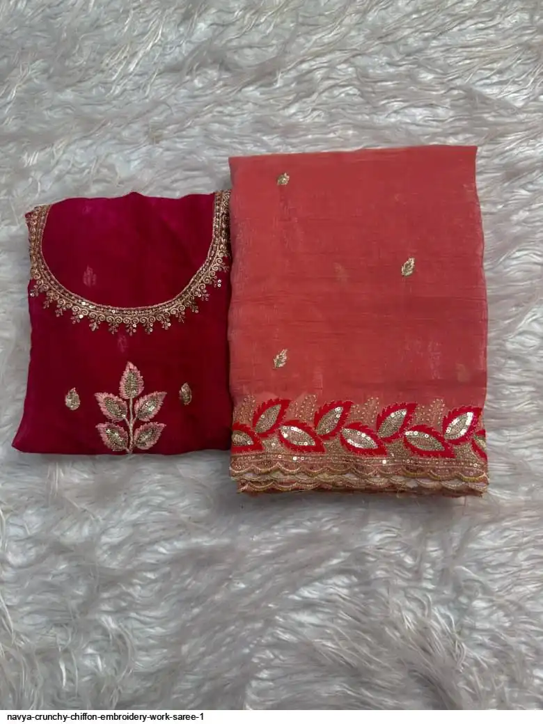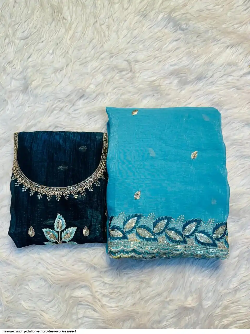 Saree fabric- crunchy ciffon saree with elegant scalap embroidery work.
