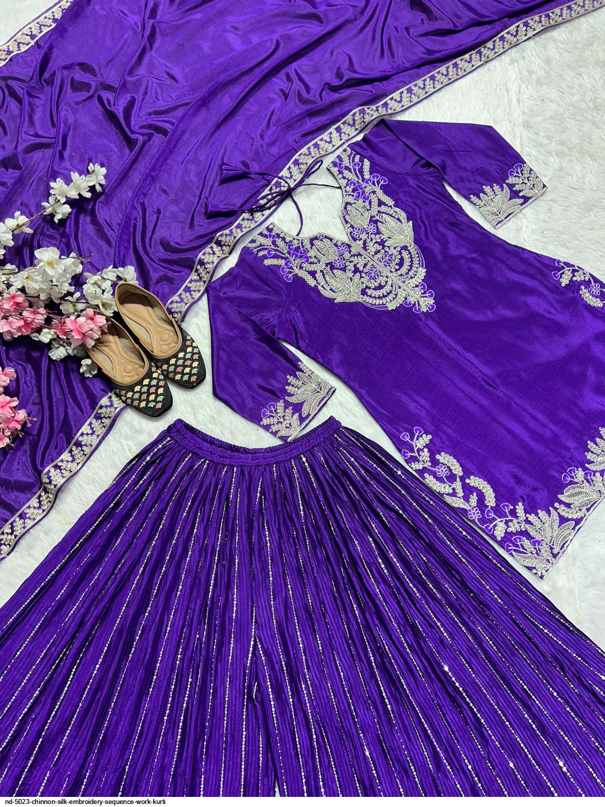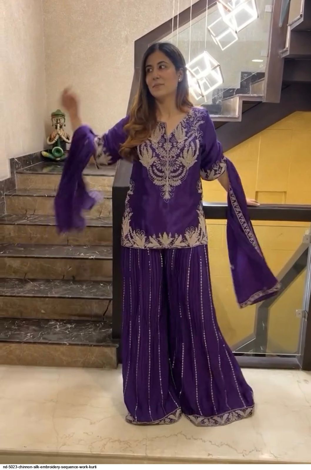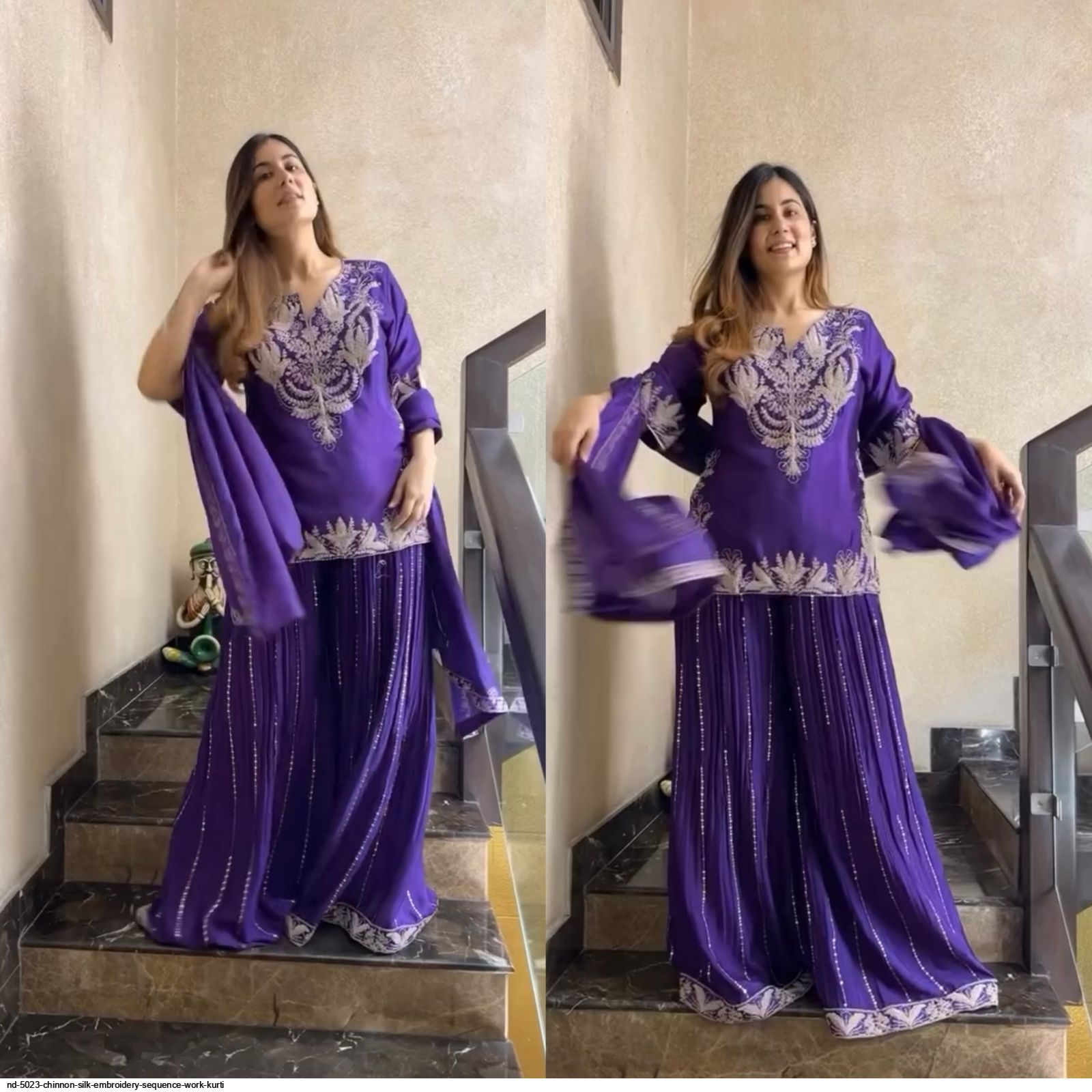 Sharara fabric :Pure Heavy Chinnon Silk With Heavy Embroidery Coding Sequence Work (FullyStitched)