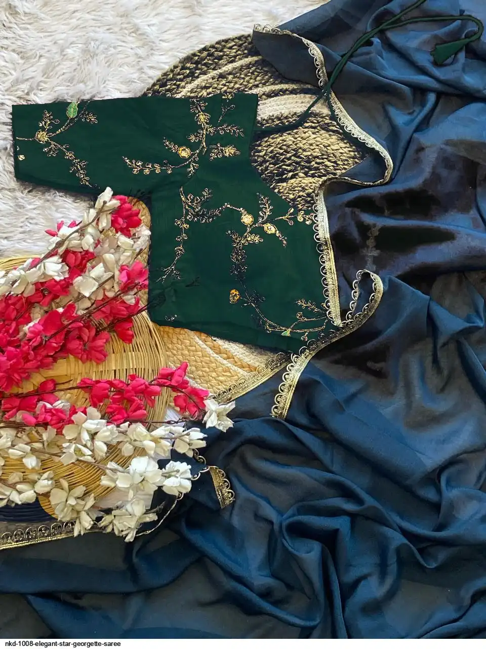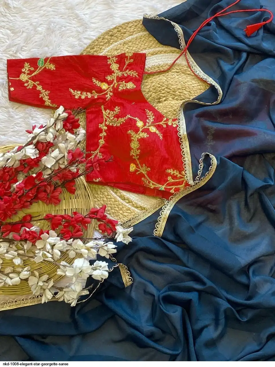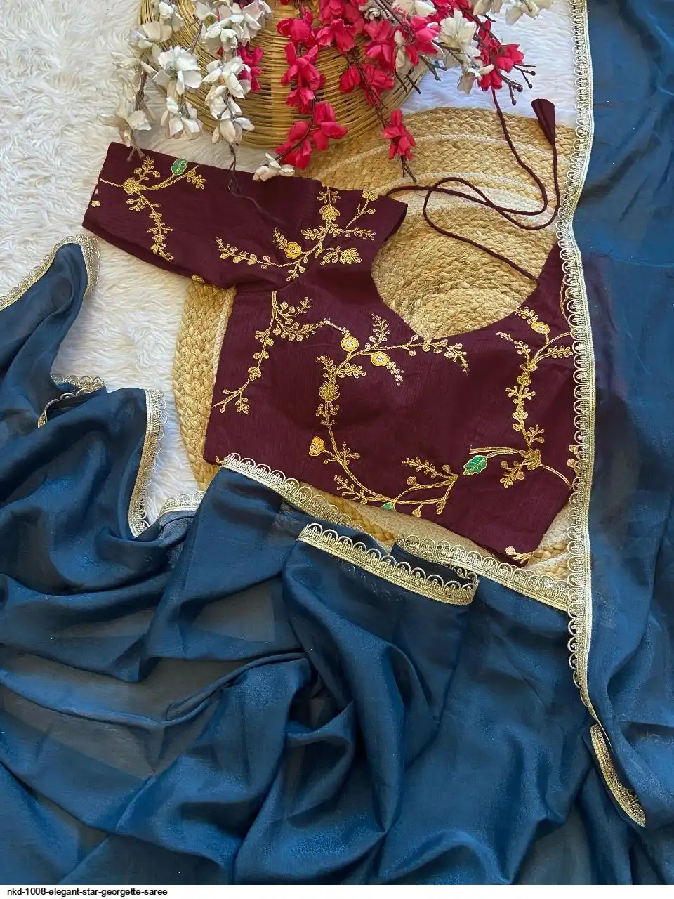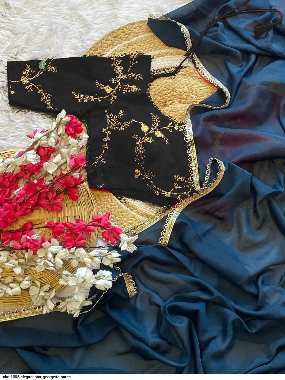 ELEGANT STAR GEORGETTE SAREE WITH STITCHED BLOUSE – TIMELESS BEAUTY