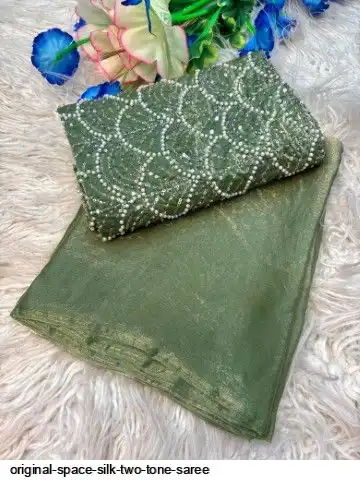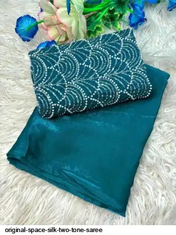 Original space silk two tone fabric with handwork trending blouse party wear saree