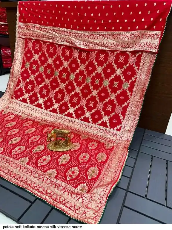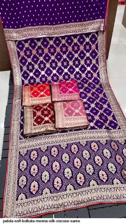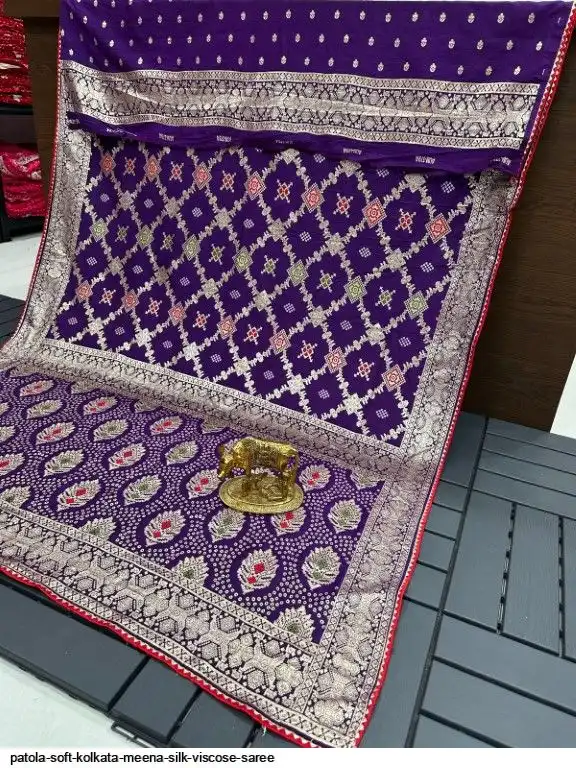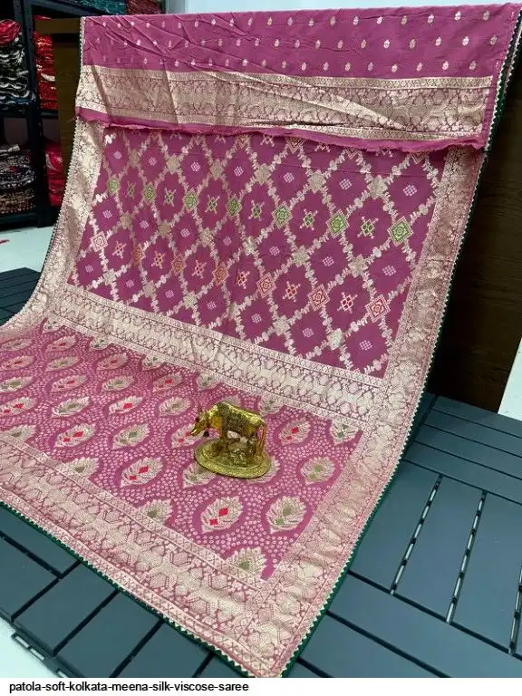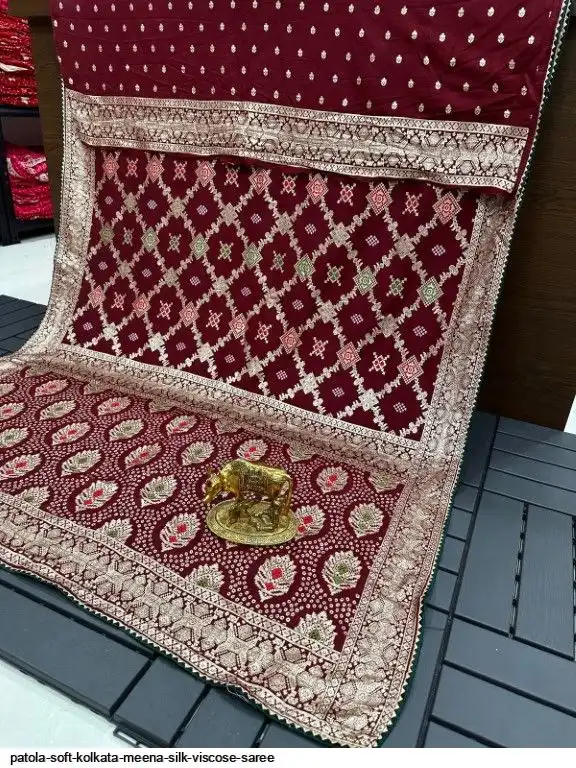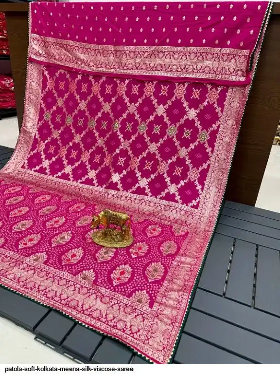 SAREE :~ Luxury Pure Soft Kolkata Patola Meena Silk Viscose Weaving Beautiful Patola Meena Zari Weaving in Saree