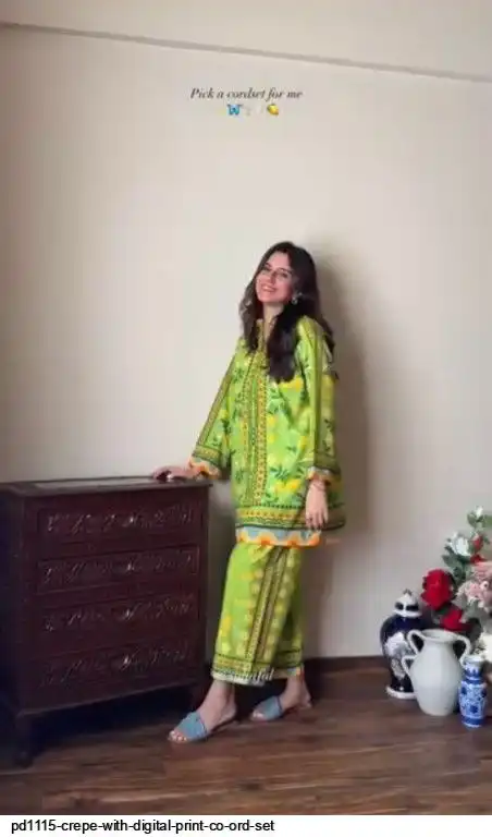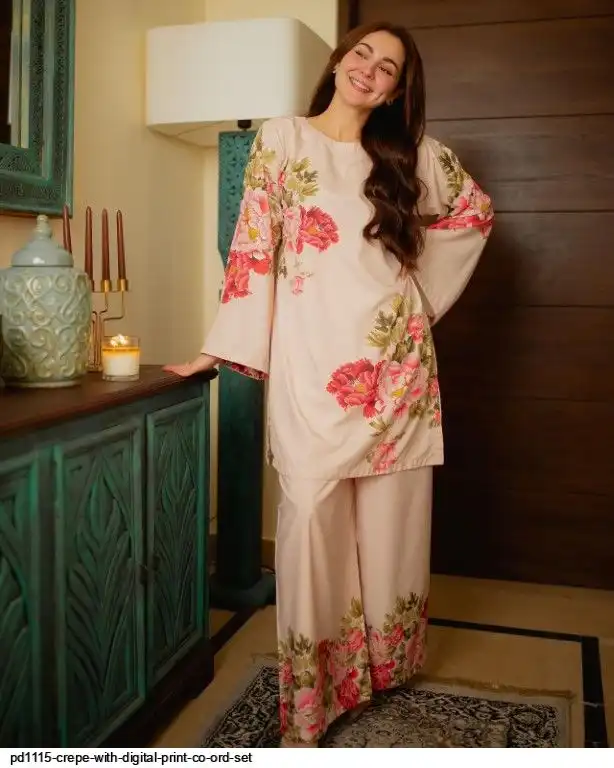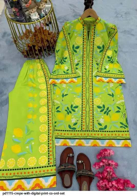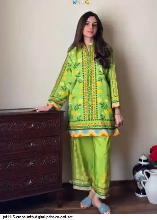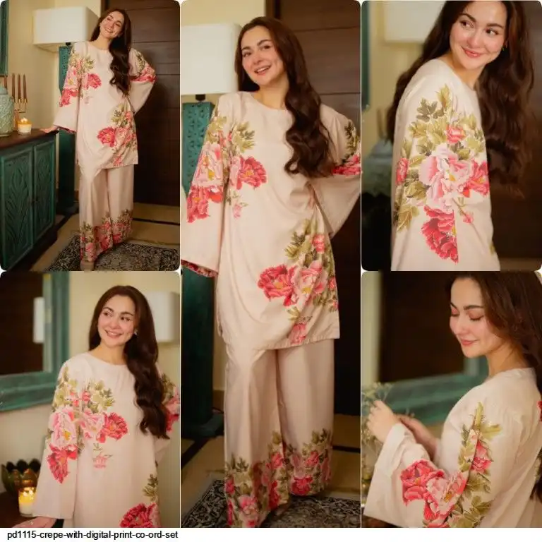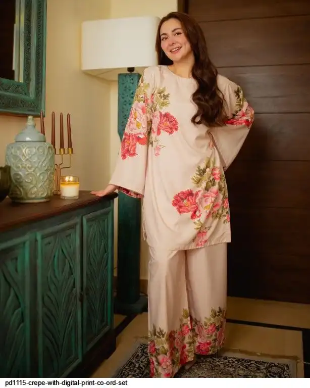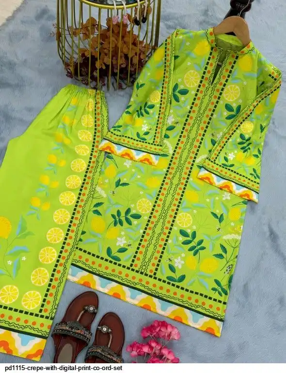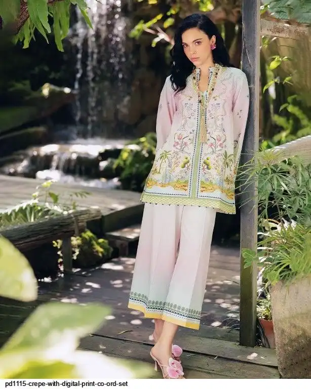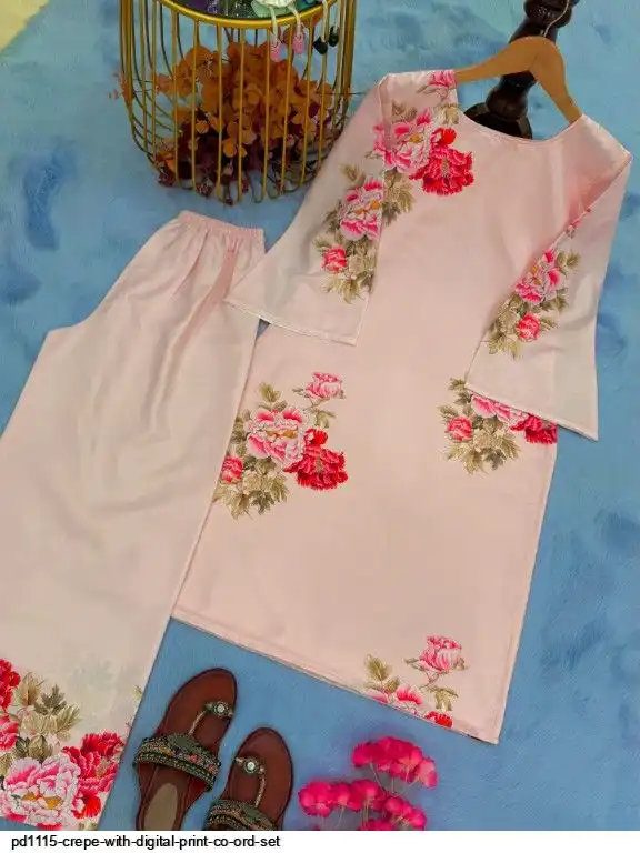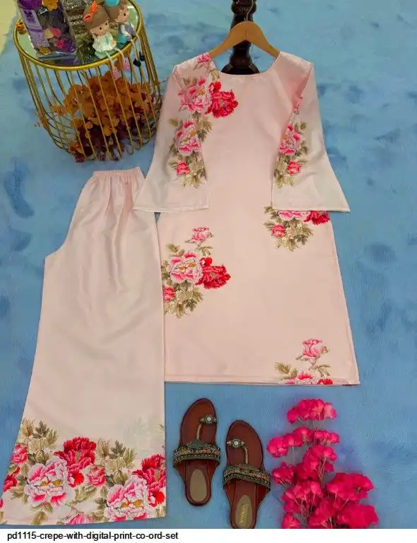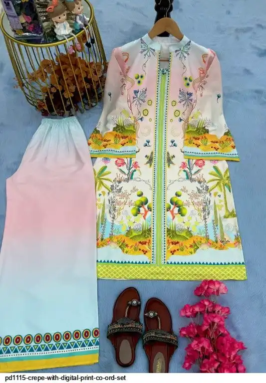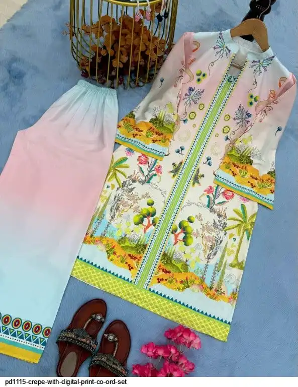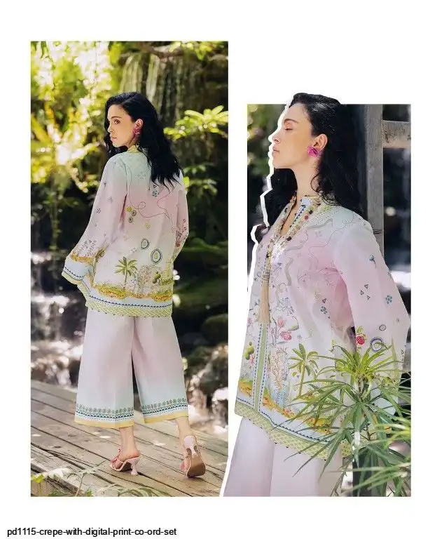 Top Fabric :Pur Natural Crepe With Digital Print With Sleeves