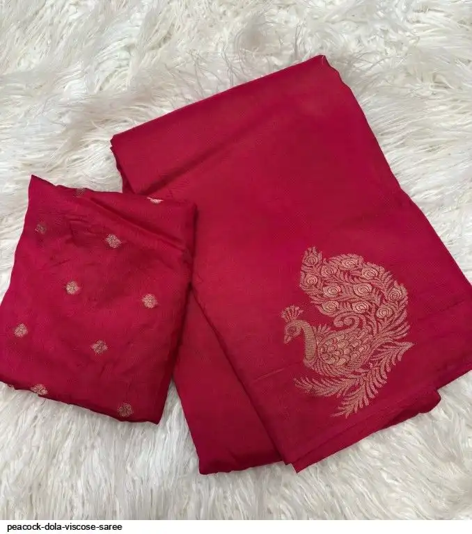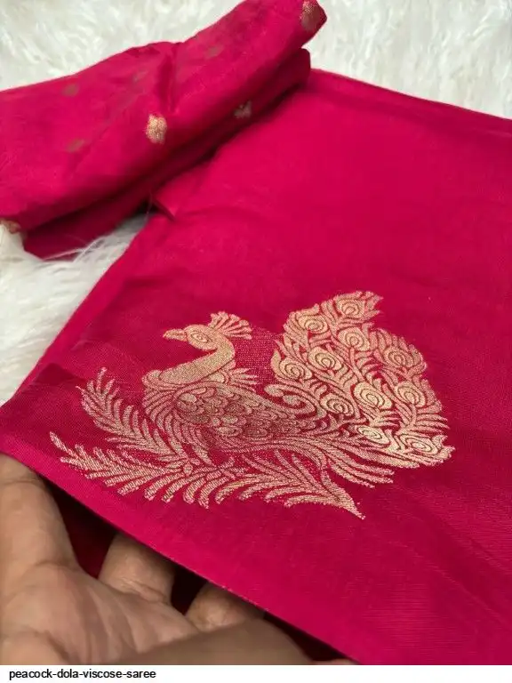 Pure viscose dola with beautiful color with pure zari peacock figure with running pallu