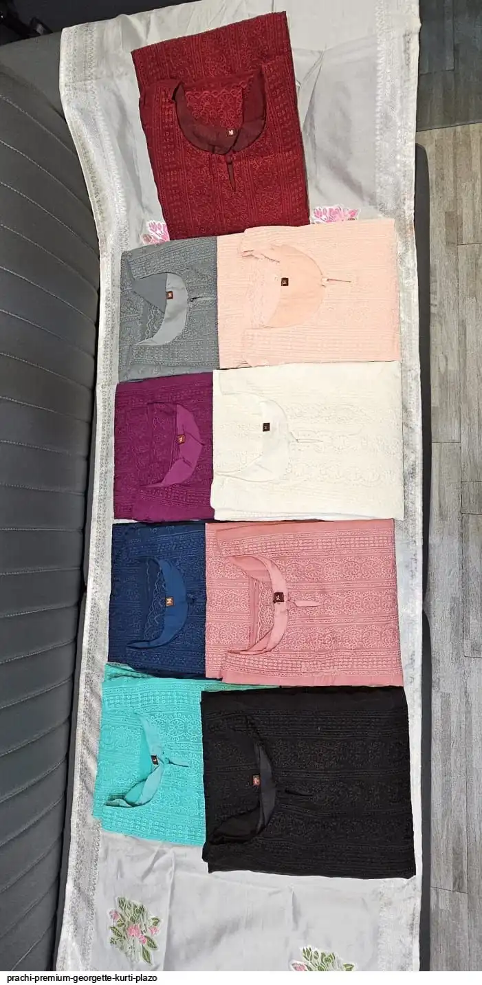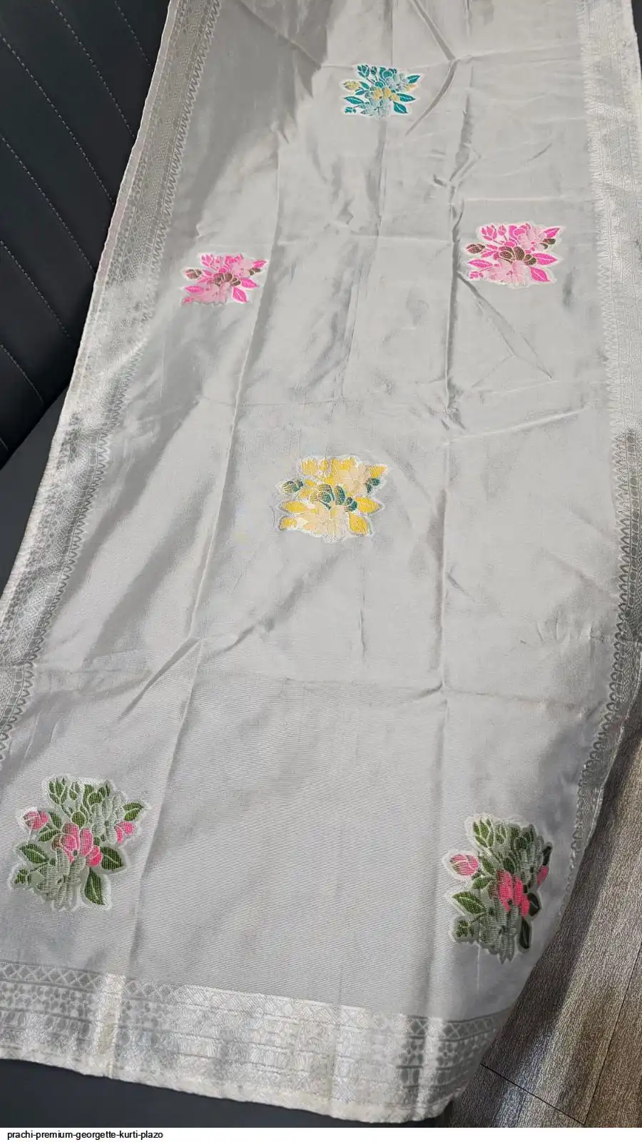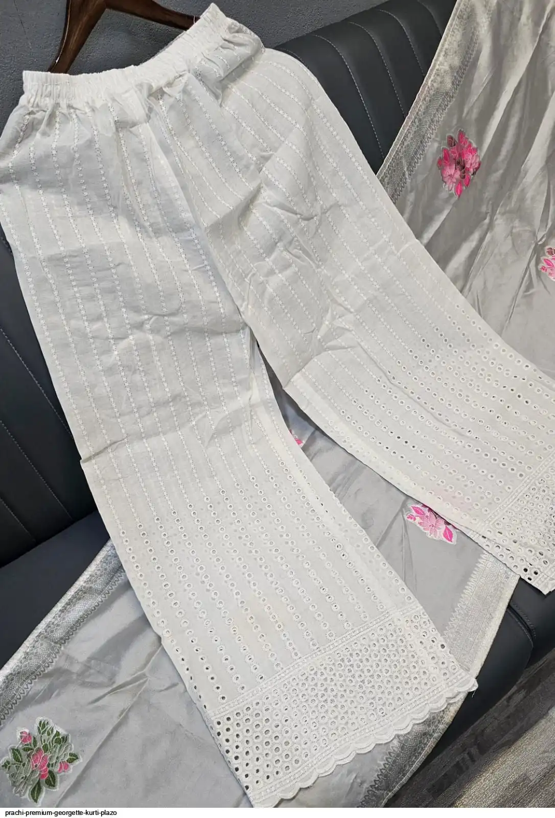 Fabric Details :-Premium Georgette Top with beautiful chikankari work on yoke & Cotton Plazo Chikankari Work Les & Beautiful Multicolor Jacquard Dupatta
