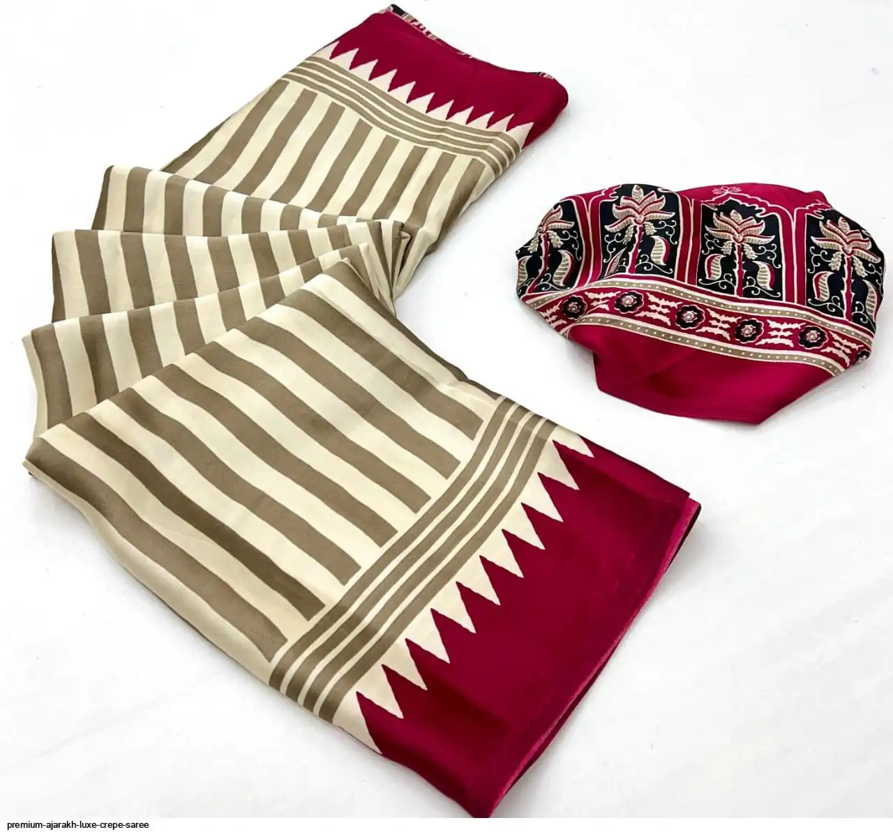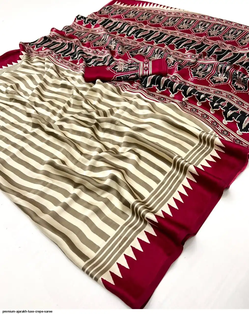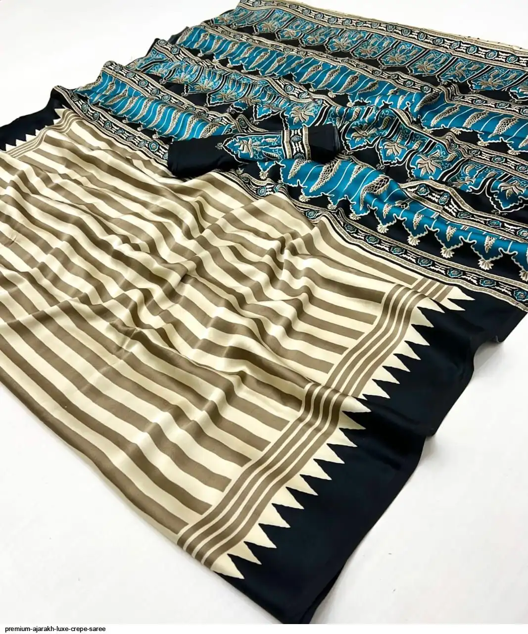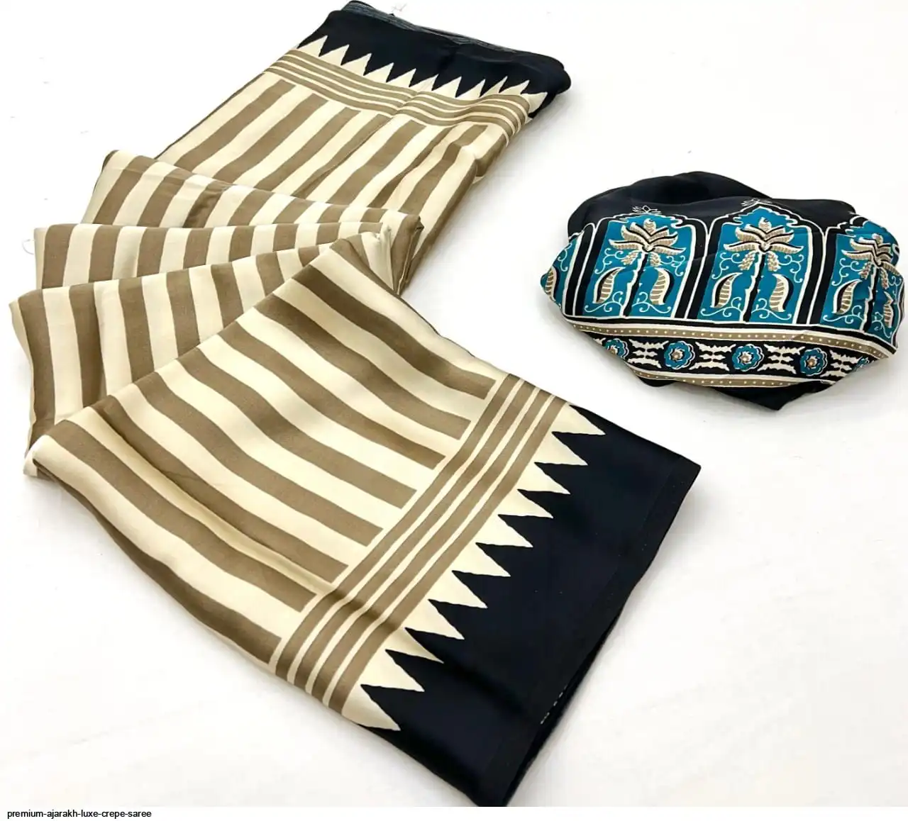 Fabric - Printed Ajarakh Satin Crepe Saree
