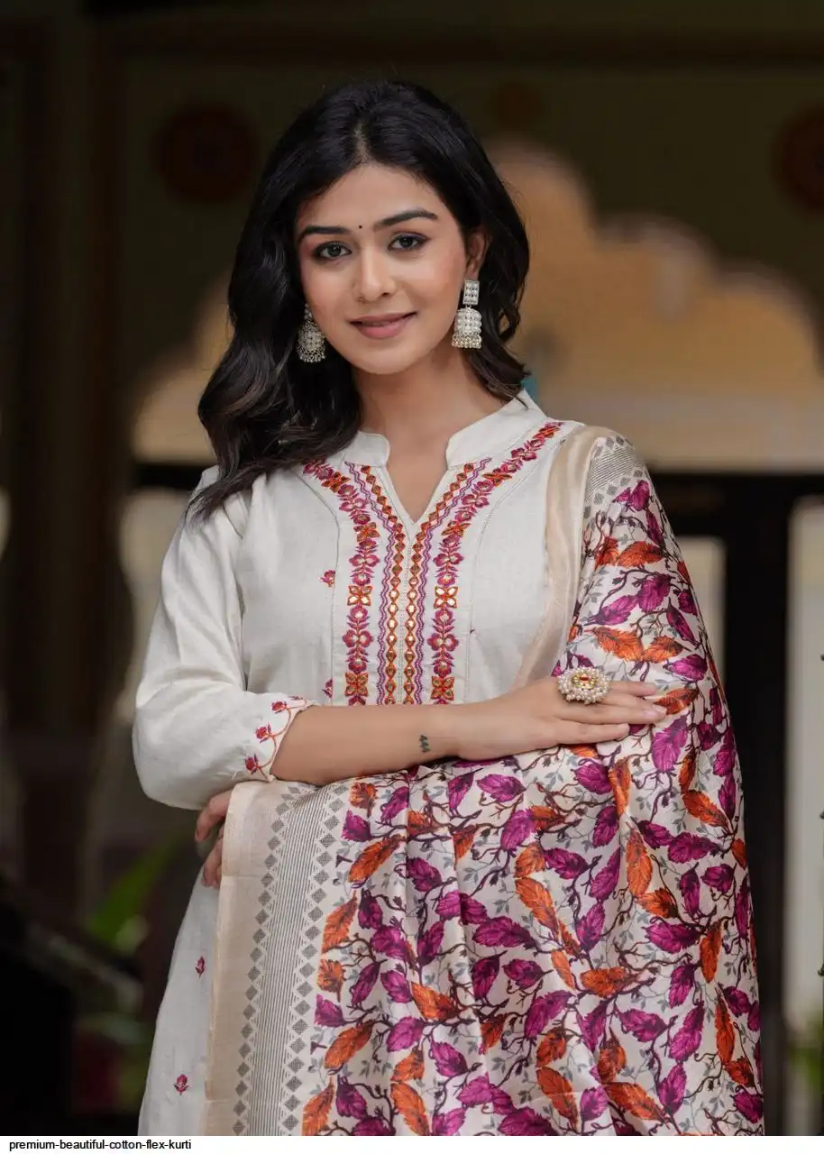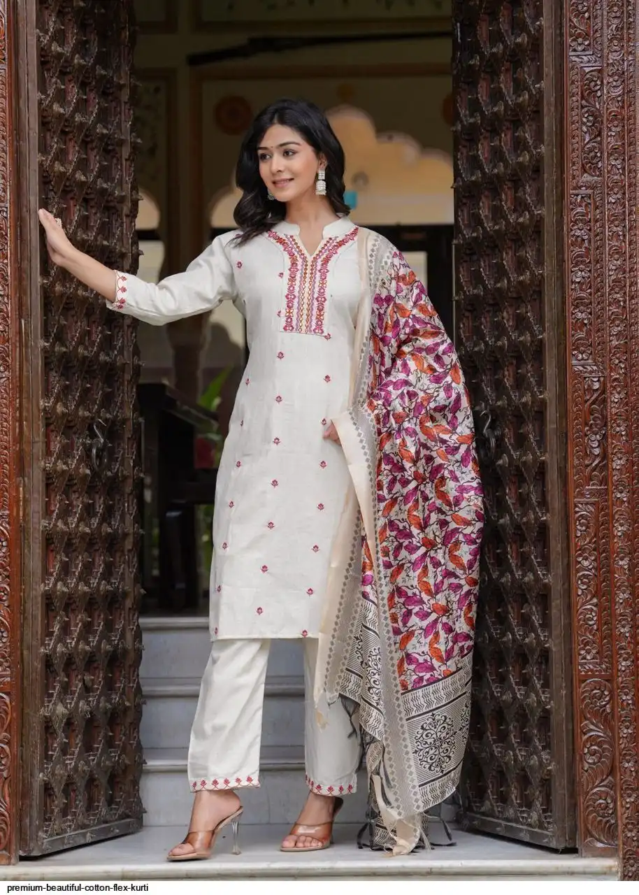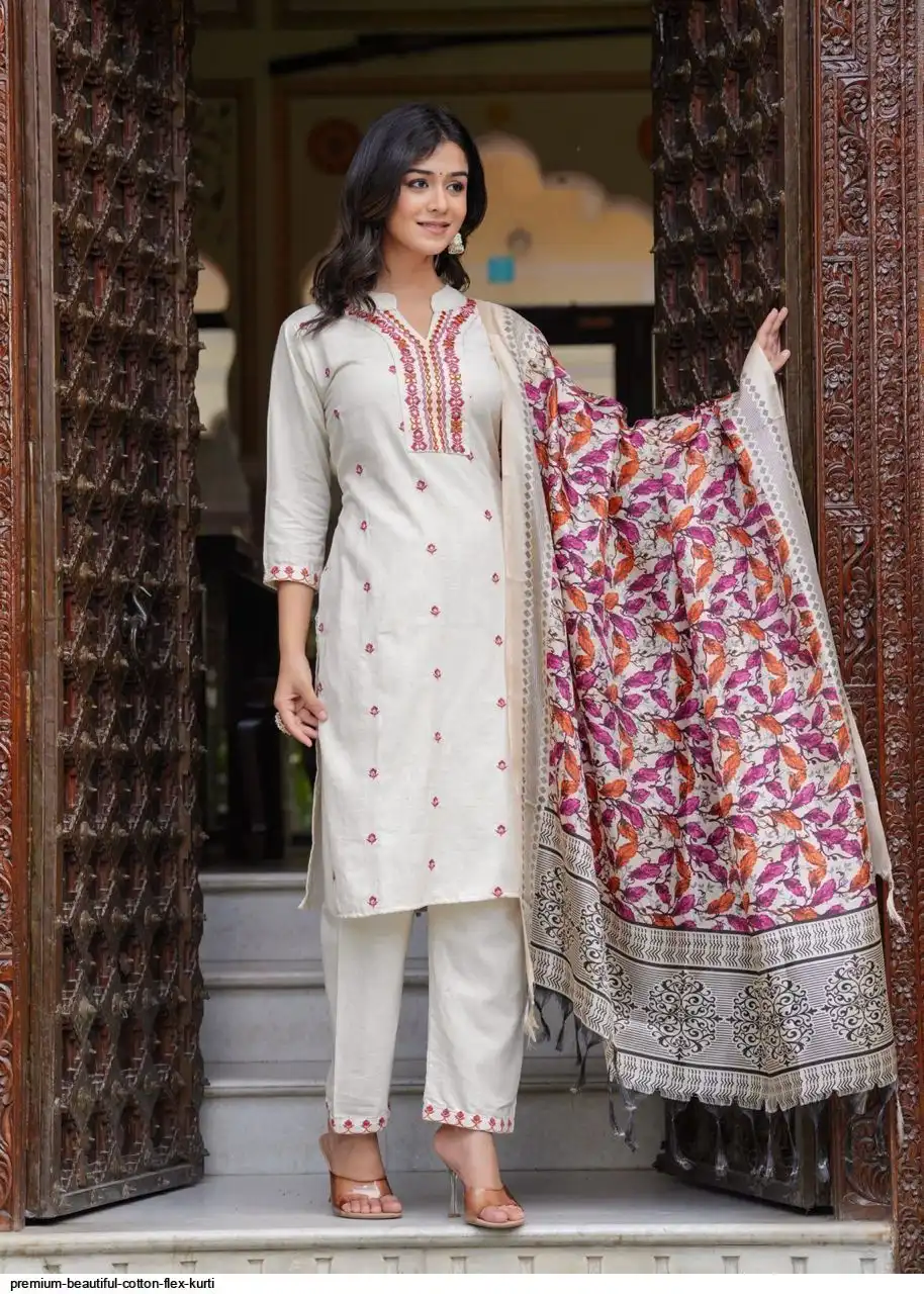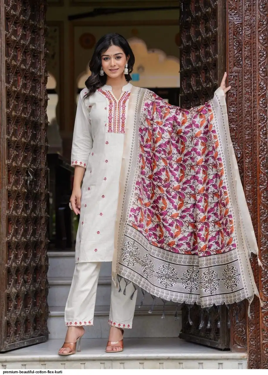 Beautiful cotton flex kurti with pant and khadi silk Chanderi digital print dupatta