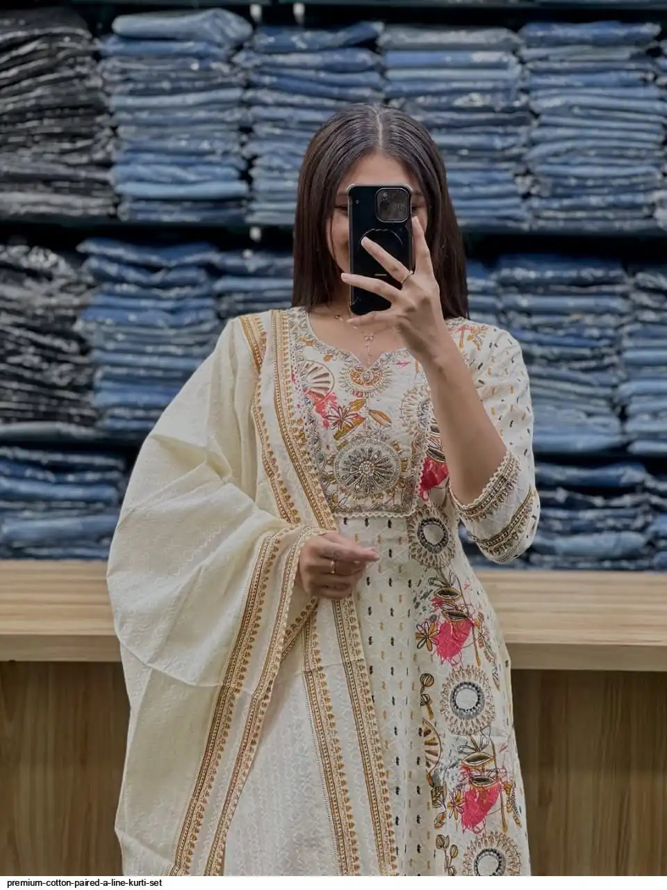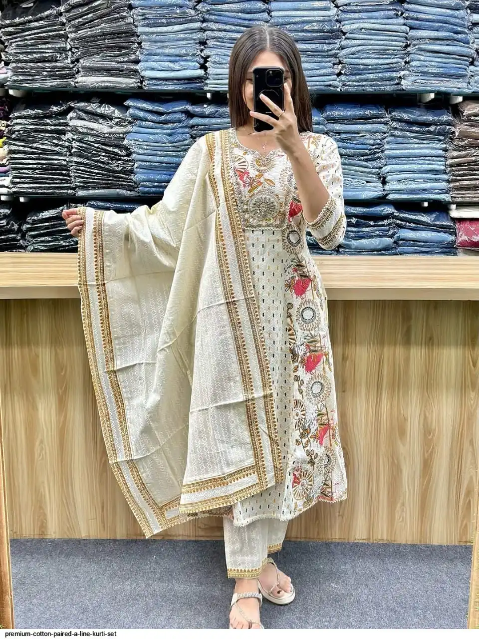 A Line Kurti With Beautiful Adda Yoke With lace all over kurti