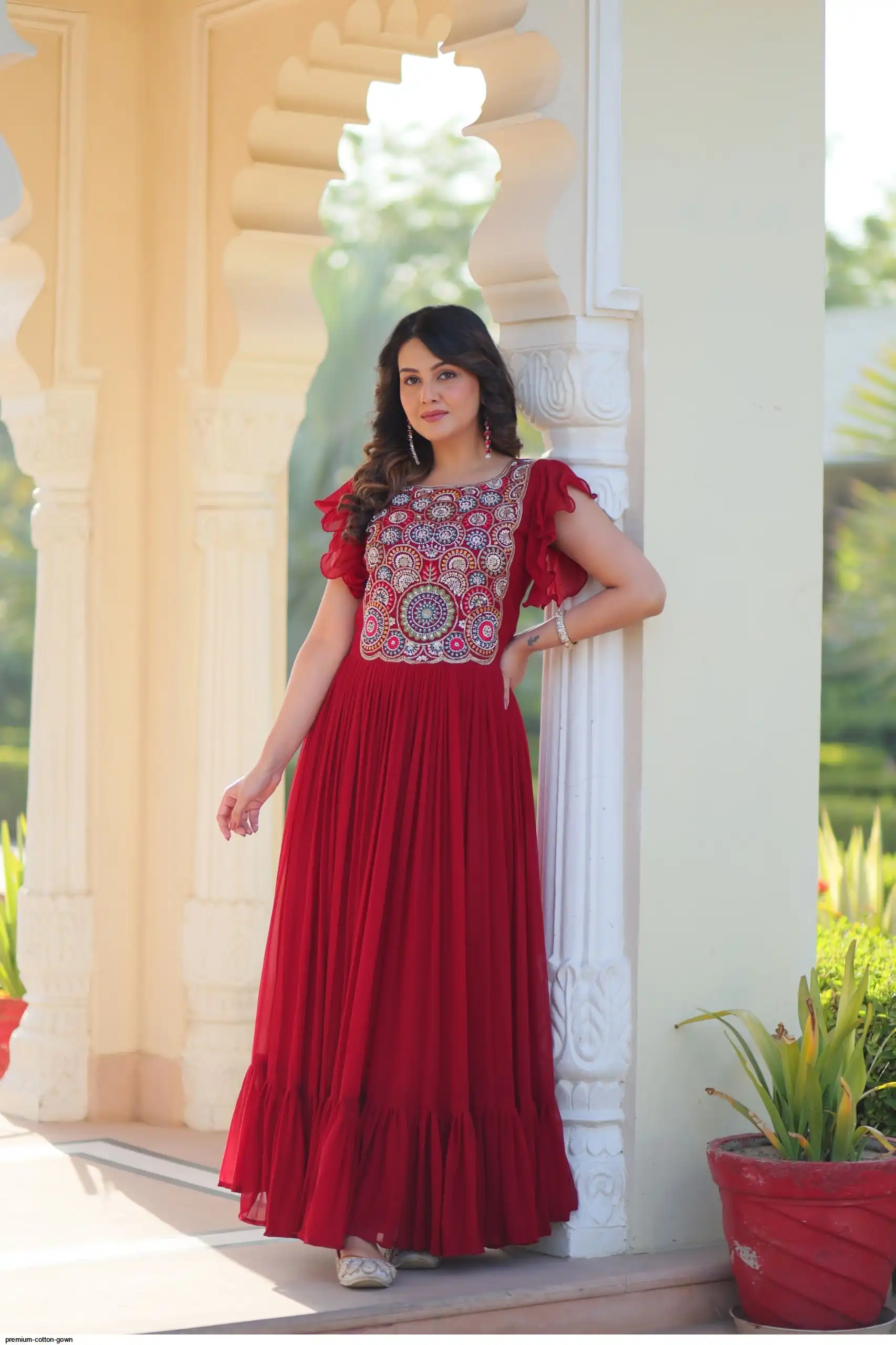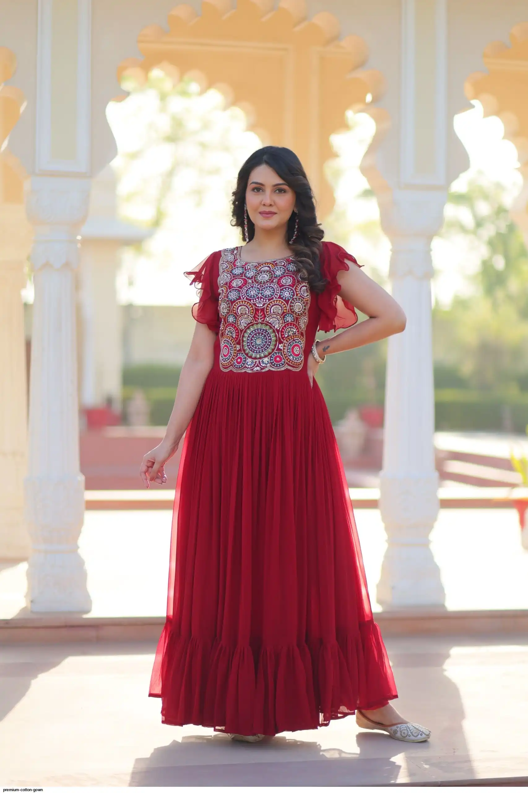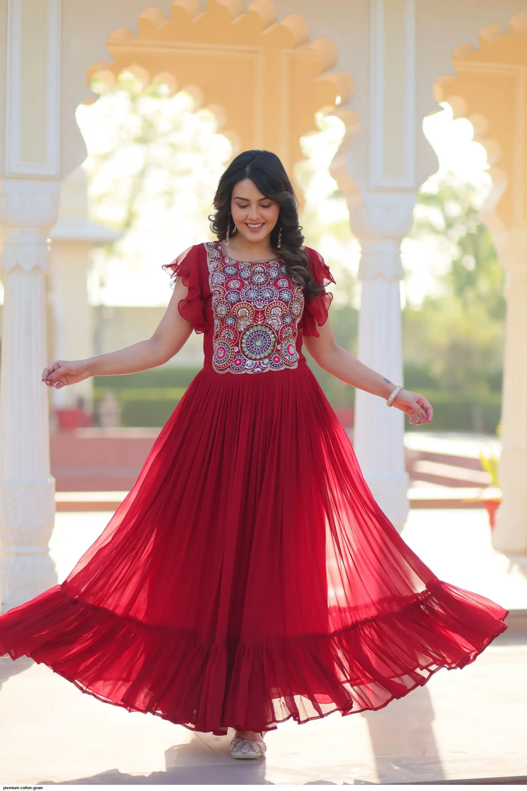 👉🏻 FABRIC & WORK :- Faux Blooming With Beads and Sequins Multithreaded Embroidered work