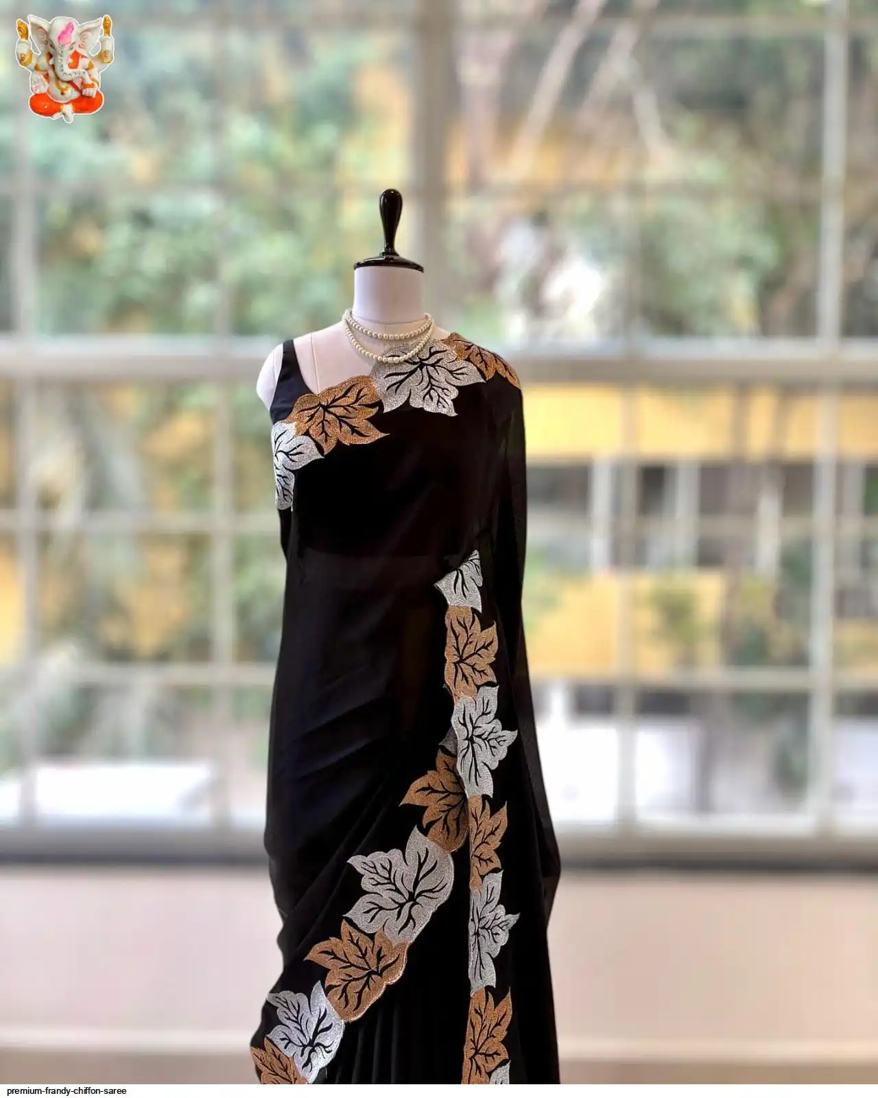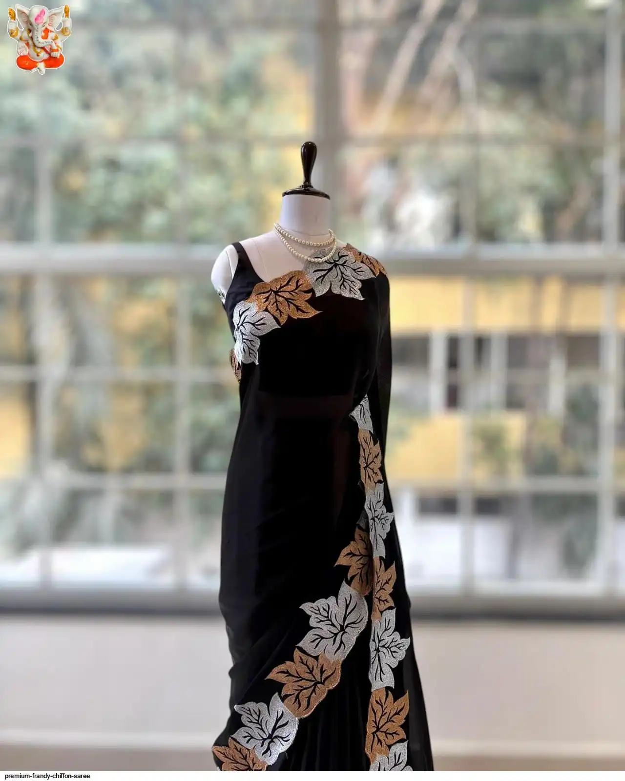 SAREES : premium Frandy siffon fabric with embroidery cut work lace