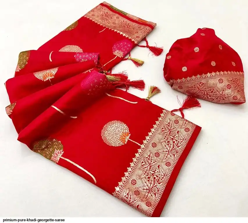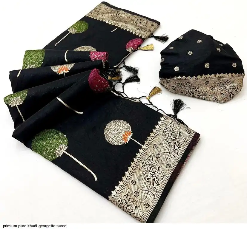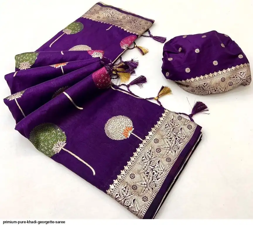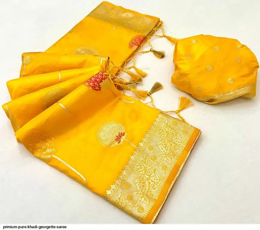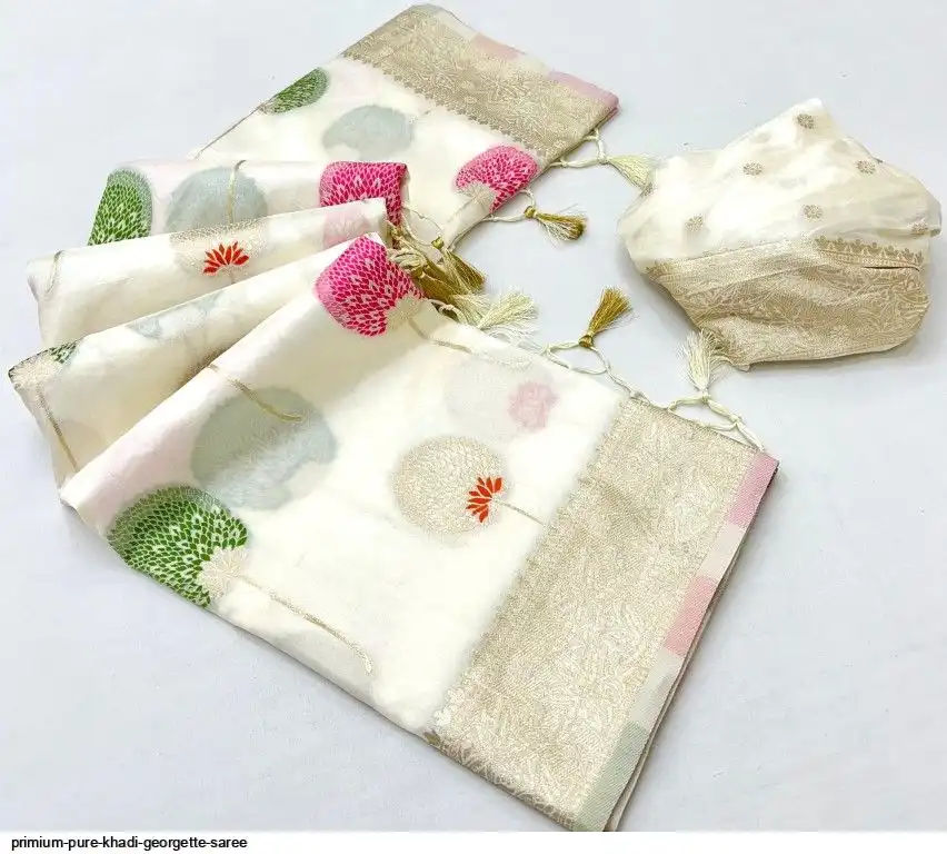 Pure Khadi georgette saree with beautiful weaving mina work saree with fabulous tussals in saree