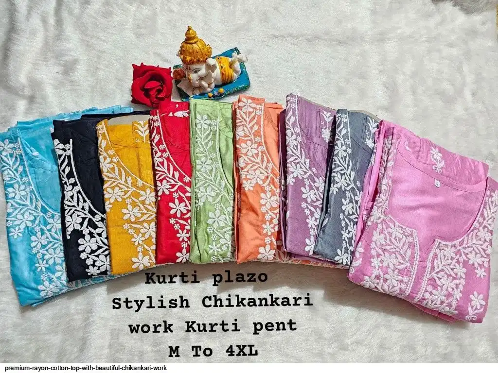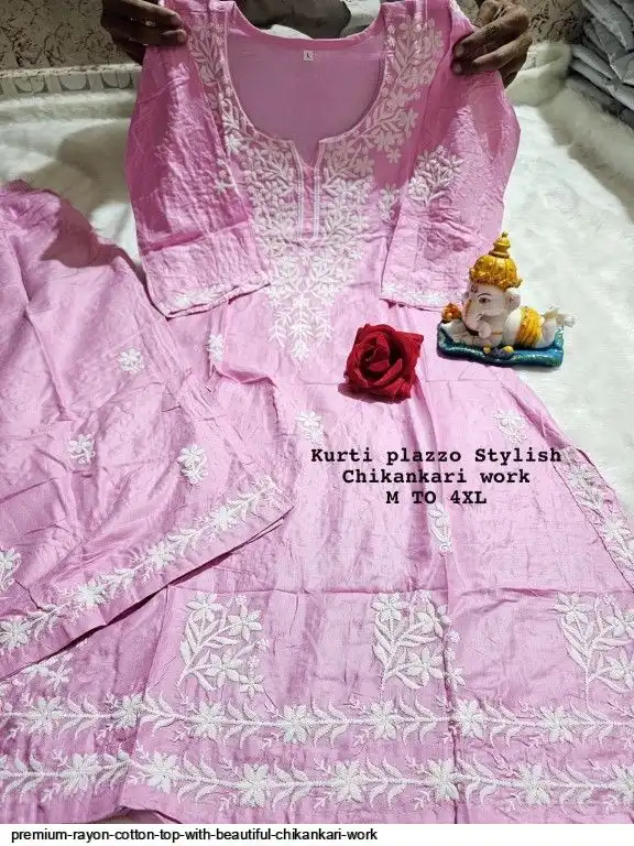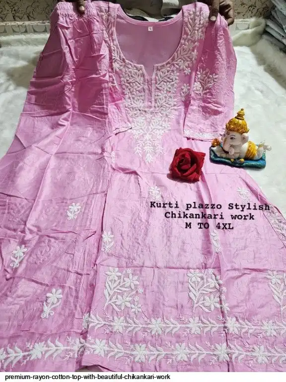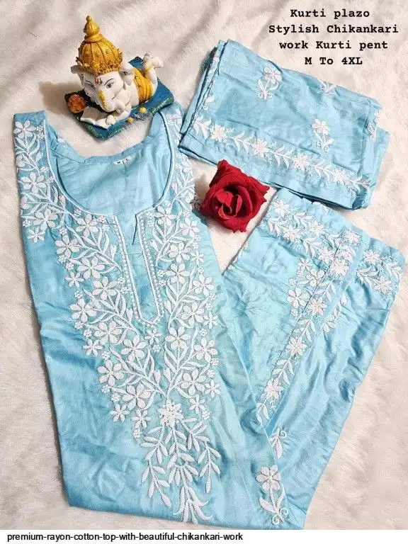 Premium Rayon cotton Top with beautiful chikankari work on yoke & Rayon pent