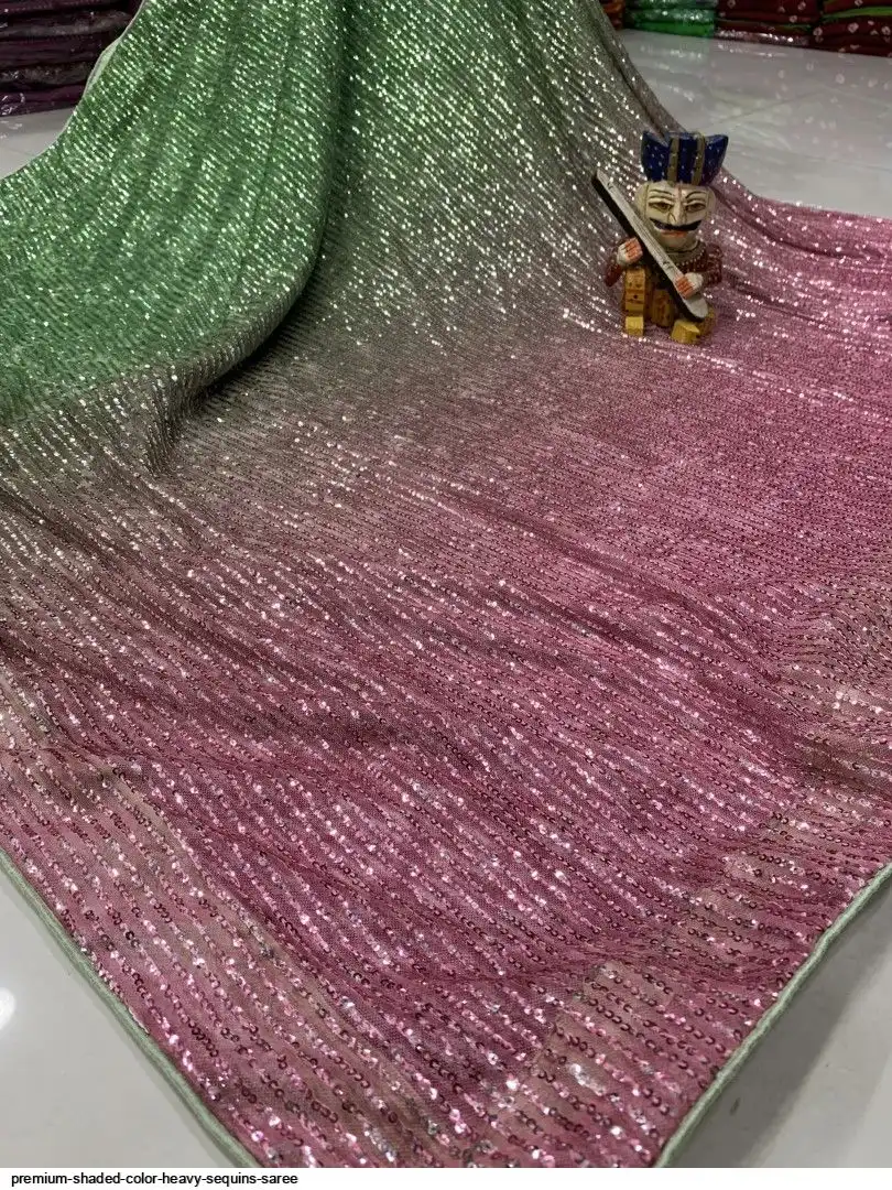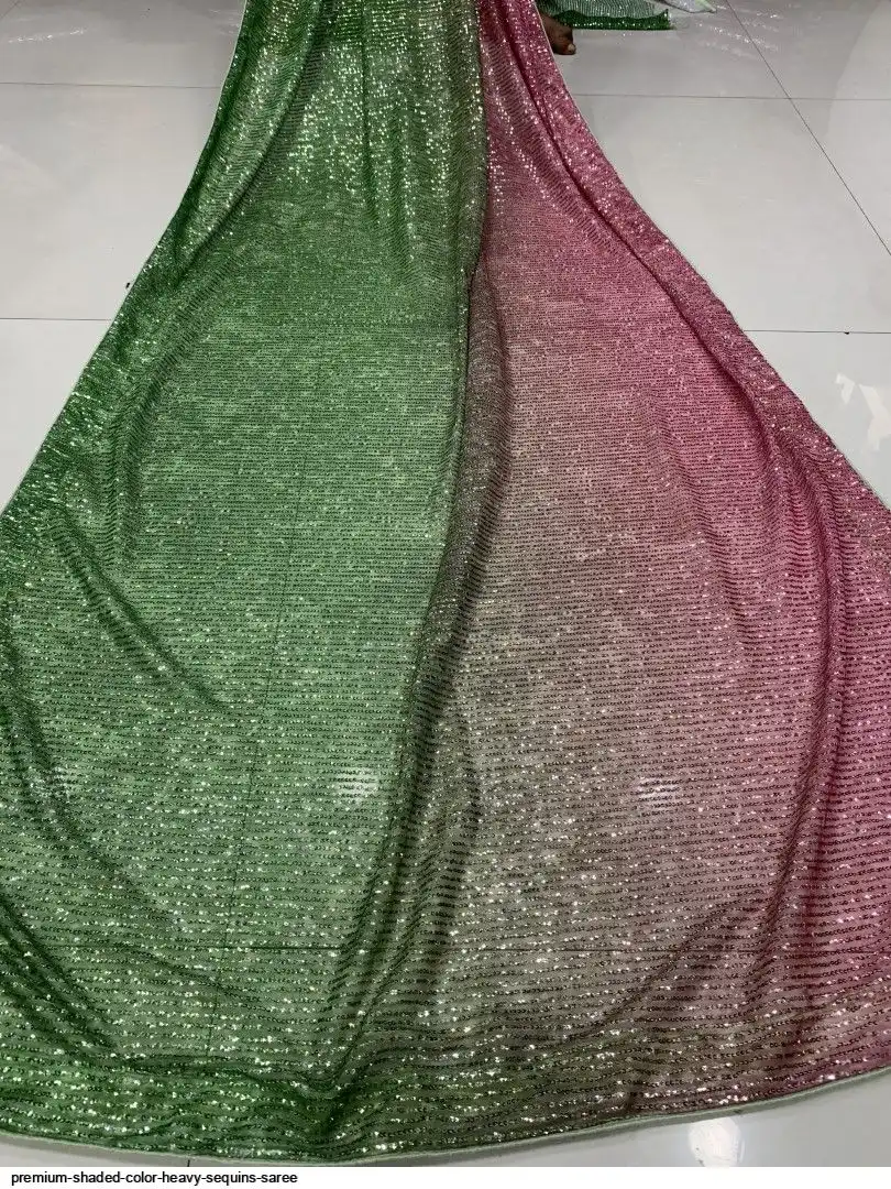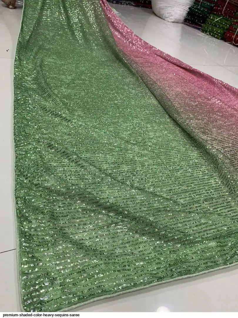 Fabric :PREMIUM SHADED COLOR EXPORT QUALITY FINE YARD FABRIC WITH HEAVY FULL SEQUINS WORK SAREE