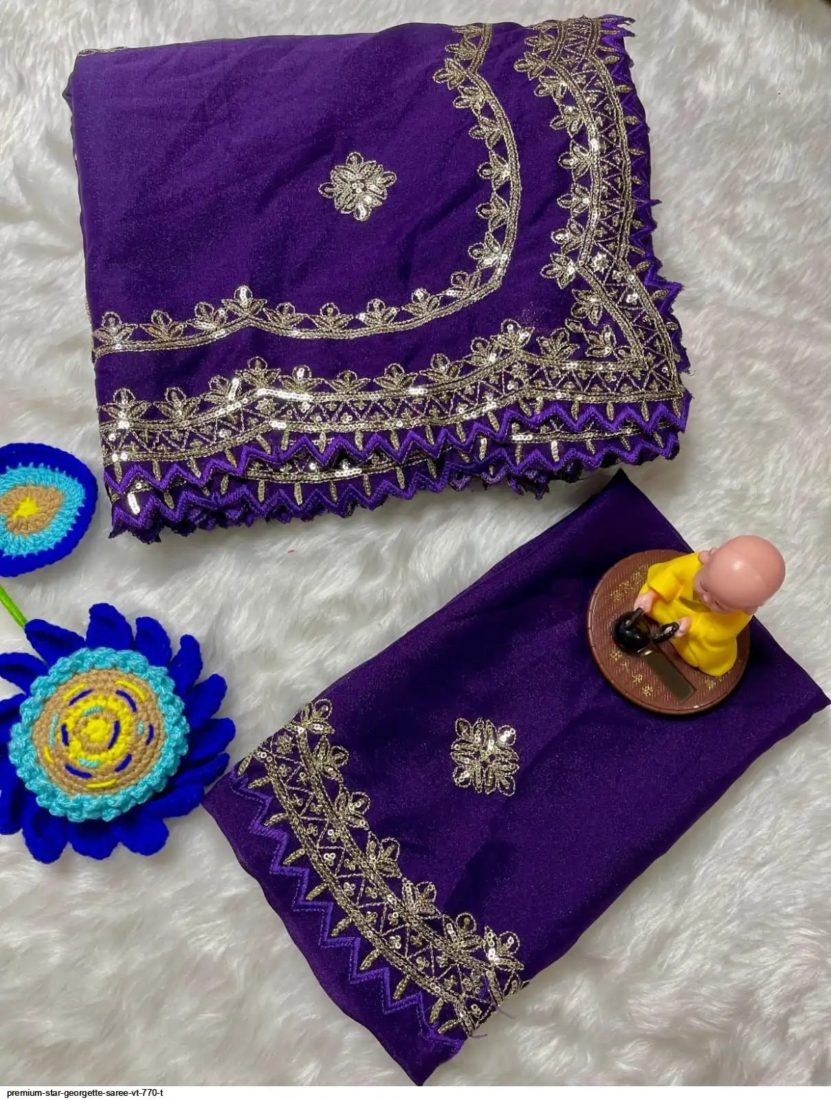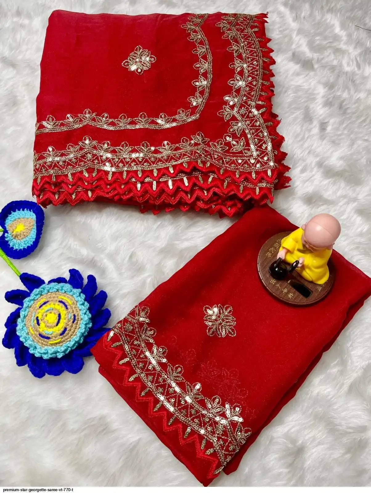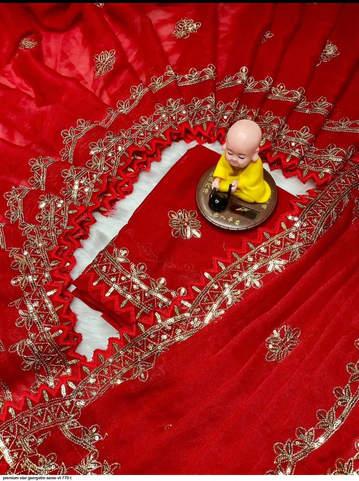 SAREES FABRICS:-Premium star Georgette fabric with c pallu embroidery and cut work border