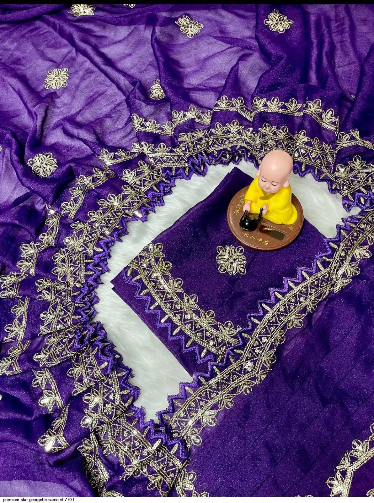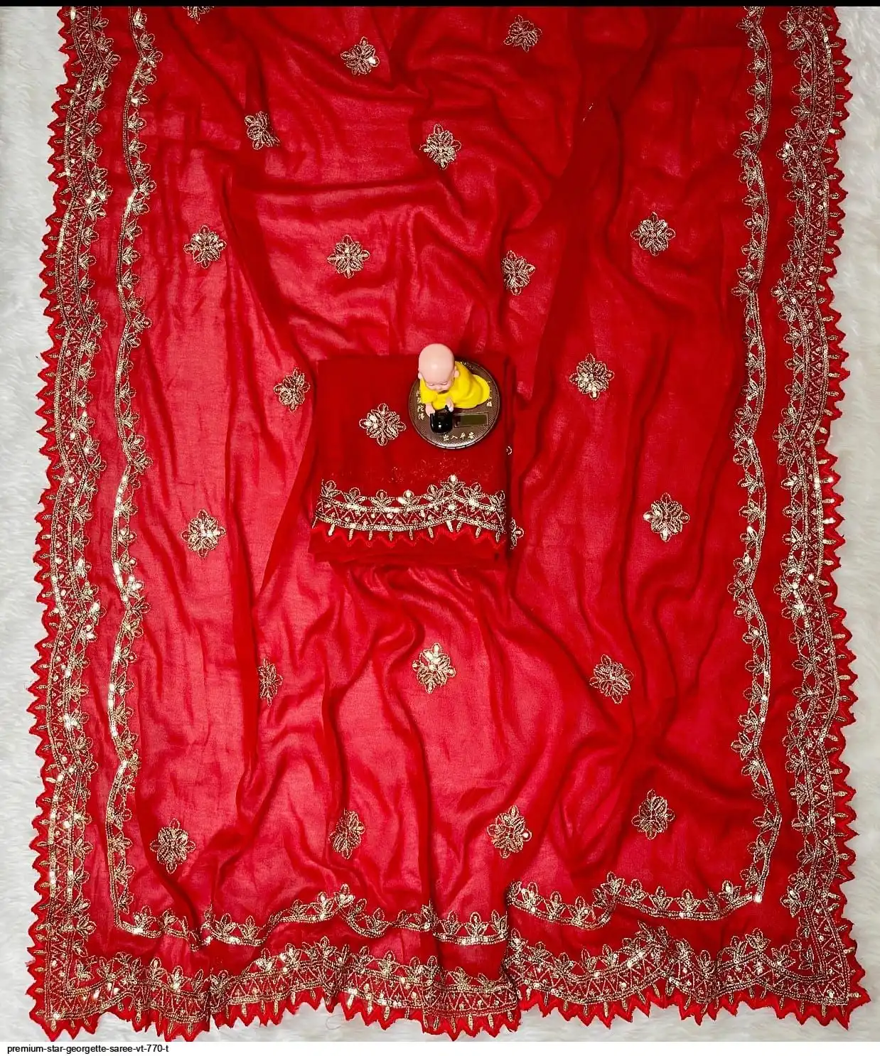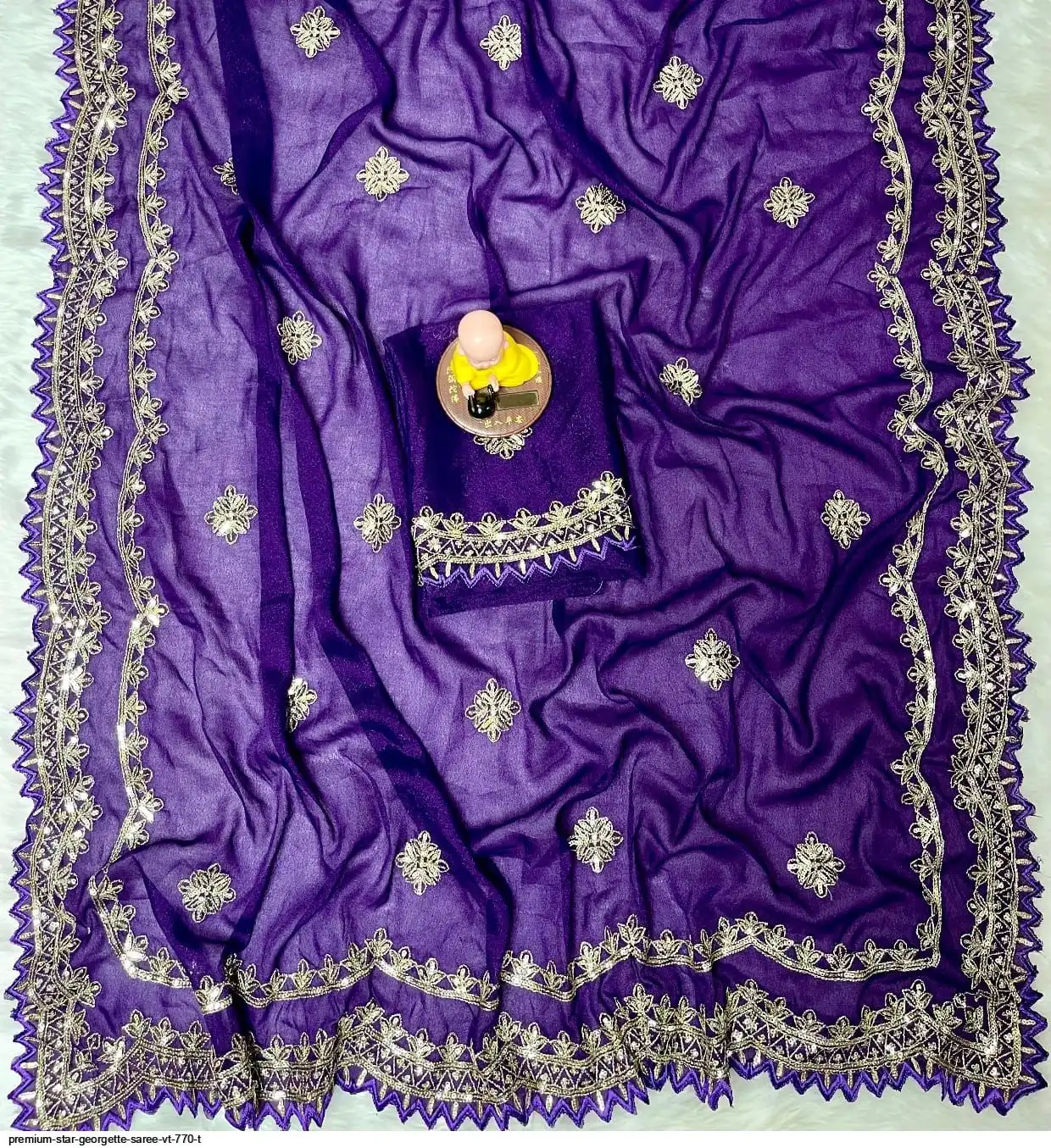 SAREES FABRICS:-Premium star Georgette fabric with c pallu embroidery and cut work border