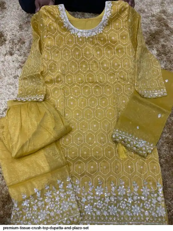 PREMIUM TISSUE CRUSH TOP DUPATTA AND PLAZO SET A