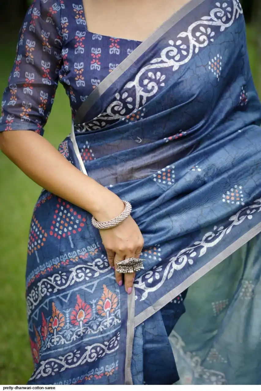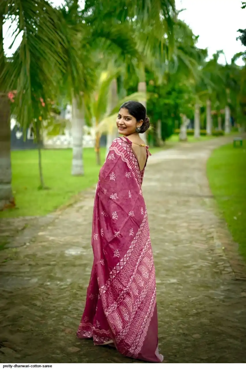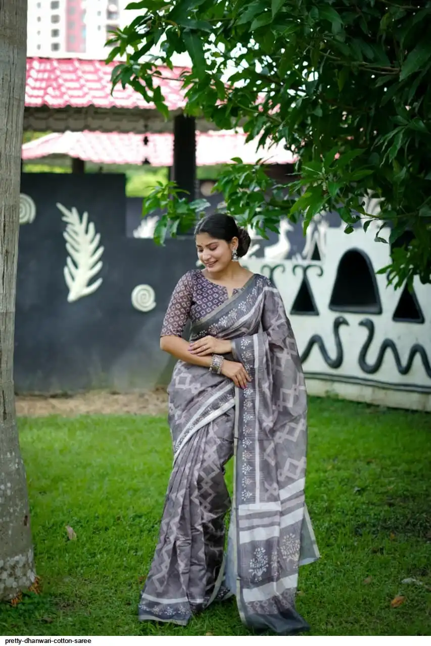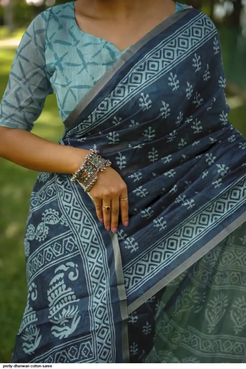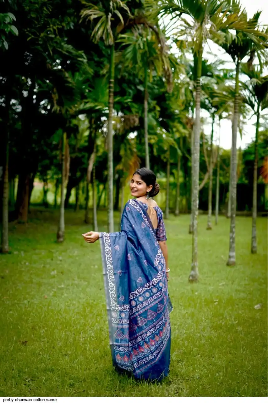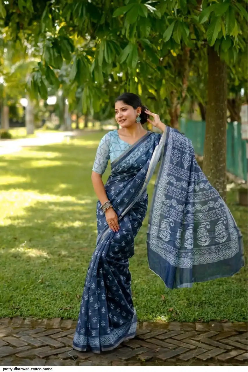 VERY SOFT AND PRETTY FEEL DHANWARI COTTON SAREE WITH TRADITIONAL DIGITAL BLOCK PRINT CATALOGUE AND TINY ZARI BORDER WITH CONTRAST BLOUSE PIECE