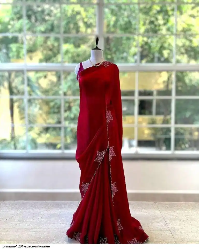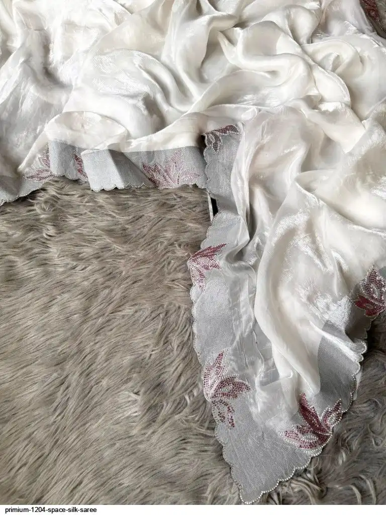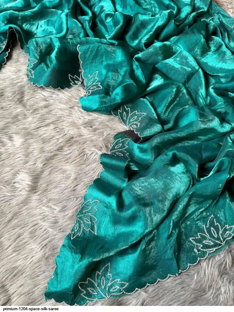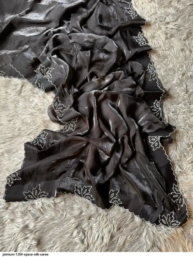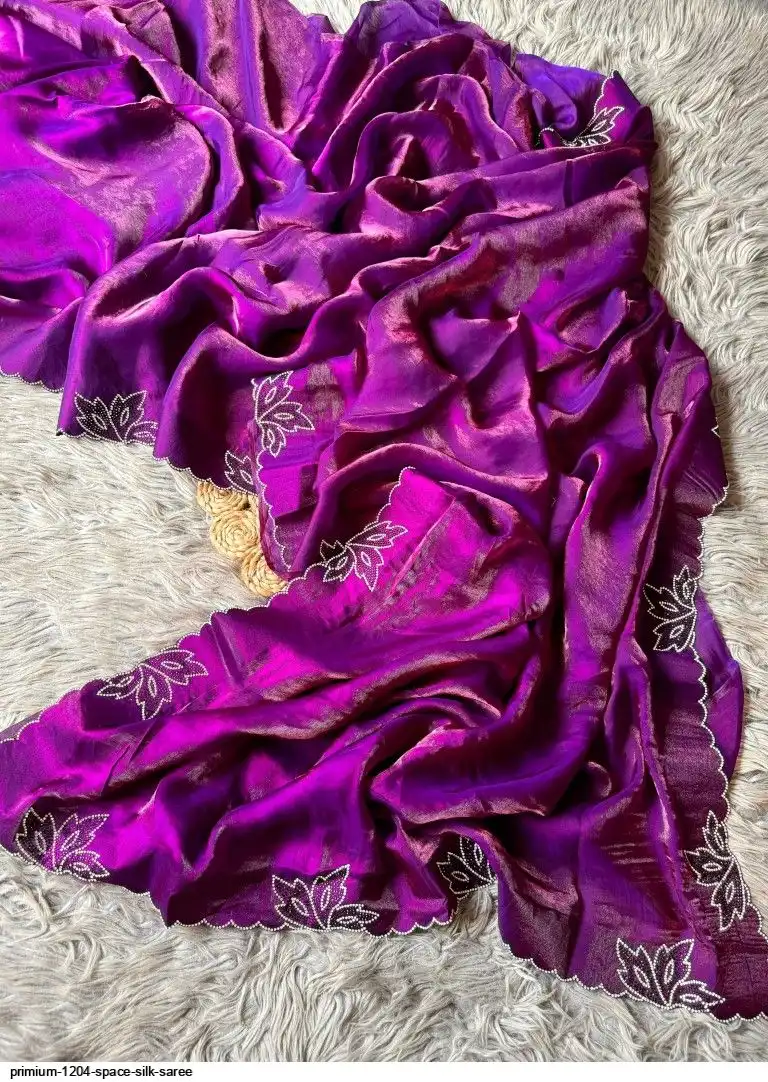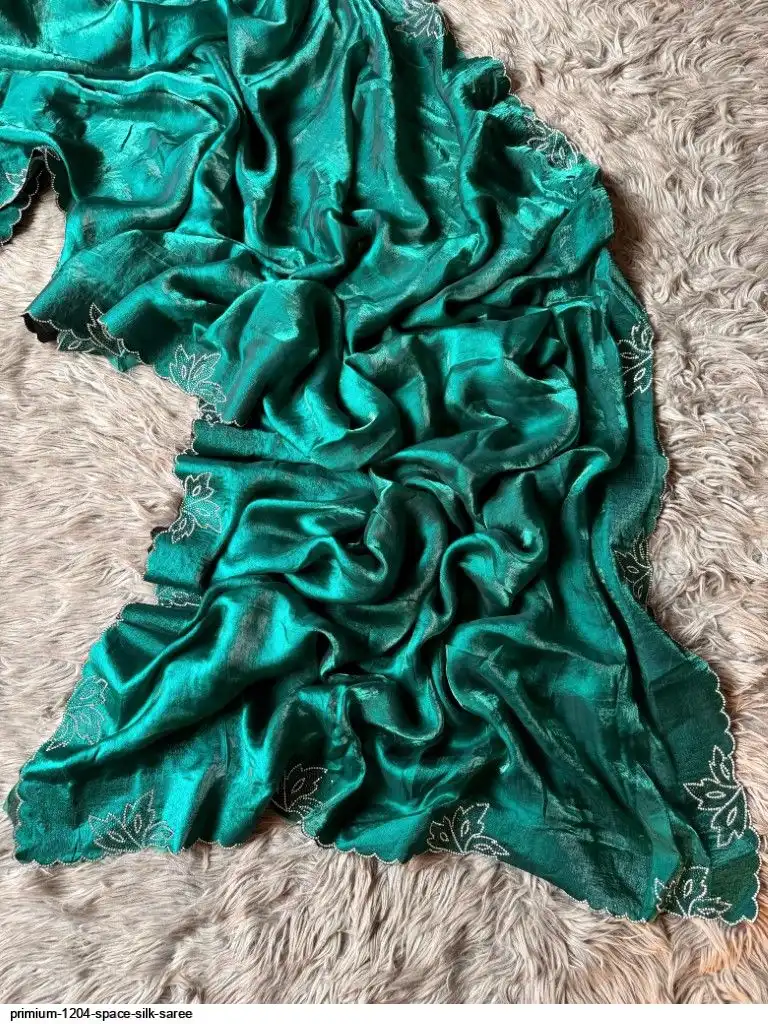 Primium Space Silk (Fendi Satin) Fabric With JARAKN Work and Cutwork