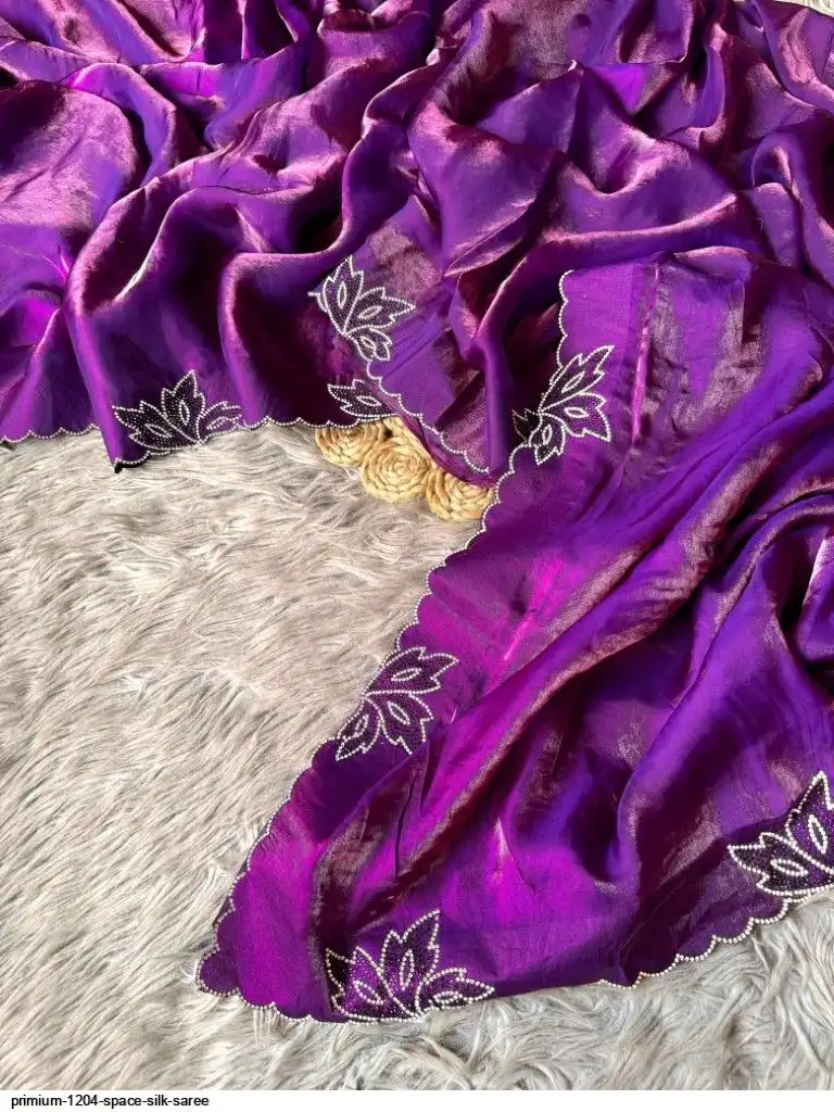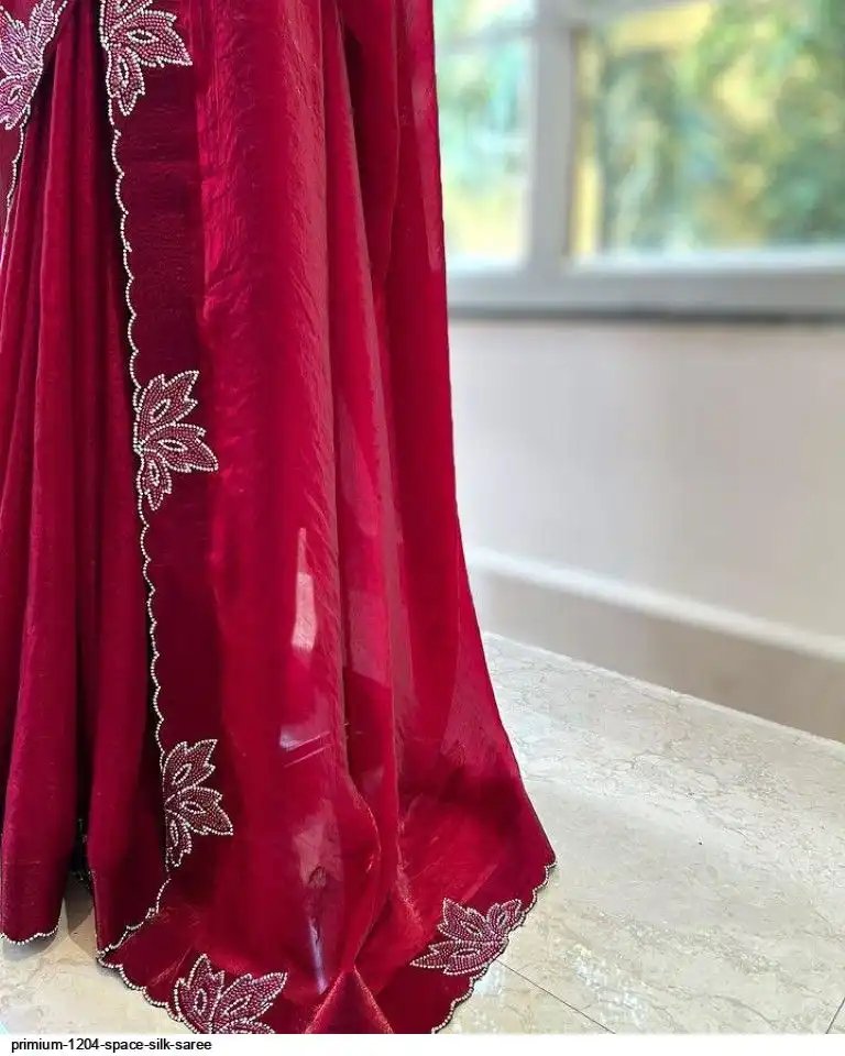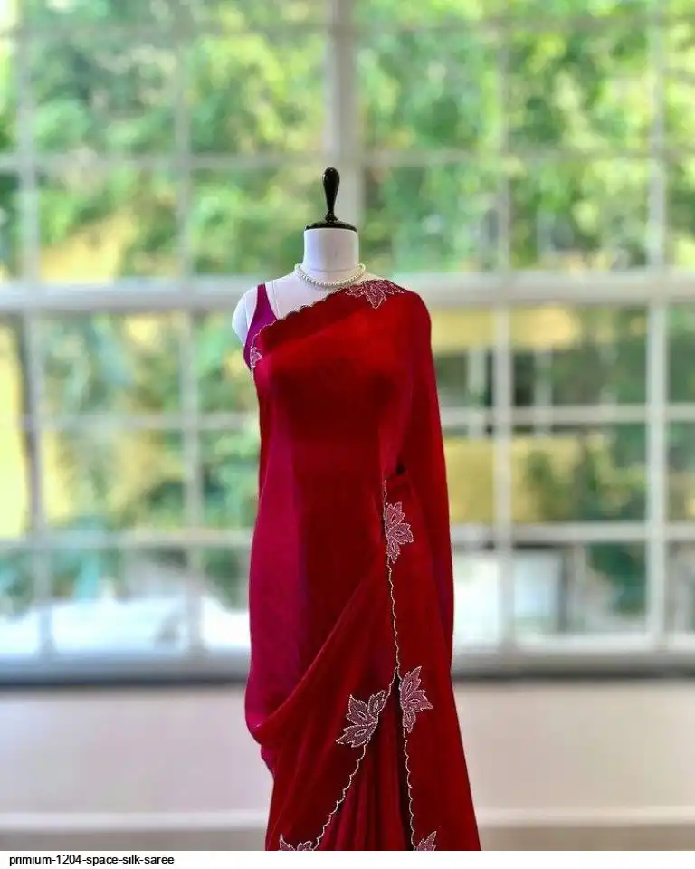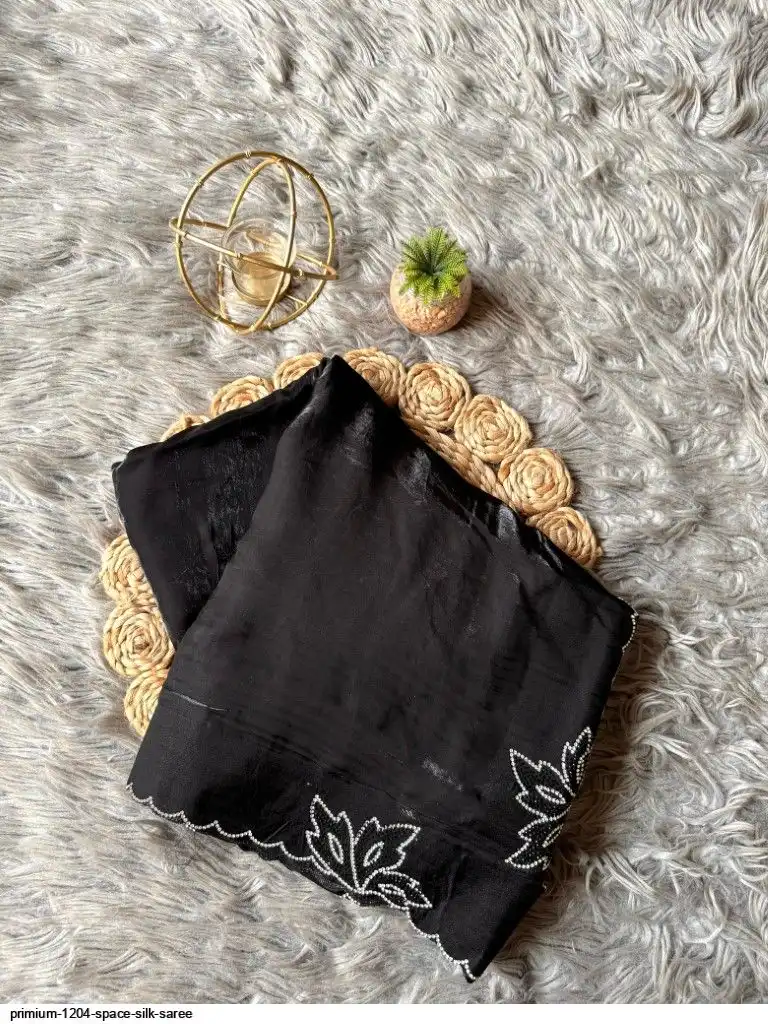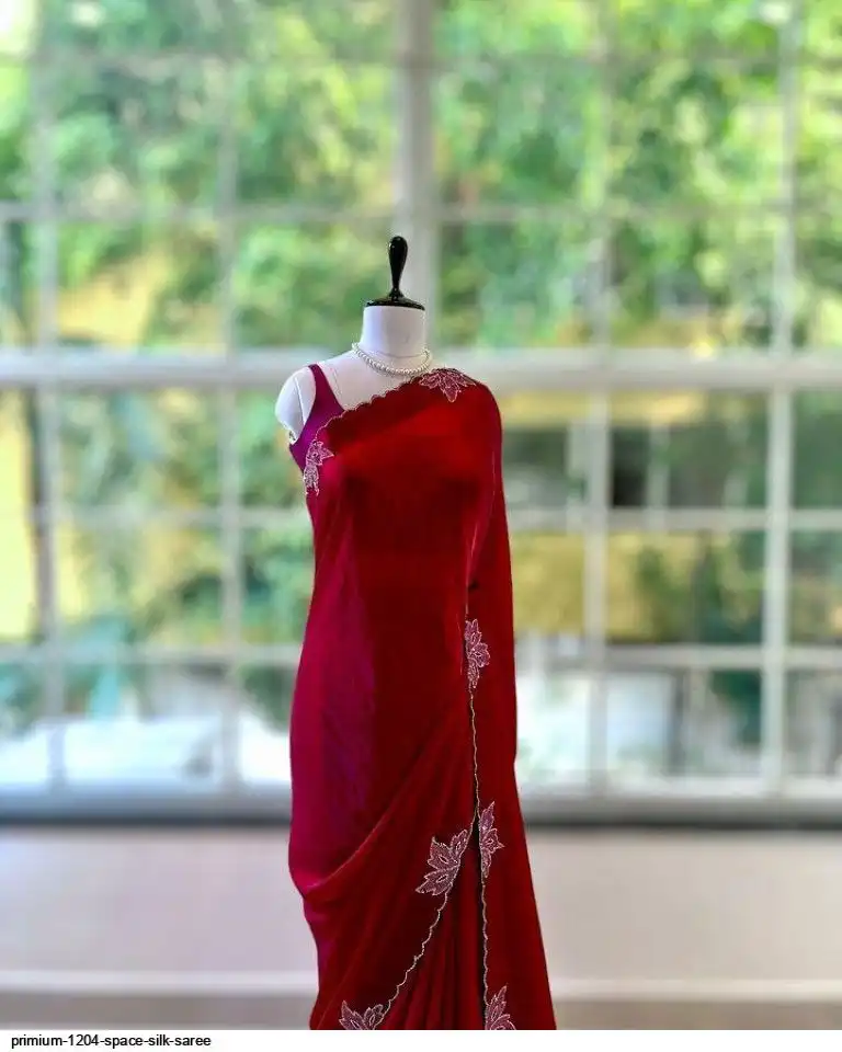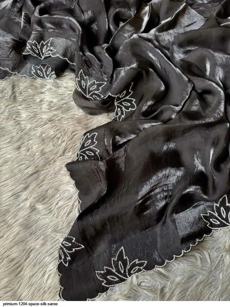 Primium Space Silk (Fendi Satin) Fabric With JARAKN Work and Cutwork