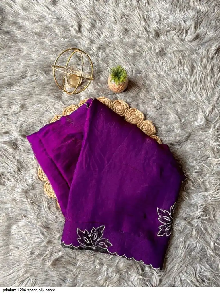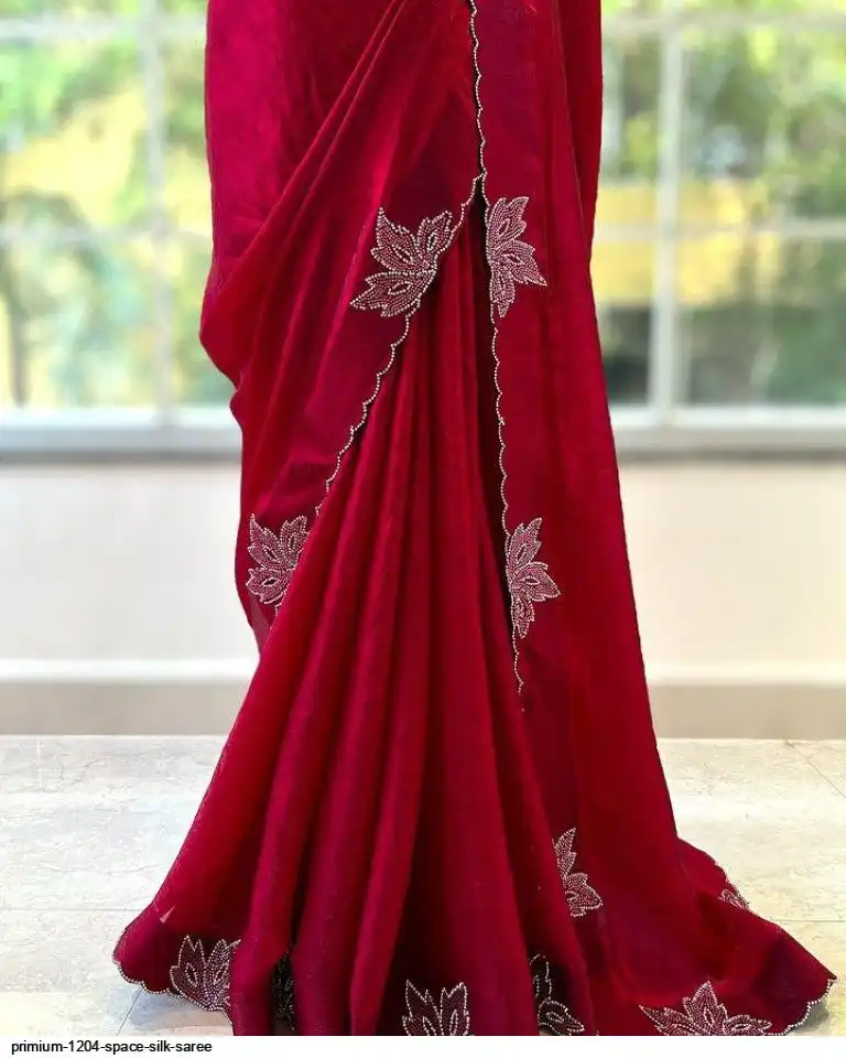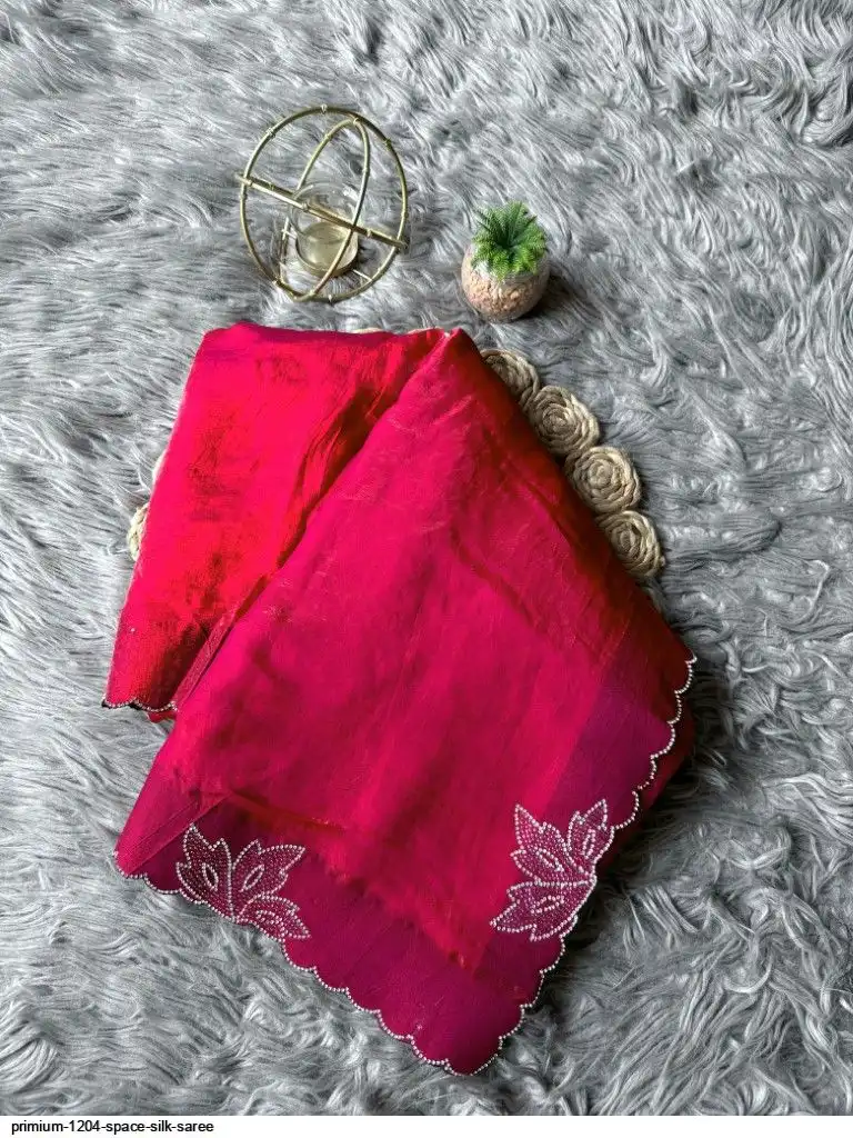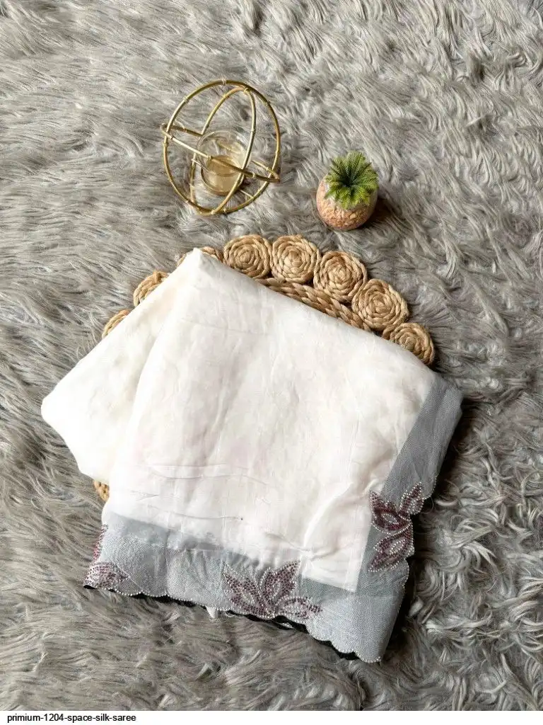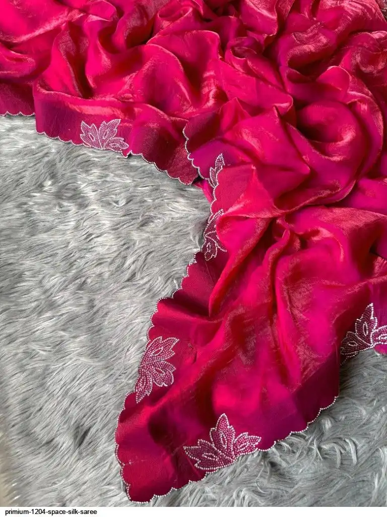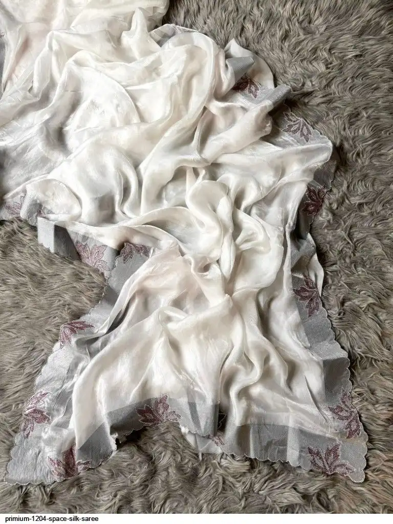 Primium Space Silk (Fendi Satin) Fabric With JARAKN Work and Cutwork