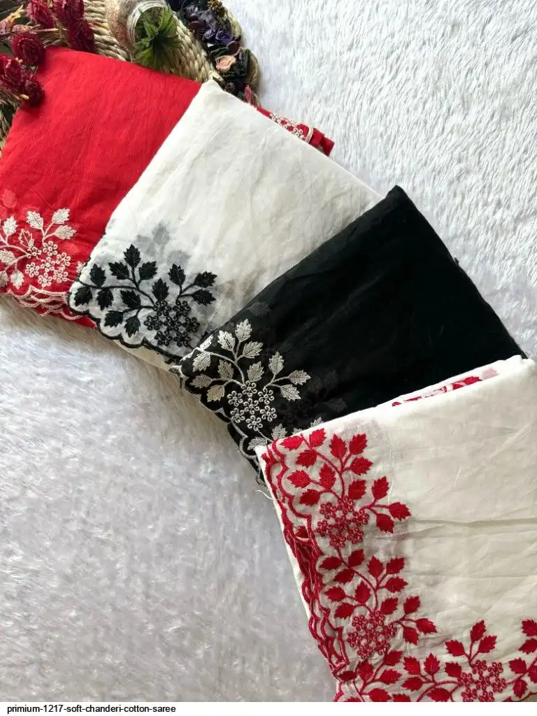 Primium Soft Chanderi Cotton saree with Multy Thread Work And ScalpCutwork Border