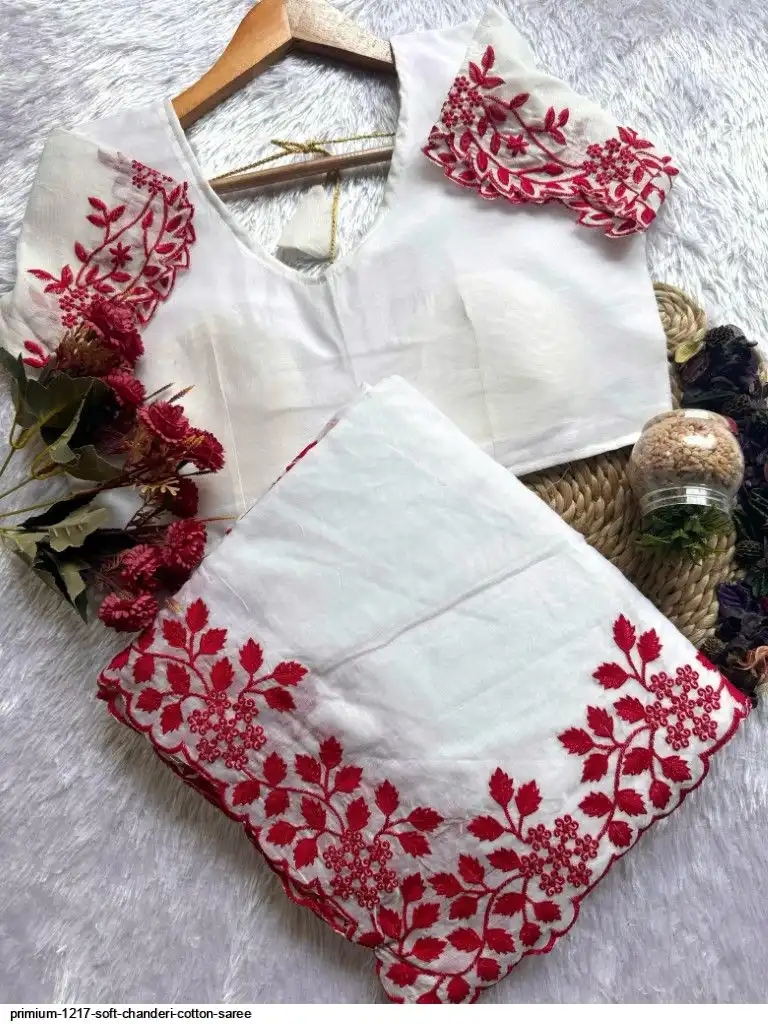 Primium Soft Chanderi Cotton saree with Multy Thread Work And ScalpCutwork Border